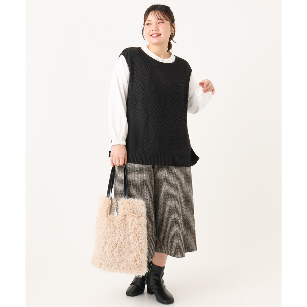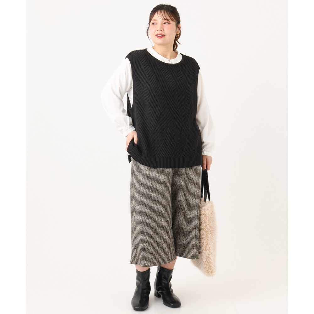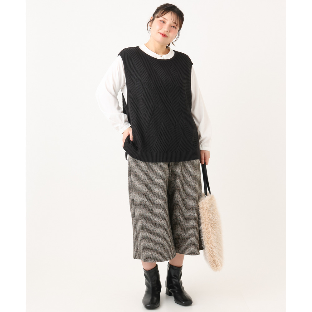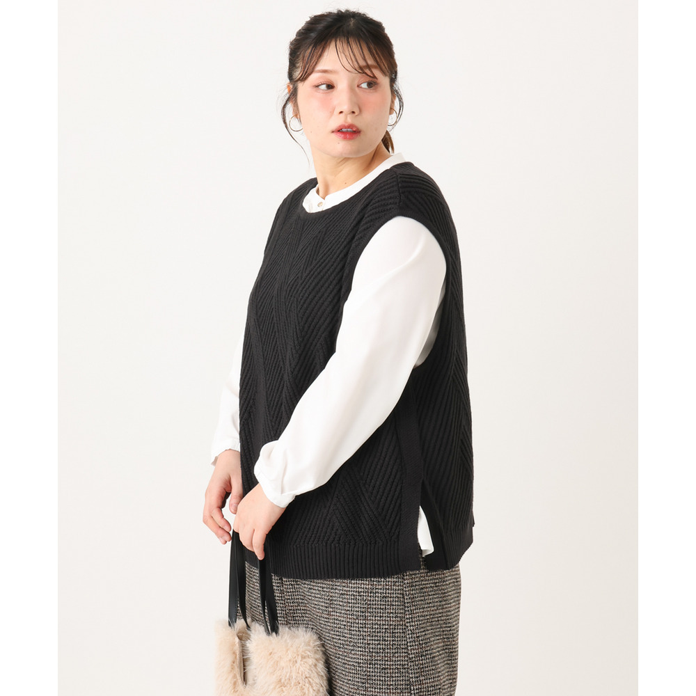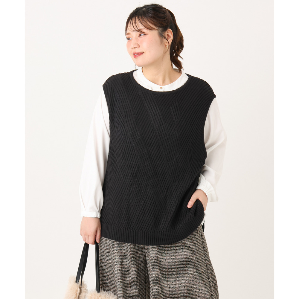 シャツやブラウス、カットソー、ワンピースとレイヤードスタイルが楽しめる一着。
