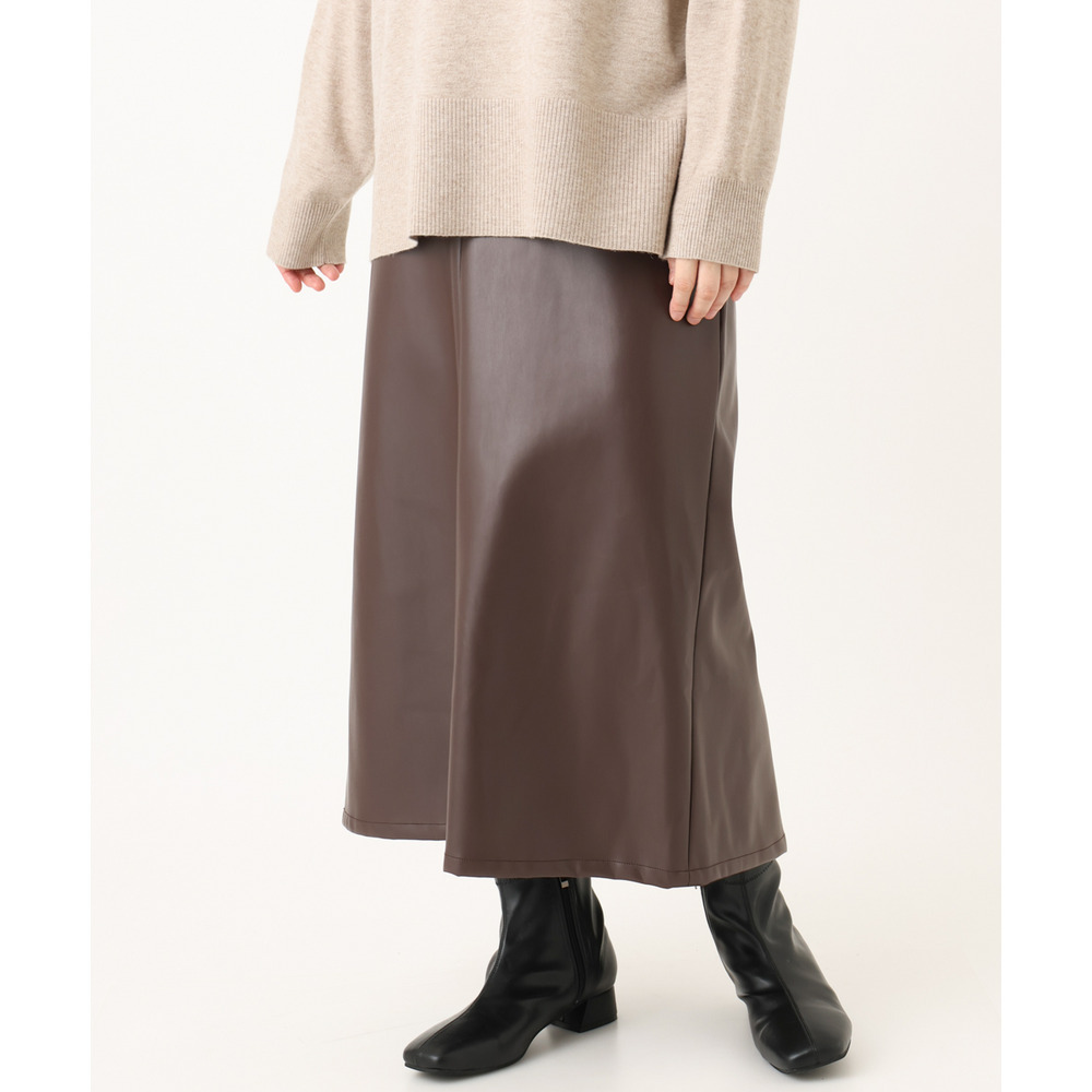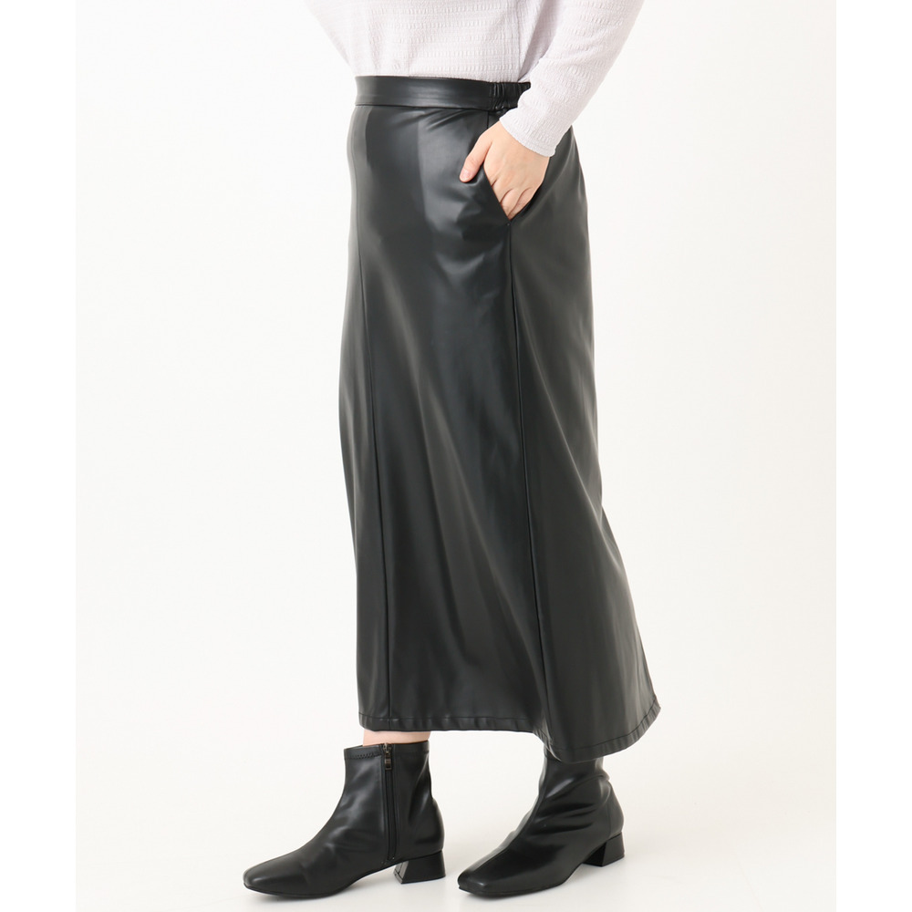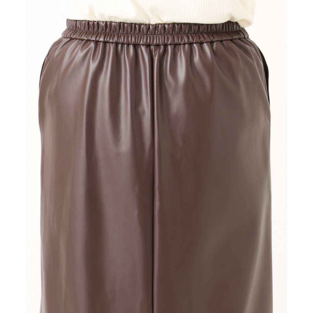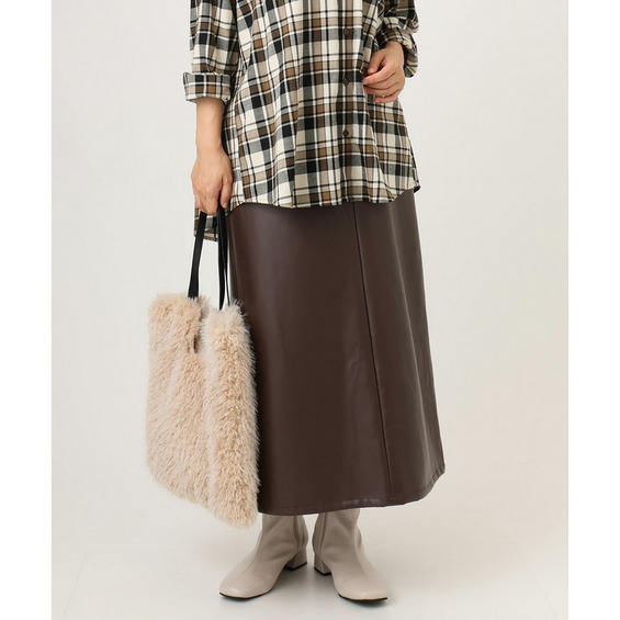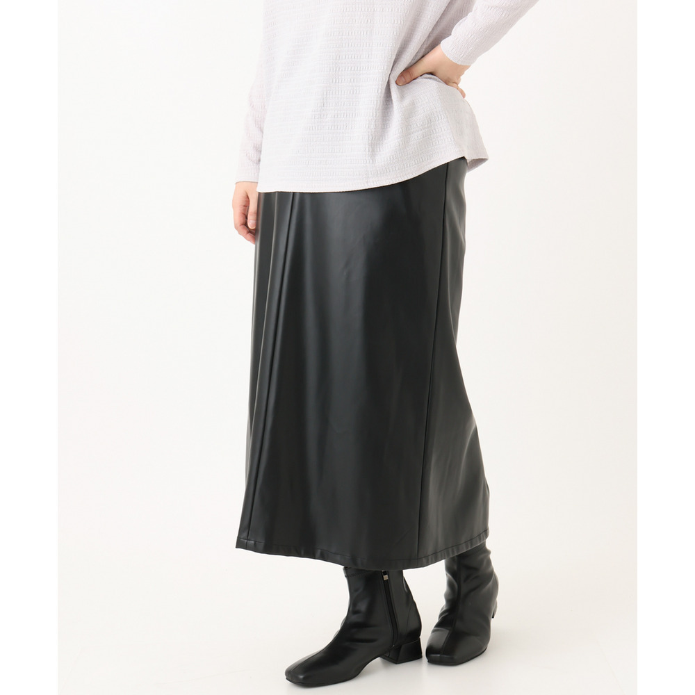 こなれた着こなしを叶えるフェイクレザースカート。