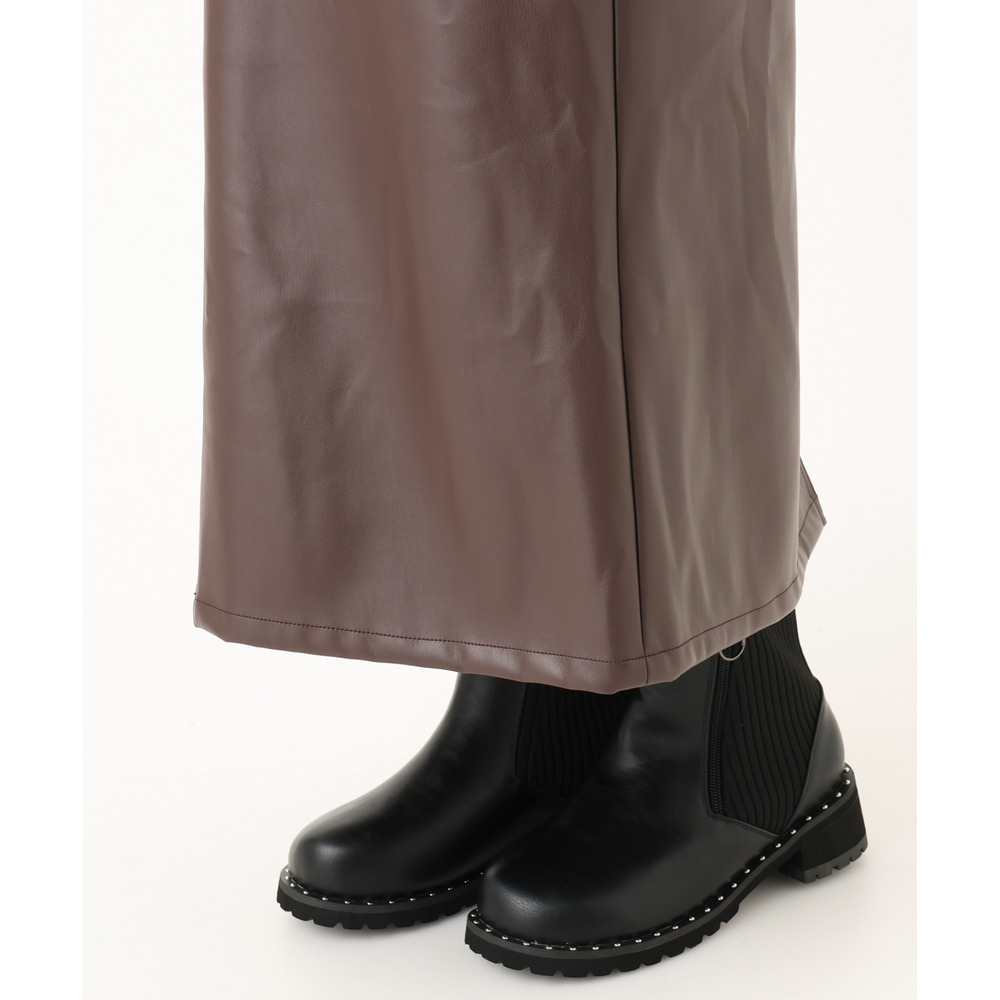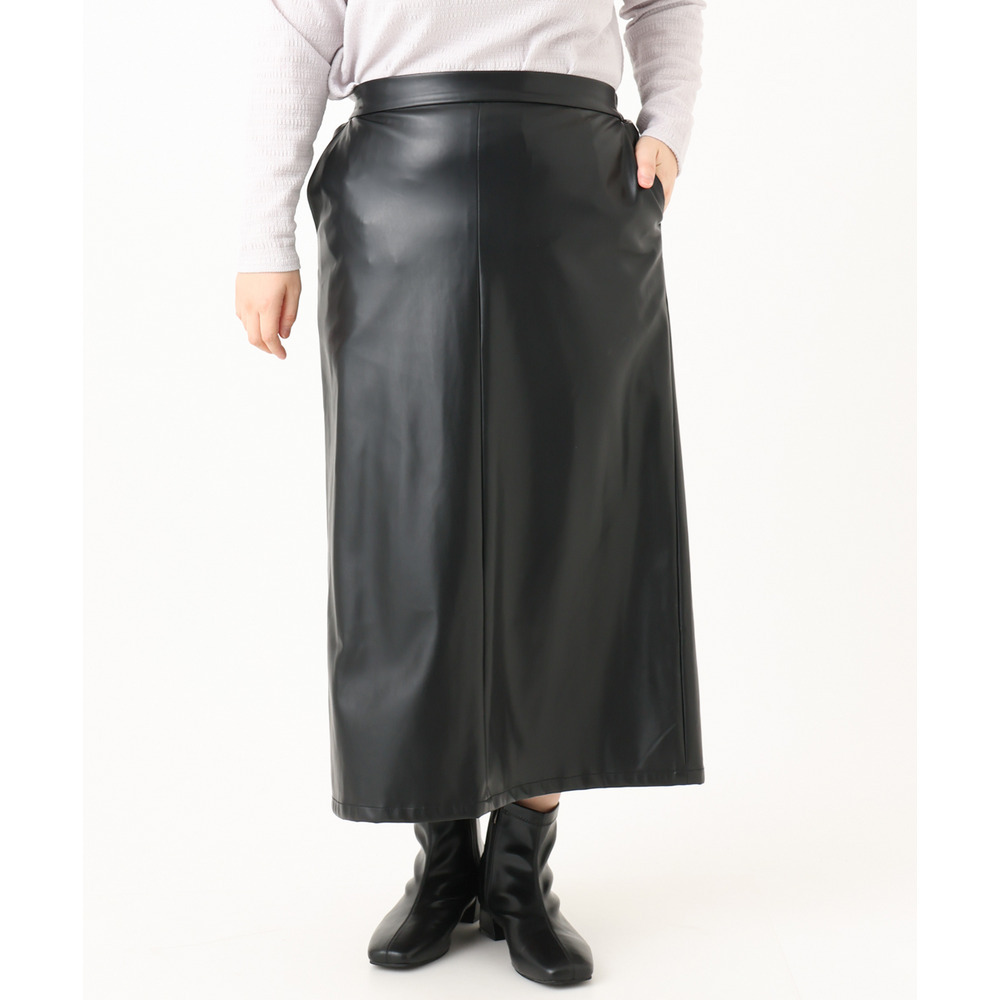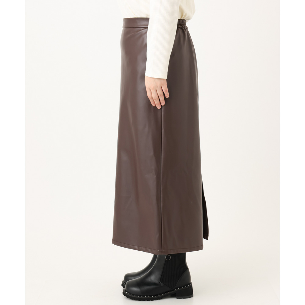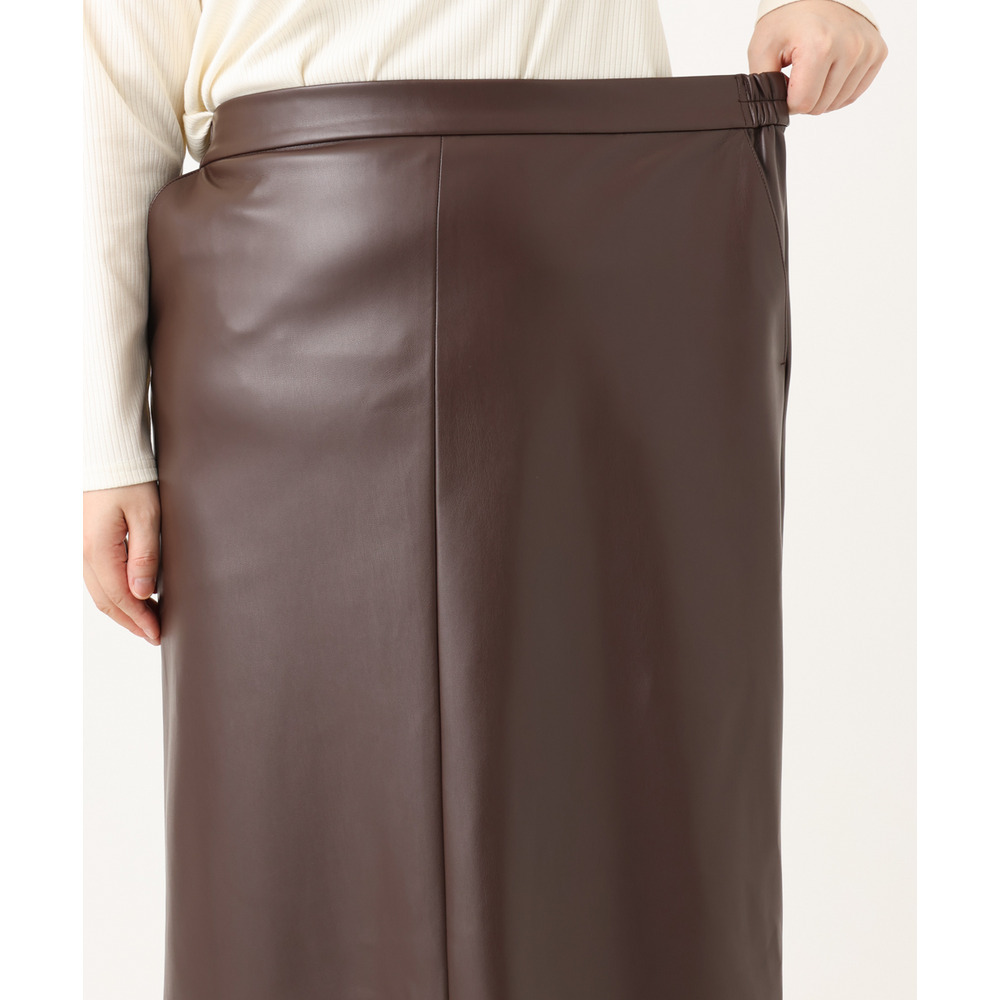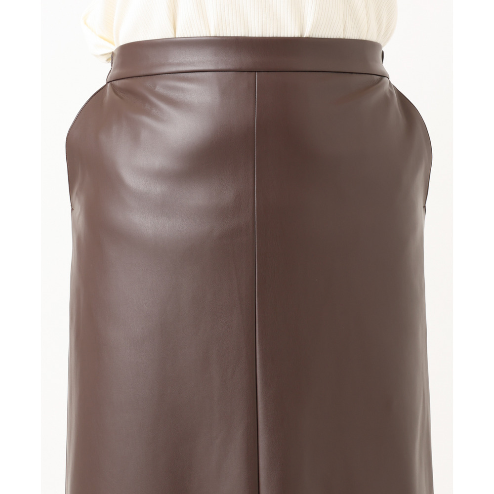 こなれた着こなしを叶えるフェイクレザースカート。