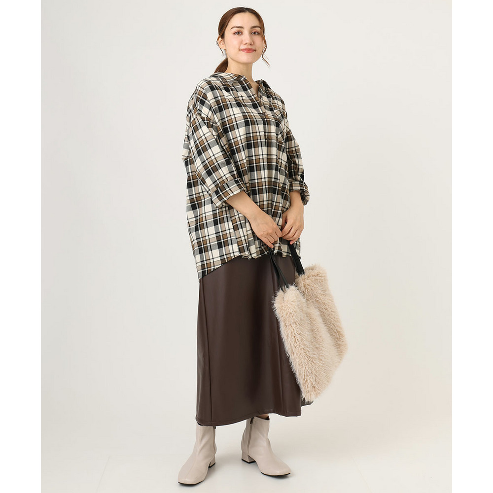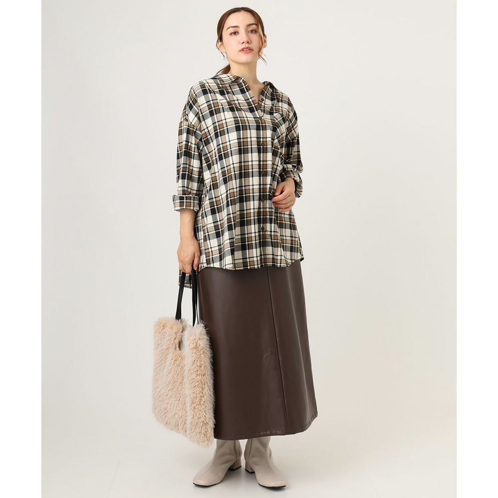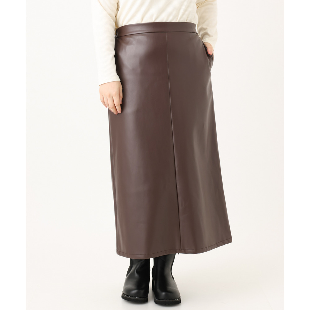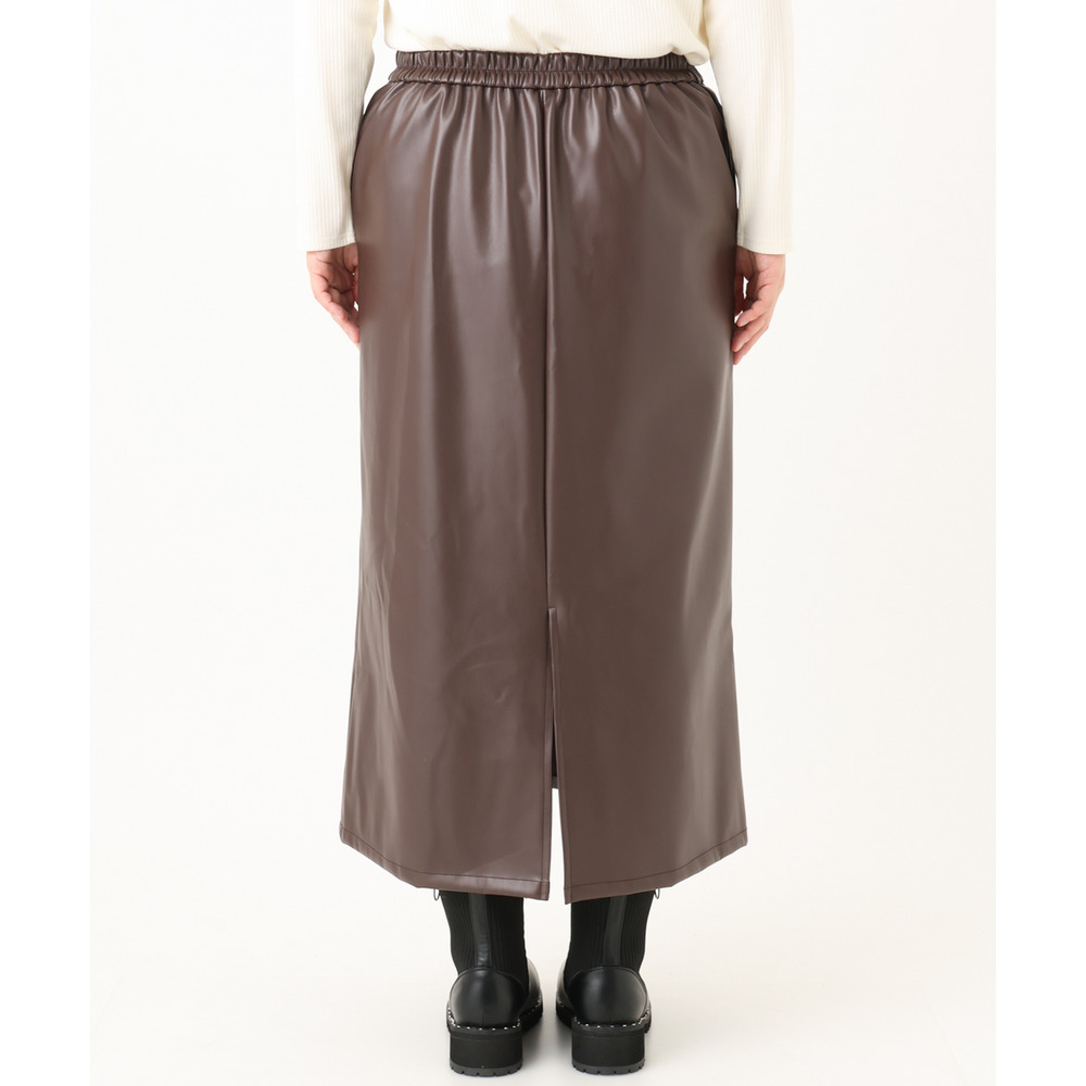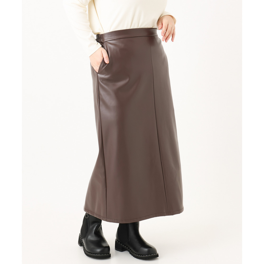 こなれた着こなしを叶えるフェイクレザースカート。