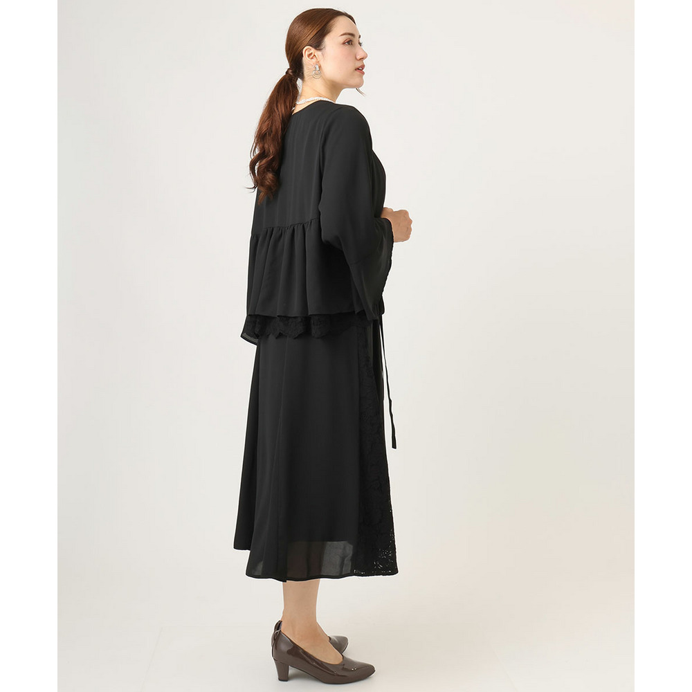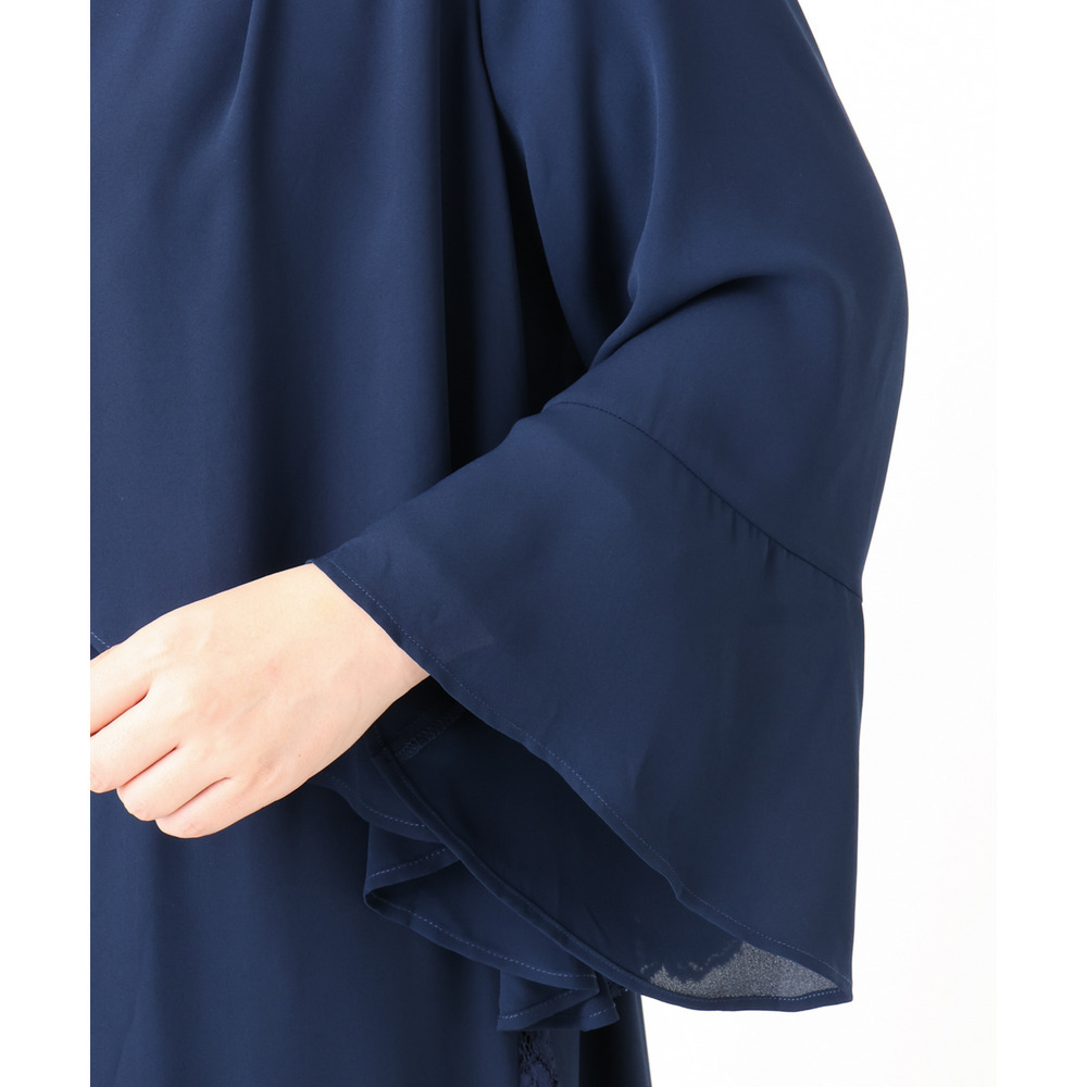 身頃の裾には繊細なコードレースをレイヤードし、ふわっと揺れる袖口が女性らしい一枚。