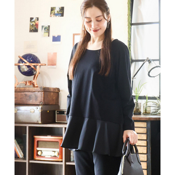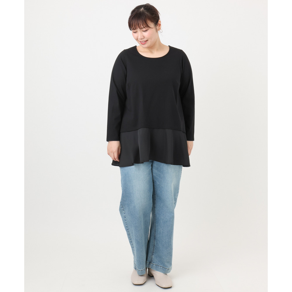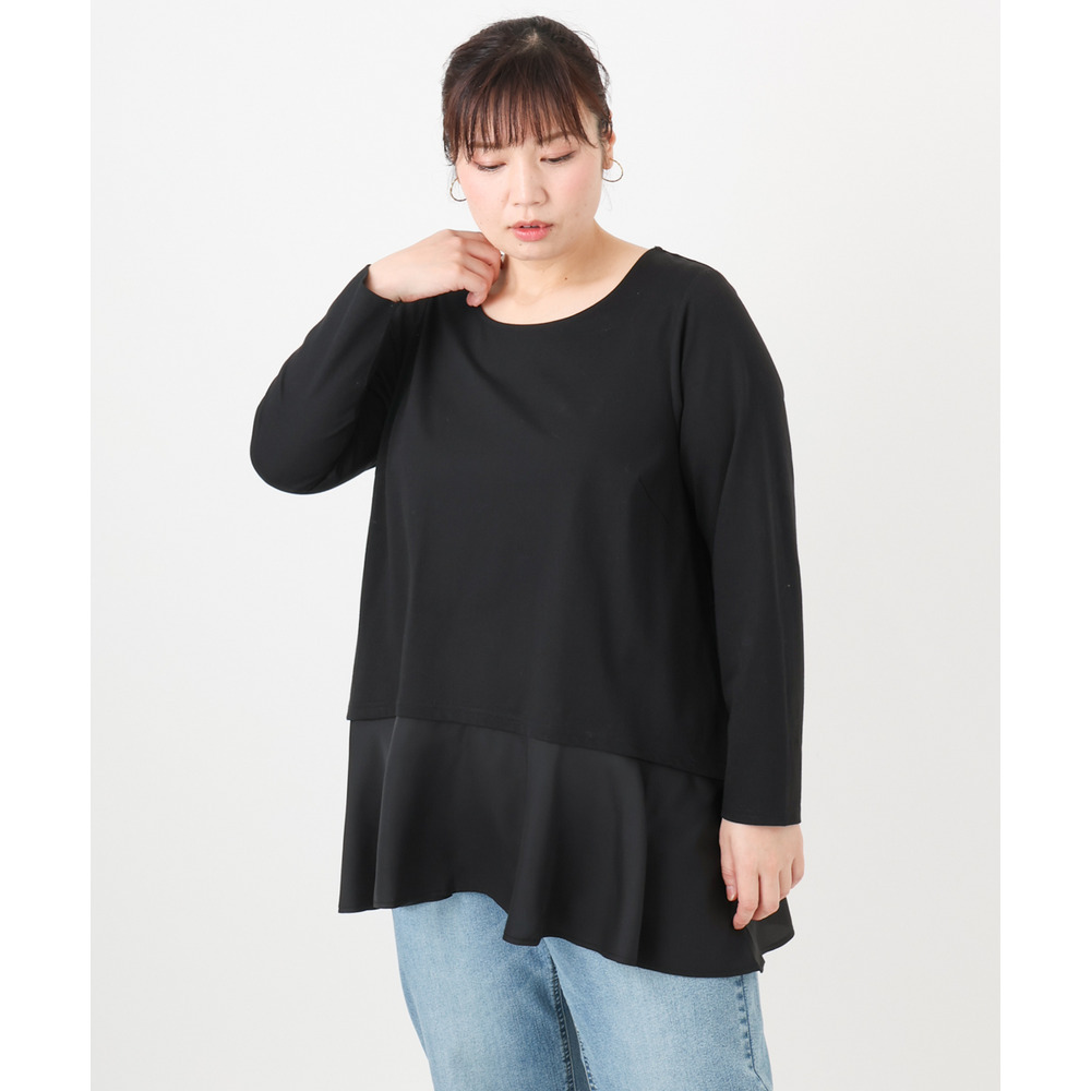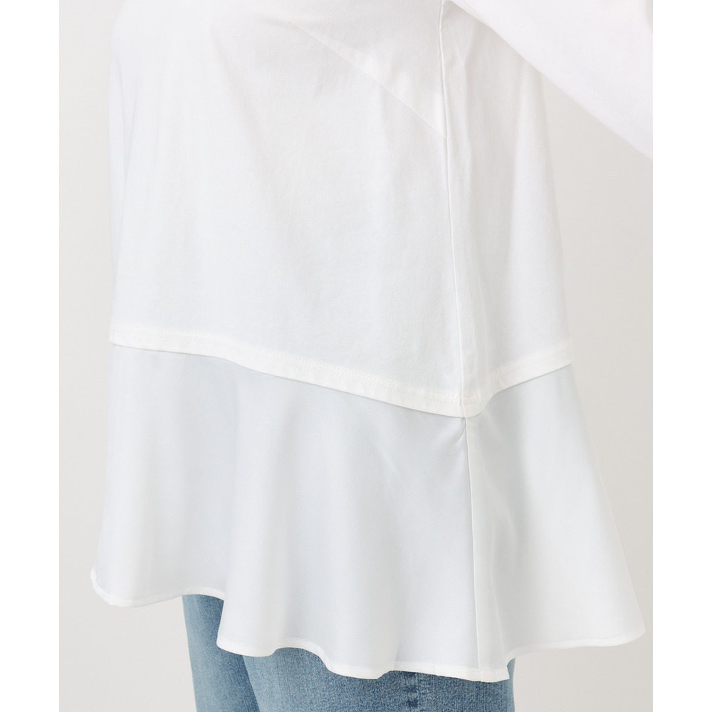 裾のサテン切り替えデザインの長袖カットソー。