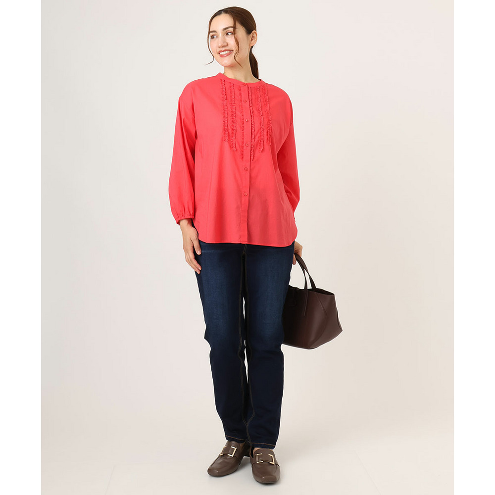 5ポケットのベーシックスリムパンツは合わせるトップスに困らない着回し万能パンツです。