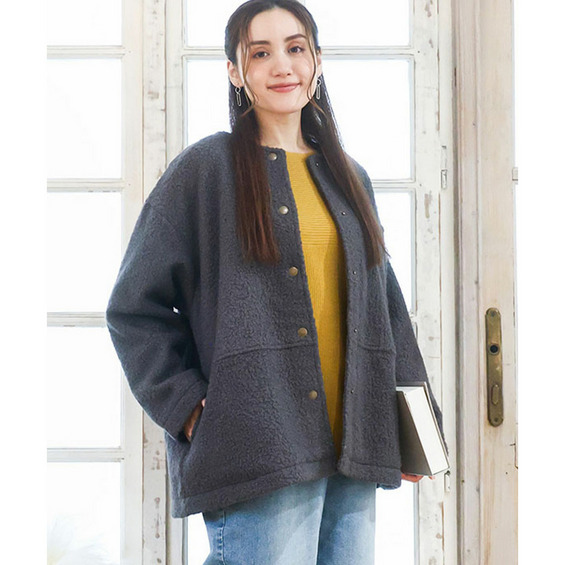 表面感のあるブークレ素材が大人かわいい印象に。