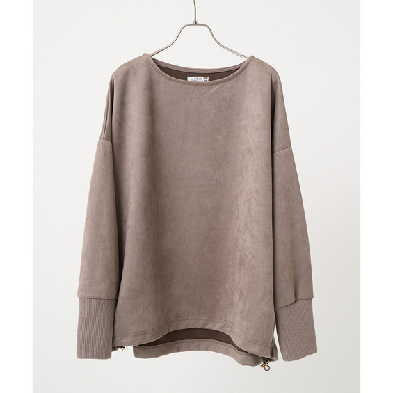 ◆大人の上品カジュアルスタイルにおすすめのスエードトップス◆ 【デザイン】 前裾にゴムストリングを入れたゆるシルエットのトップス。 この時期マストなスエード調のダンボール素材を使用した着回し力あるジャージートップスです。 程よいパフスリーブの袖口には、リブジャージーを使用しているのでタックアップしてもすっきり可愛く着られます。 柔らかく落ち着きのあるくすみカラーで大人カジュアルスタイルが上品に決まります。 【素材】 表面がスウェードタッチのダンボール素材を使用。 適度な厚みがあり、モチっとした柔らかいストレッチ性のある生地になります。 【スタイリングポイント】 裾をストリングで調節できるのでパンツ、スカートどちらでも可愛く着られます。 タートルネックカットソーなどを合わせたレイヤードスタイルも◎