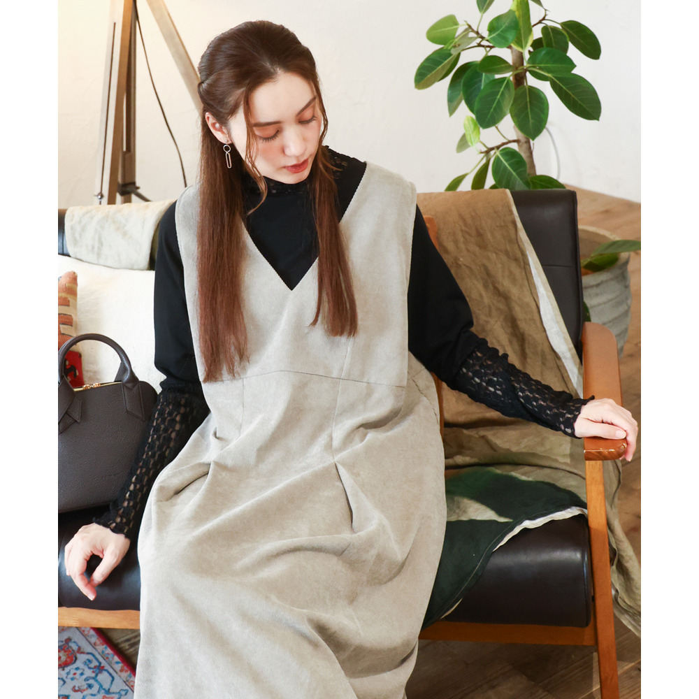 細コールがカジュアルで大人可愛いジャンパースカート。