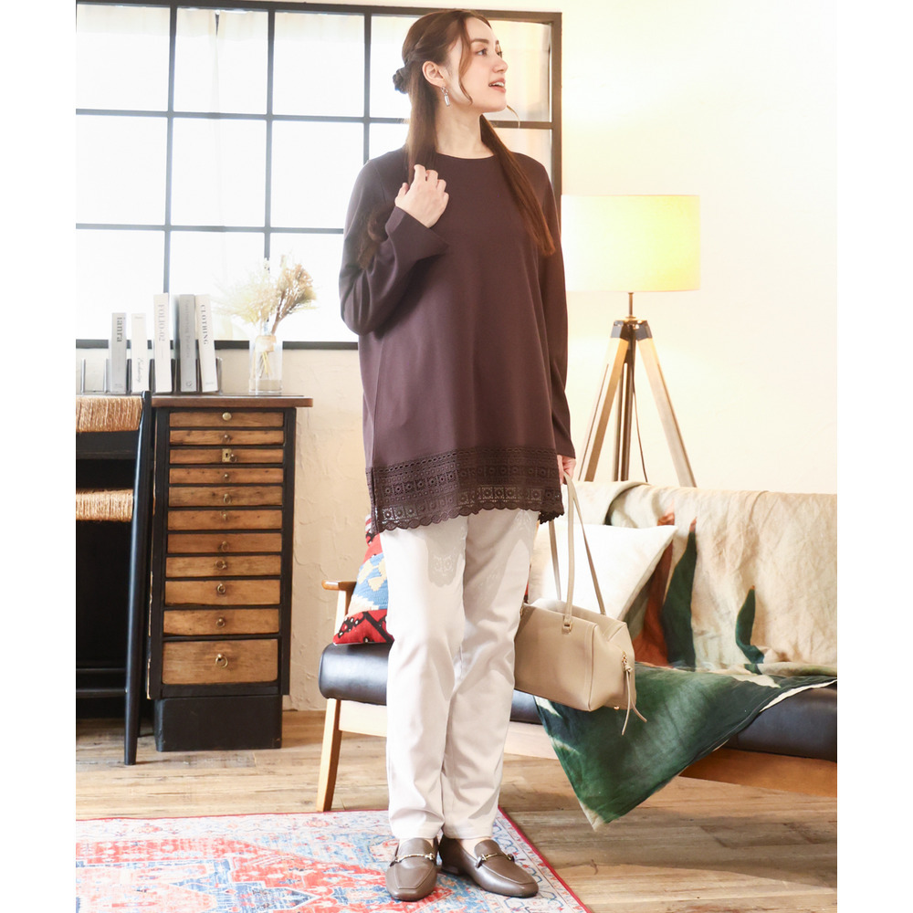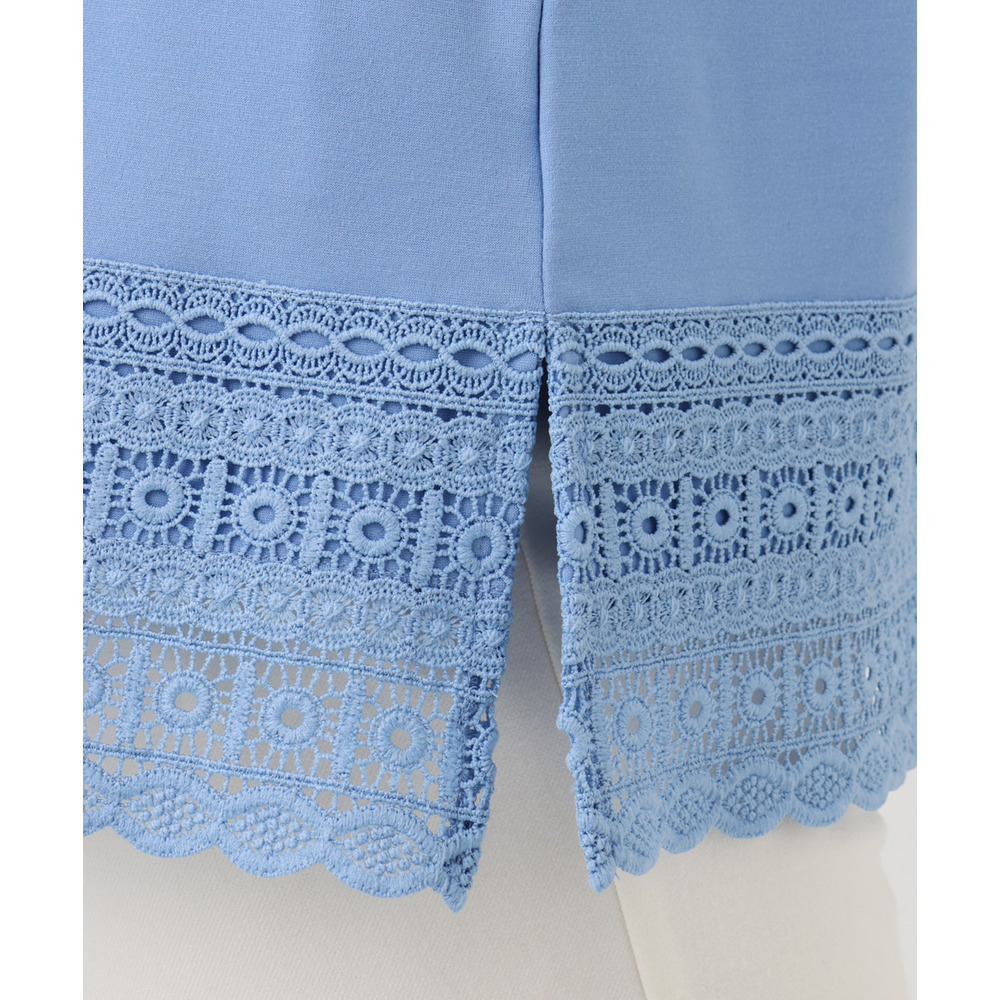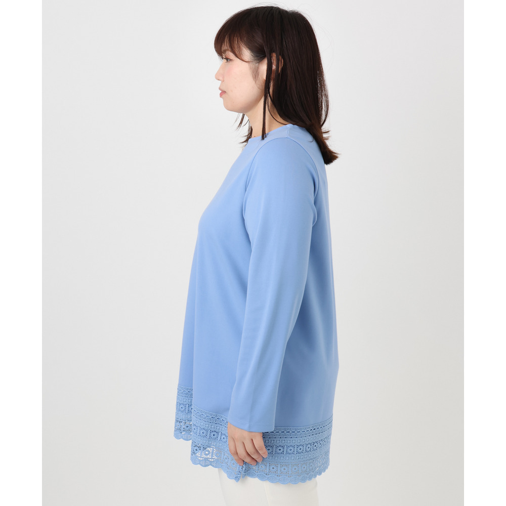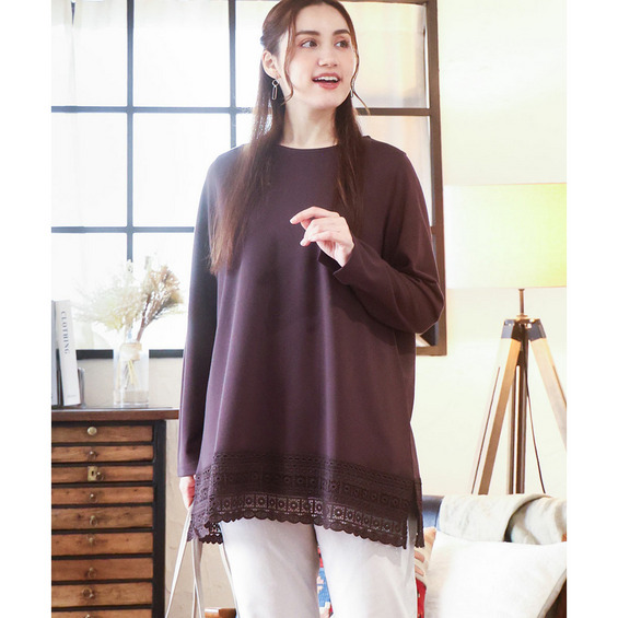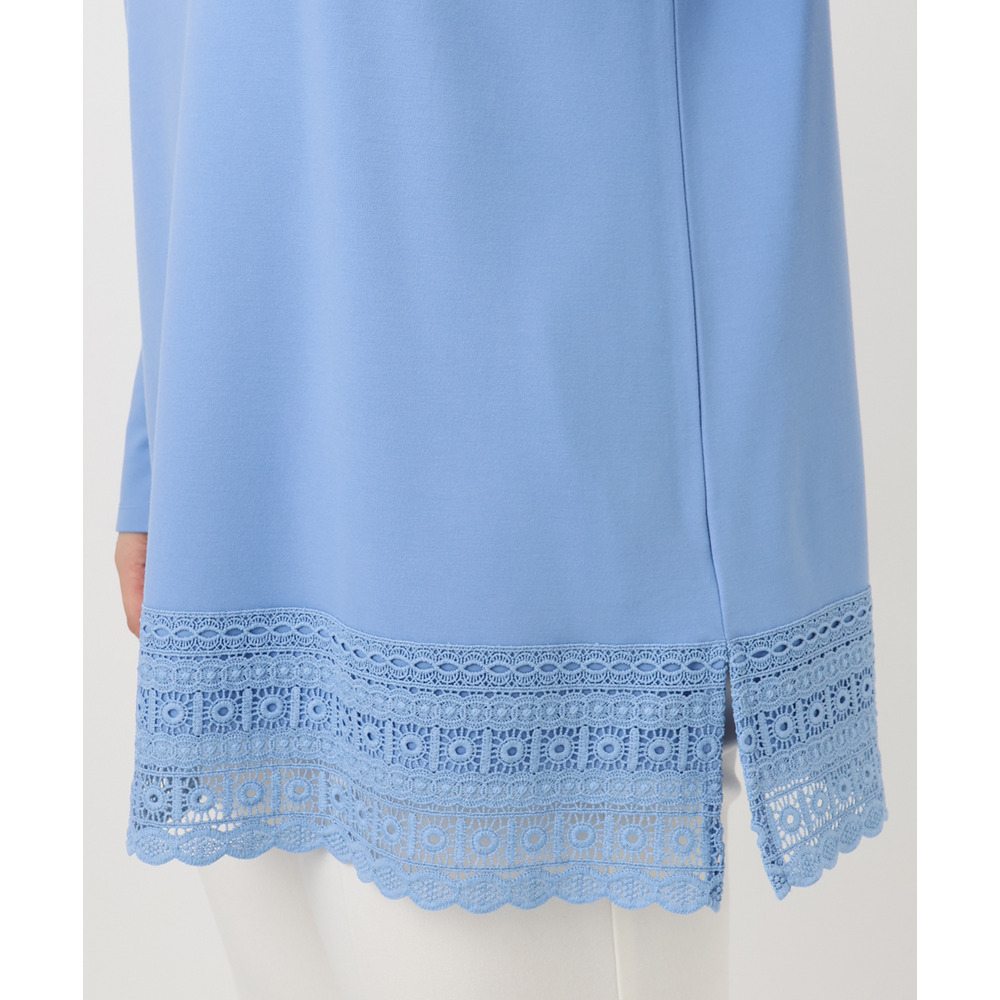 きれいな表面感の中肉のポンチジャージーに、ケミカルレースを裾に使用しています。