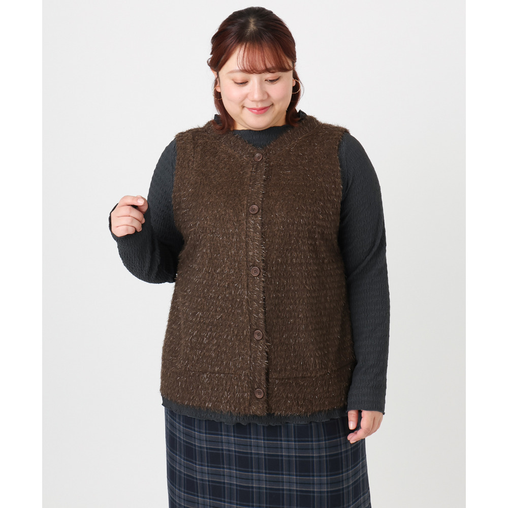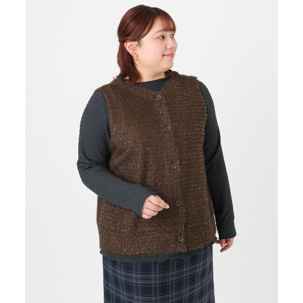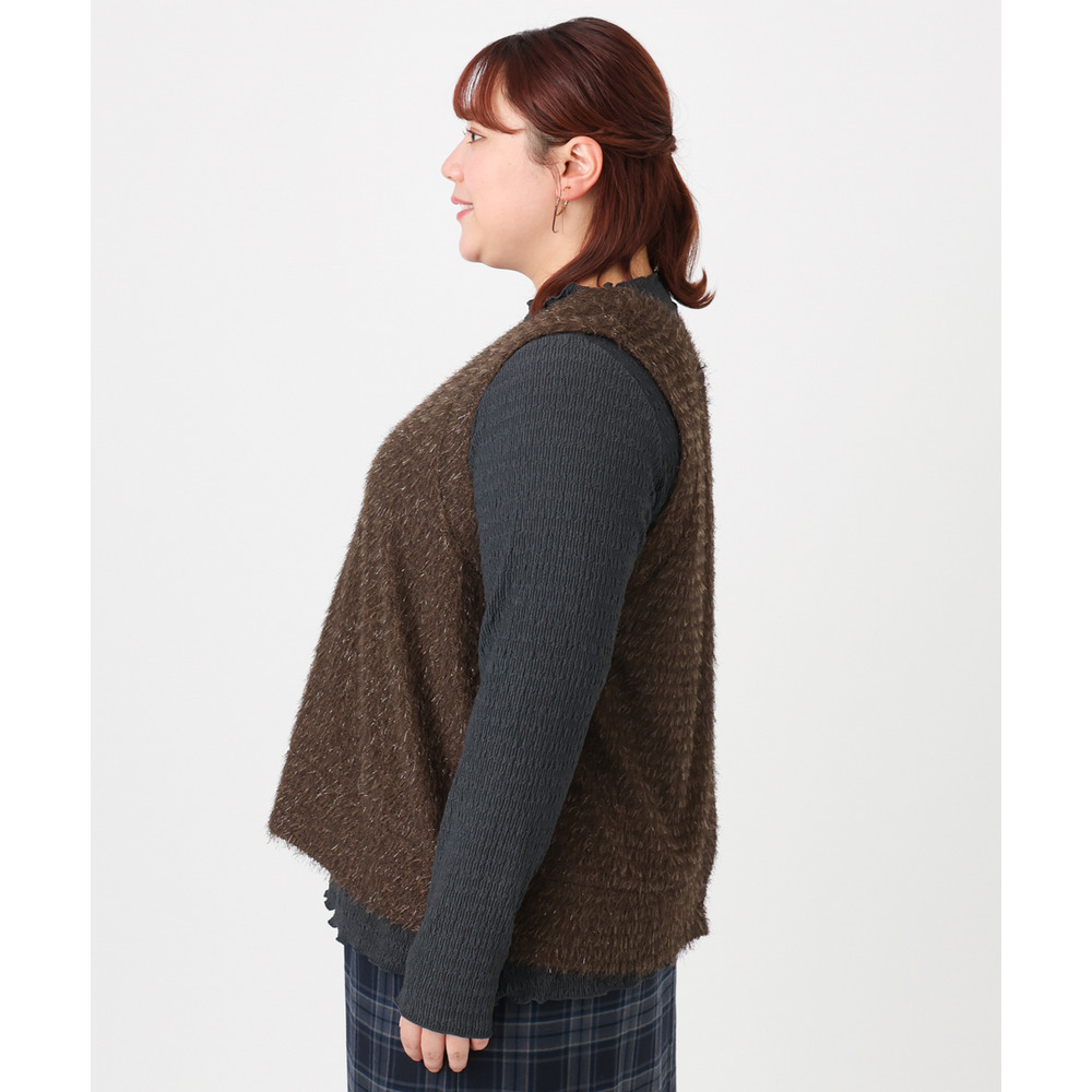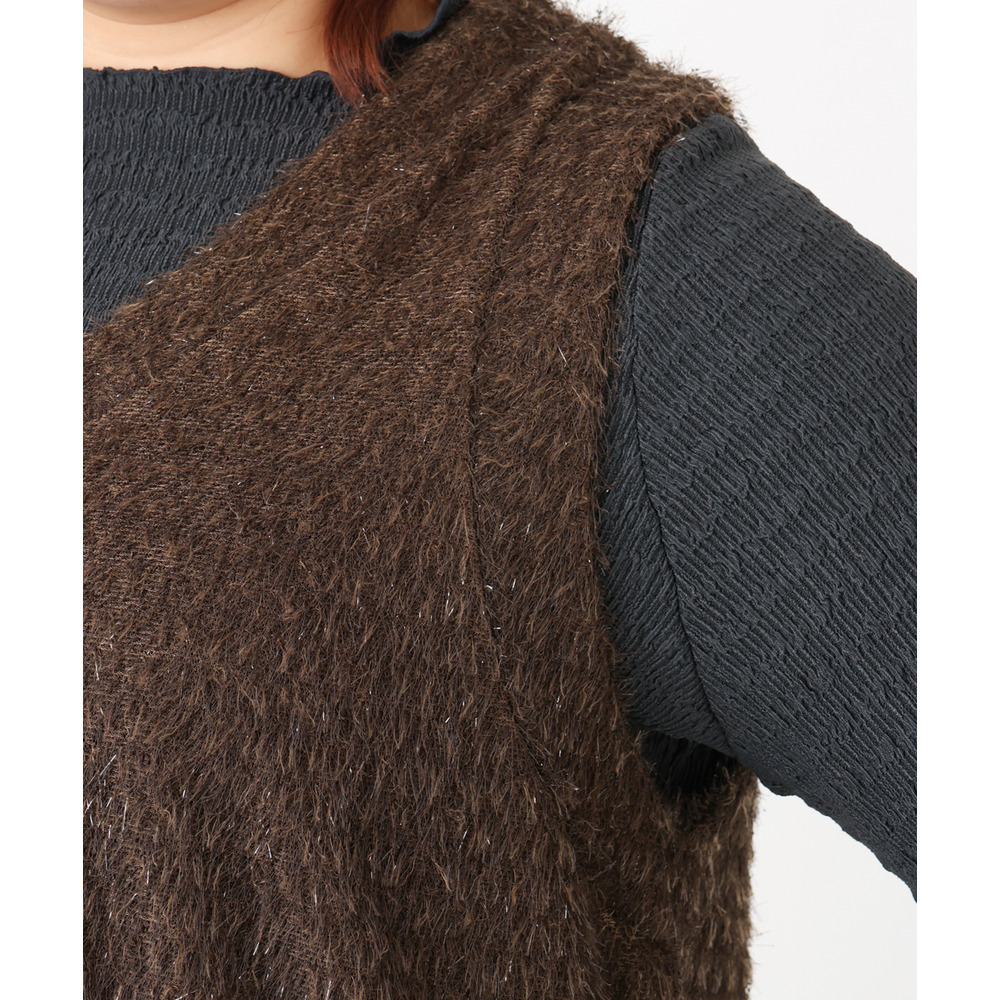 25年冬新作【大きいサイズ】2wayラメシャギーベスト