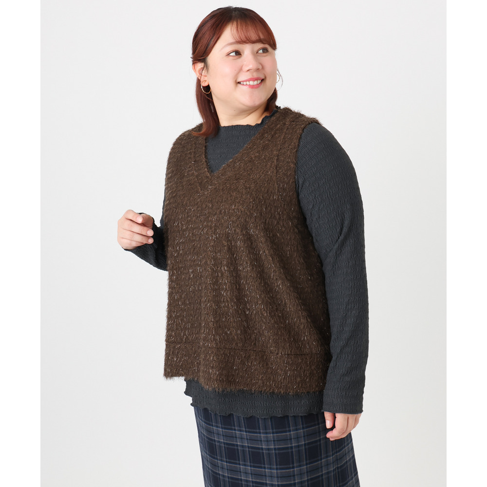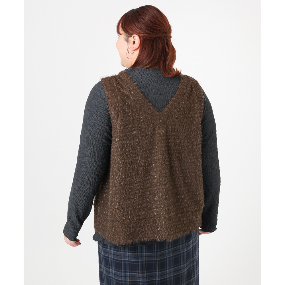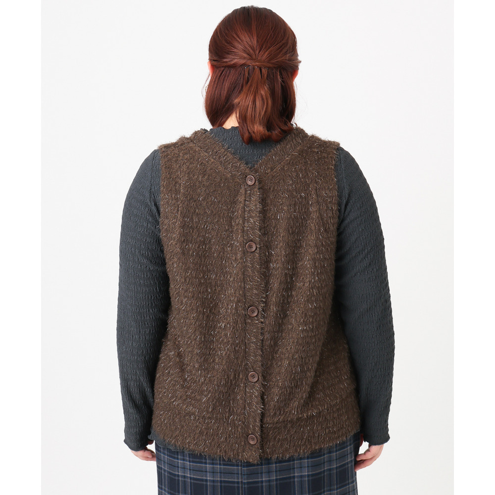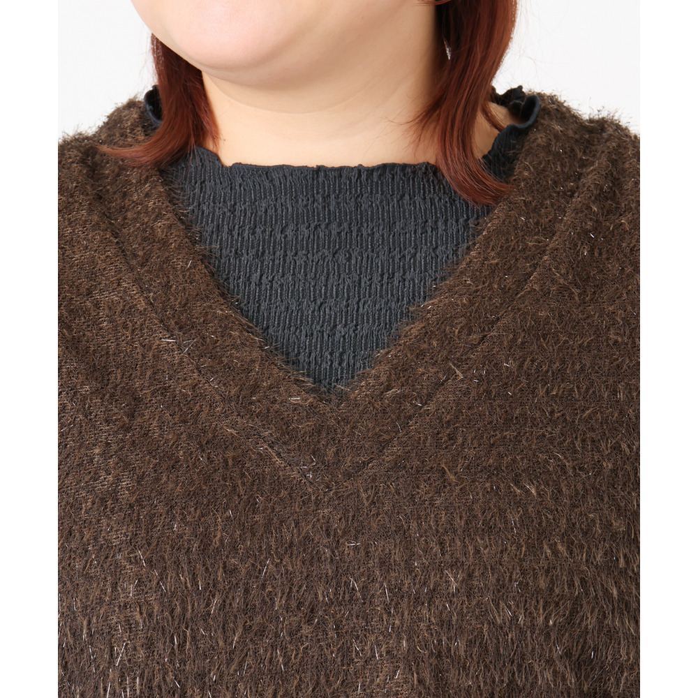 25年冬新作【大きいサイズ】2wayラメシャギーベスト