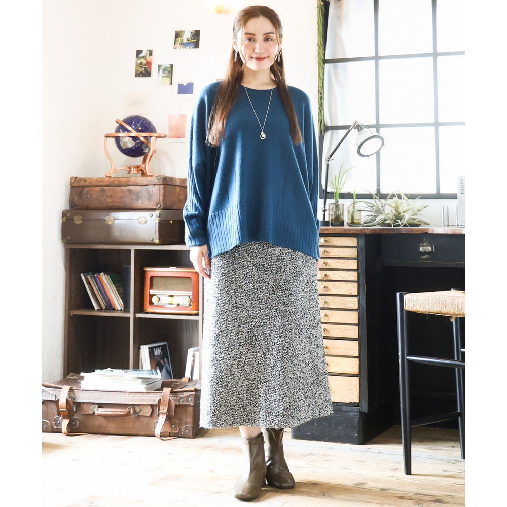 ゆったりとした落ち感あるシルエットでパンツにもスカートにも合わせやすいあたたかなニット。