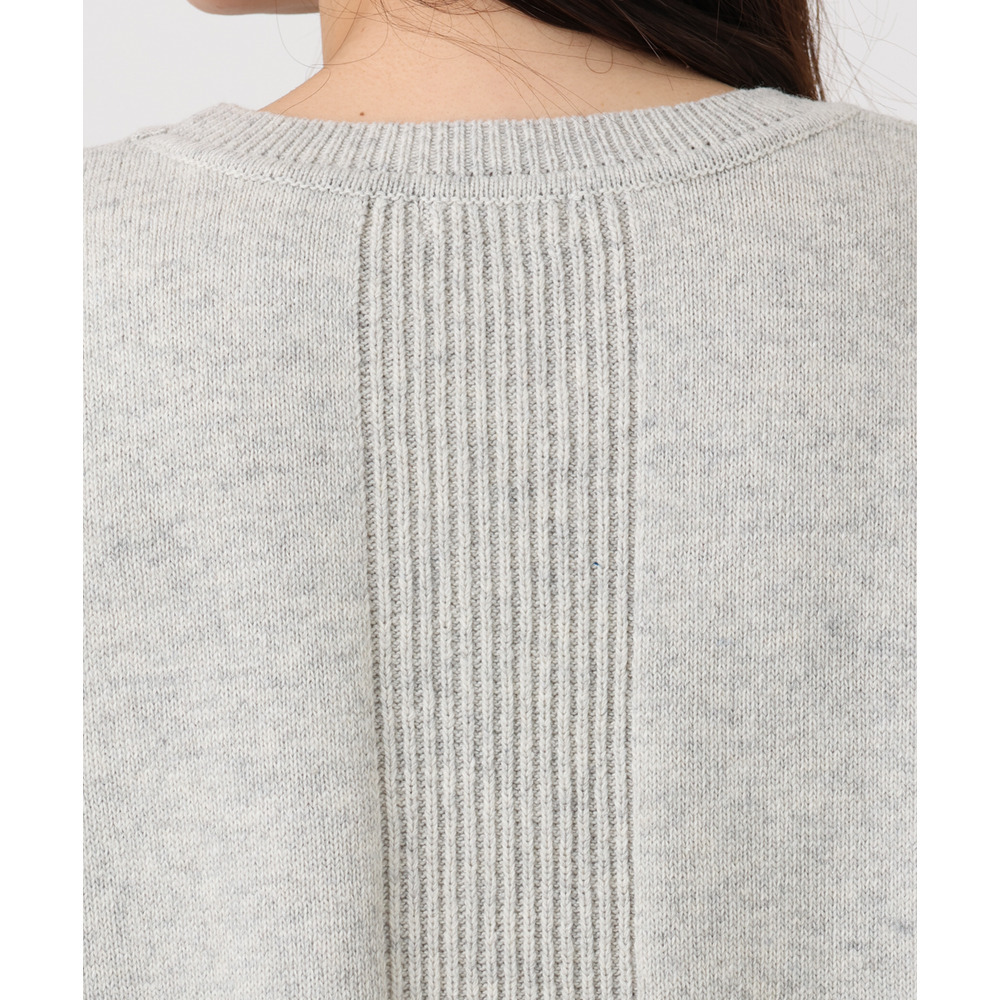胸下と後ろ中心にリブ目を入れてボクシーシルエットでも縦のライン効果でスッキリ。