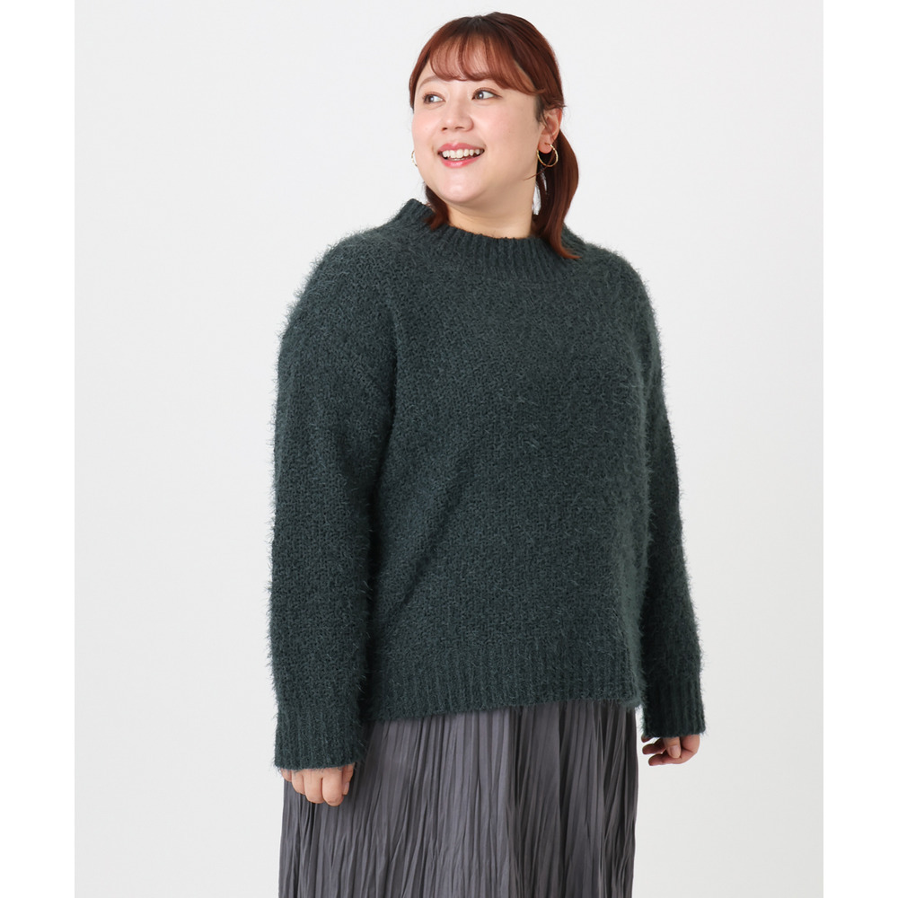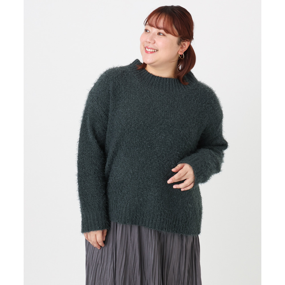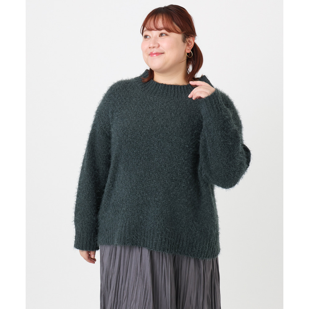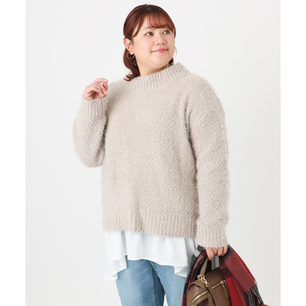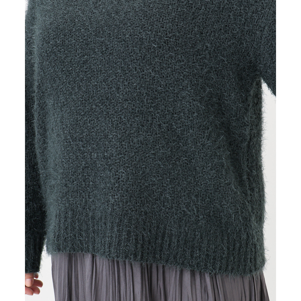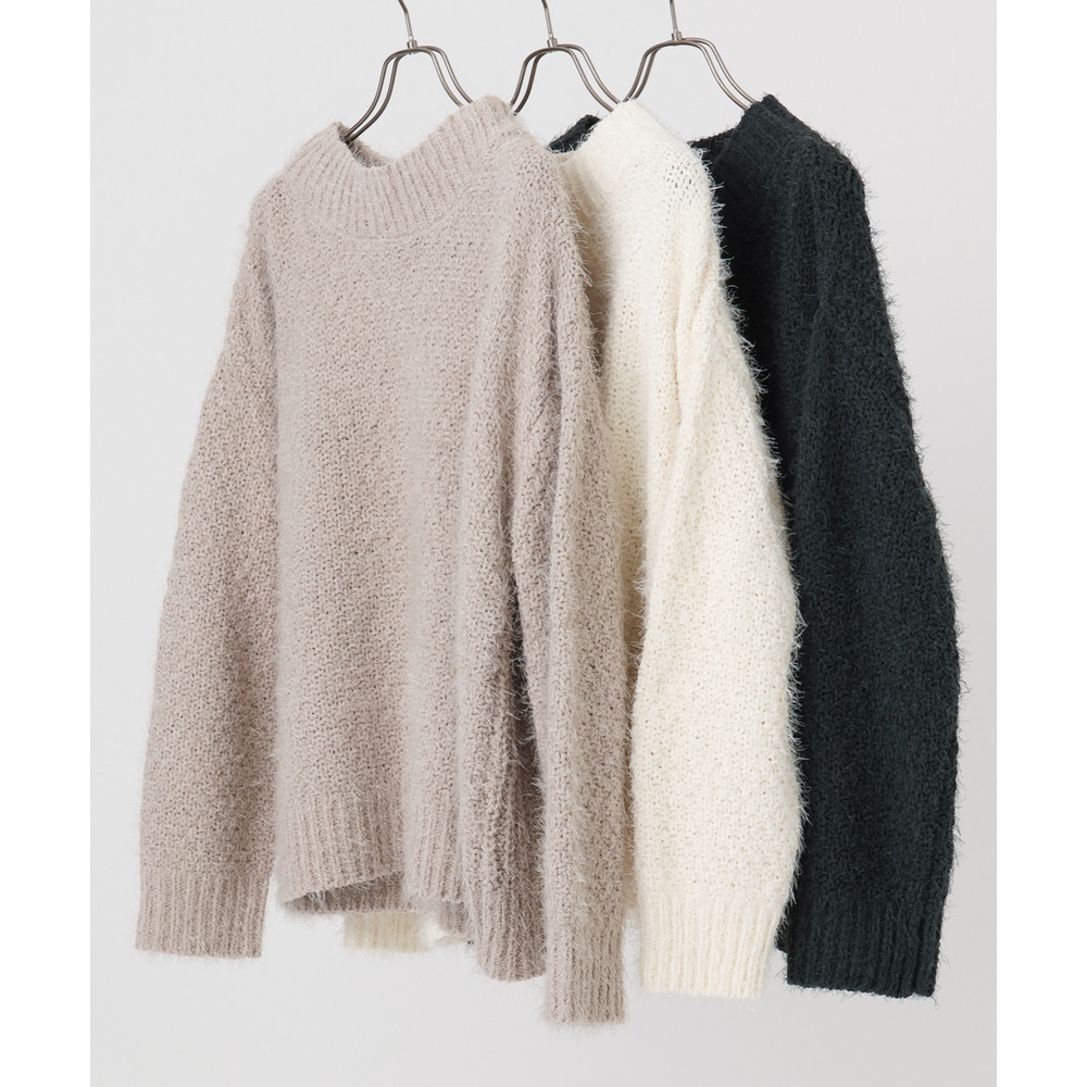 意匠感がかわいいモール糸を使った、表面に程よい凹凸がかわいく出るバスケット編みのニット。