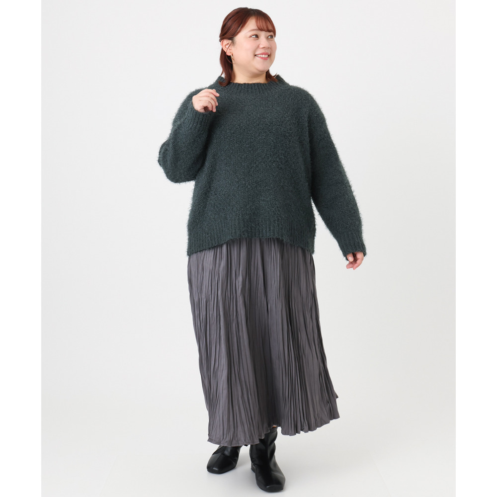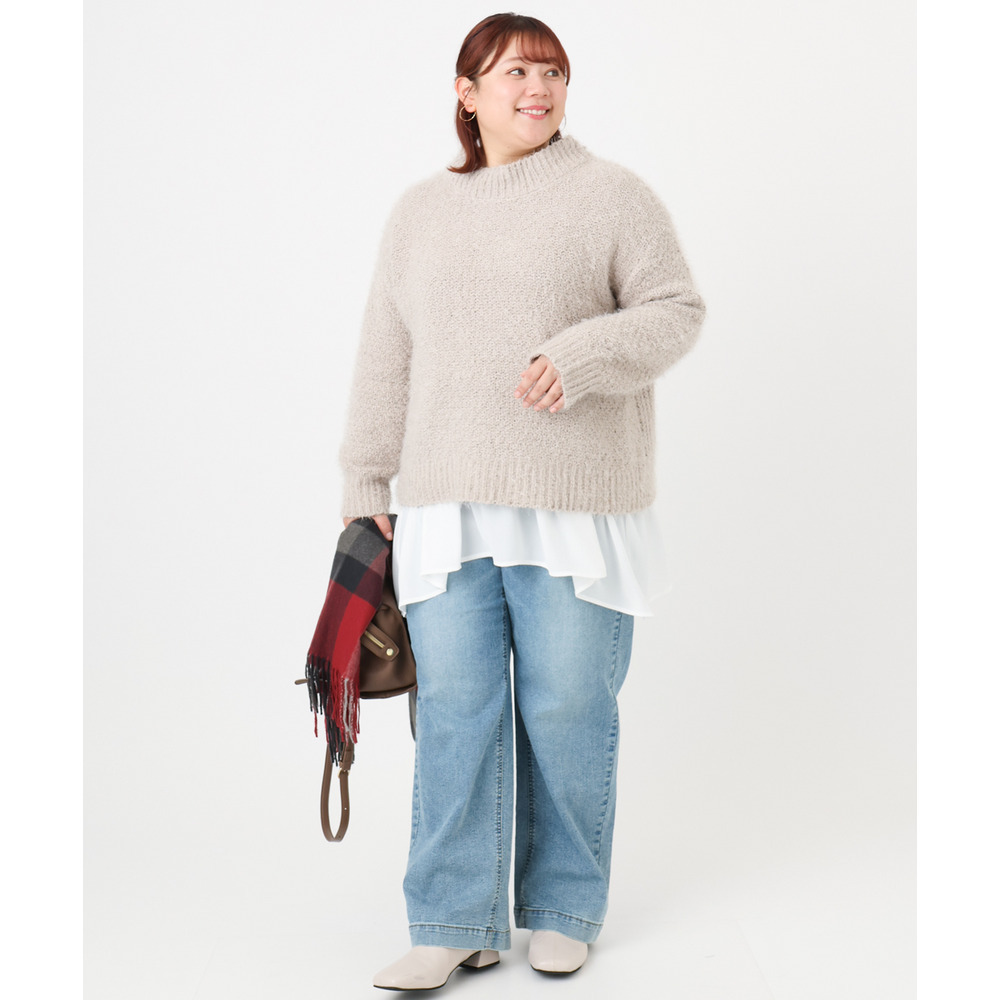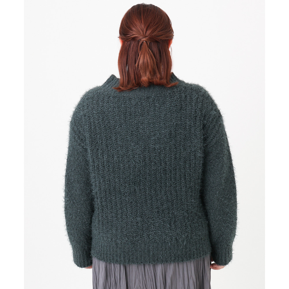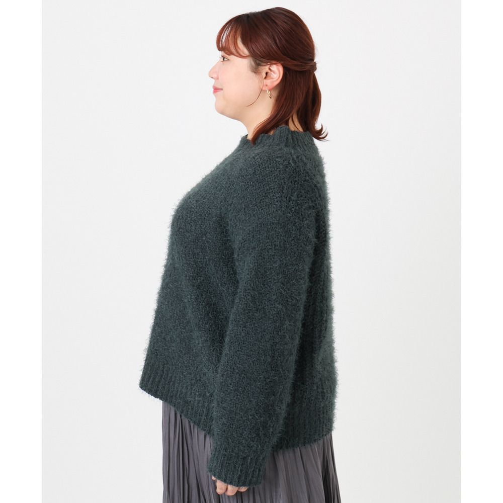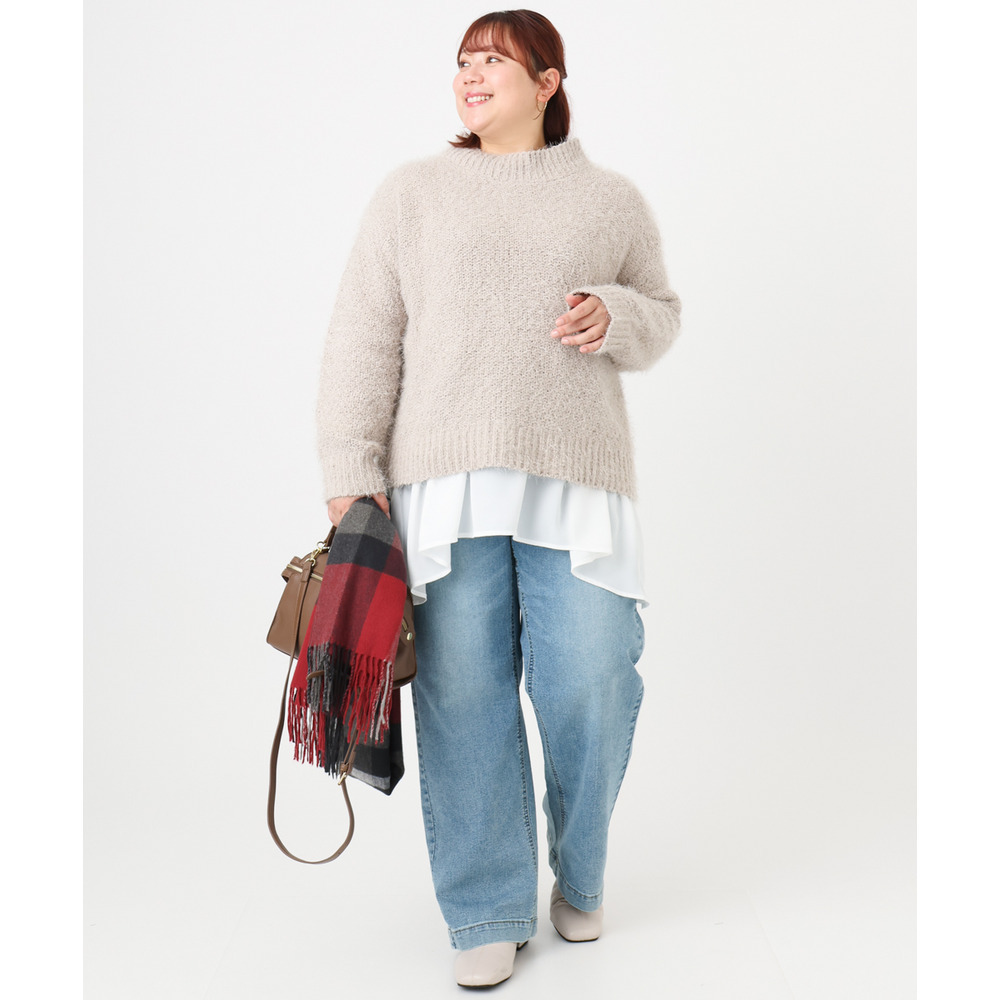 意匠感がかわいいモール糸を使った、表面に程よい凹凸がかわいく出るバスケット編みのニット。