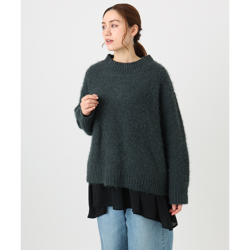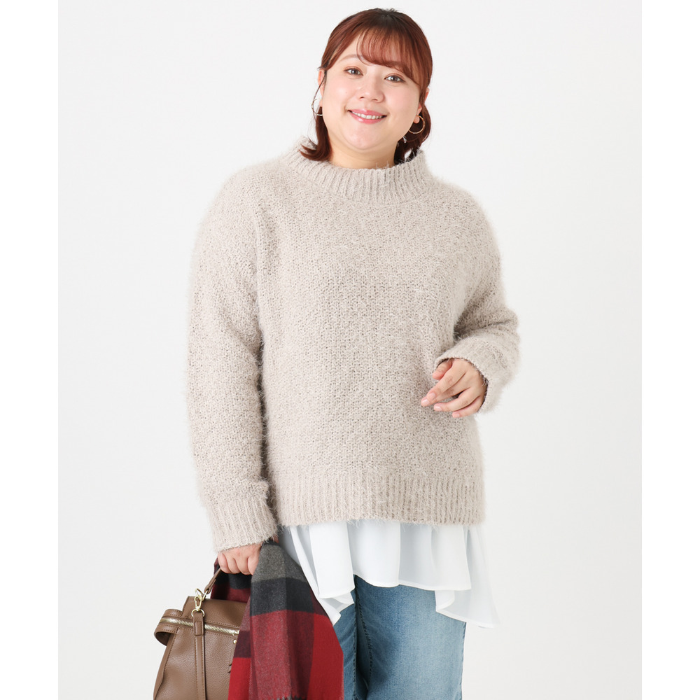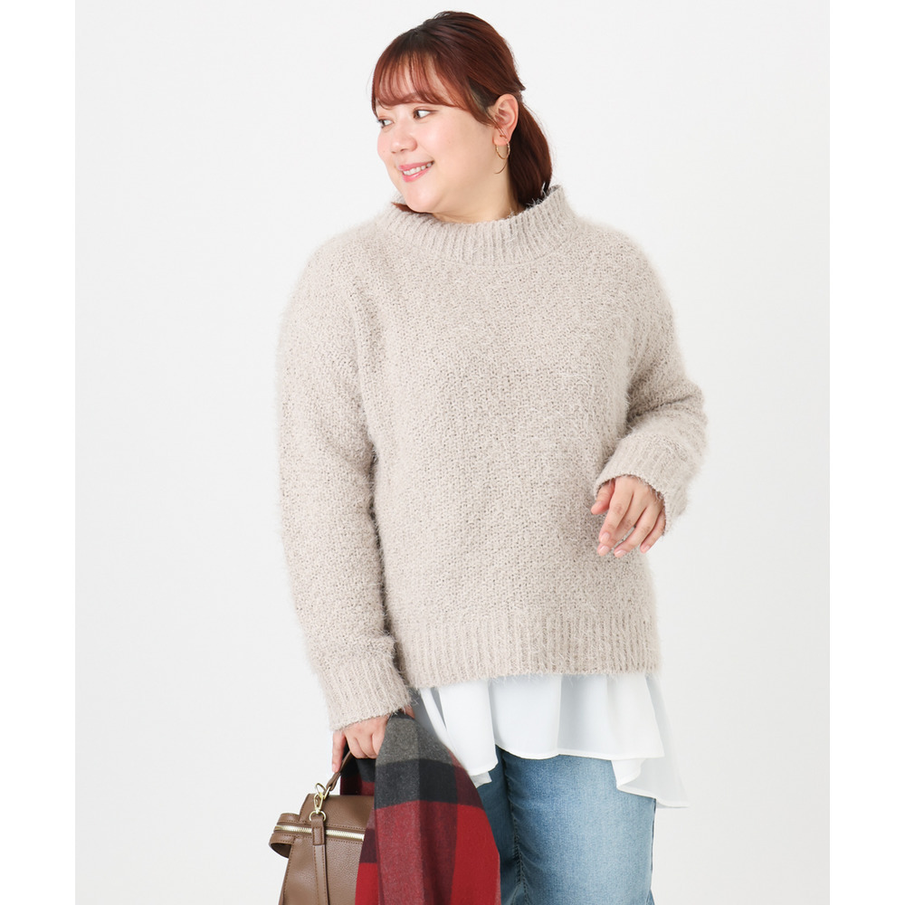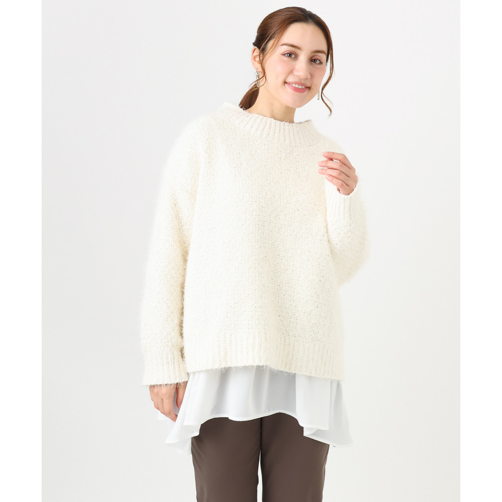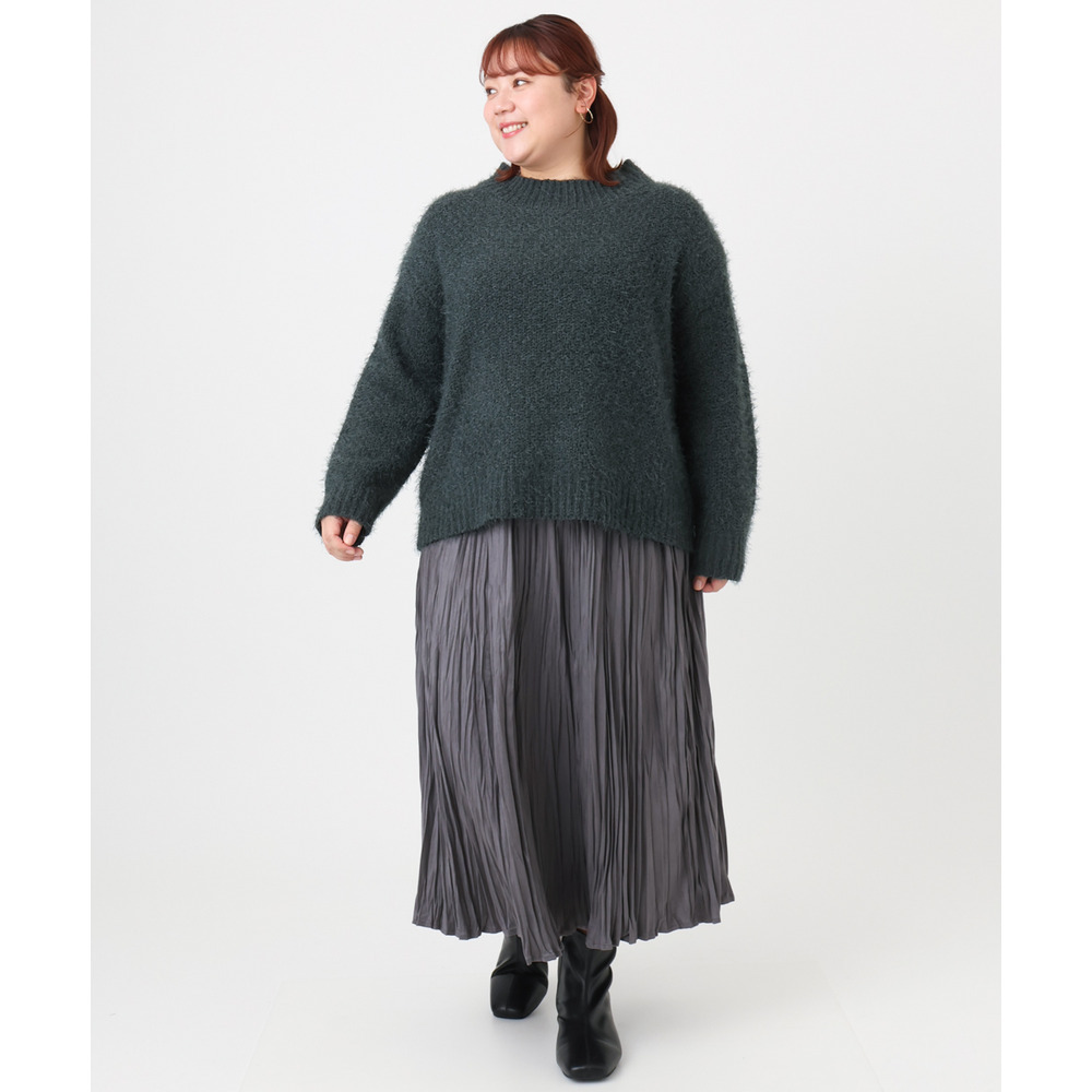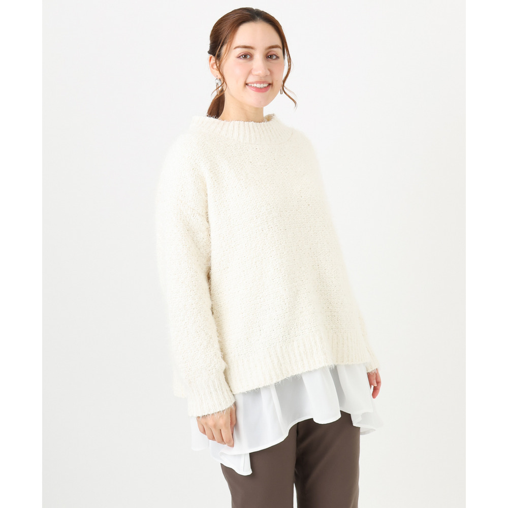 意匠感がかわいいモール糸を使った、表面に程よい凹凸がかわいく出るバスケット編みのニット。