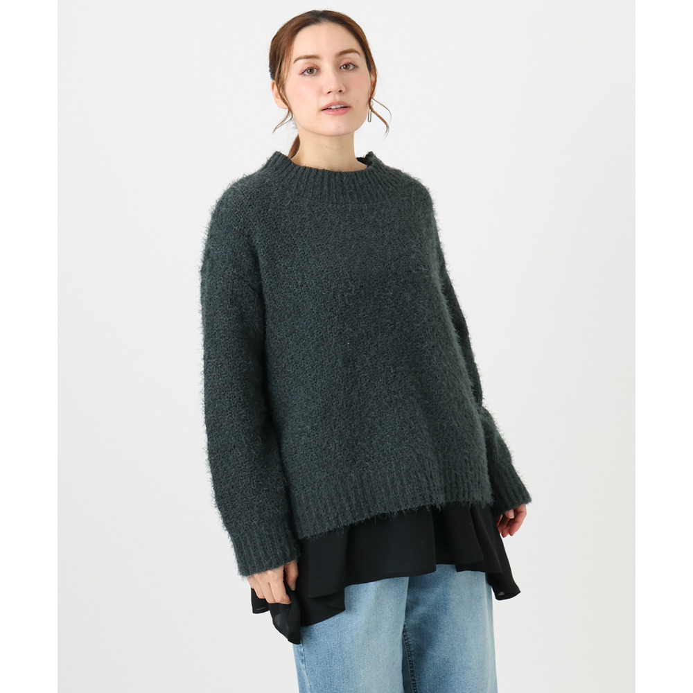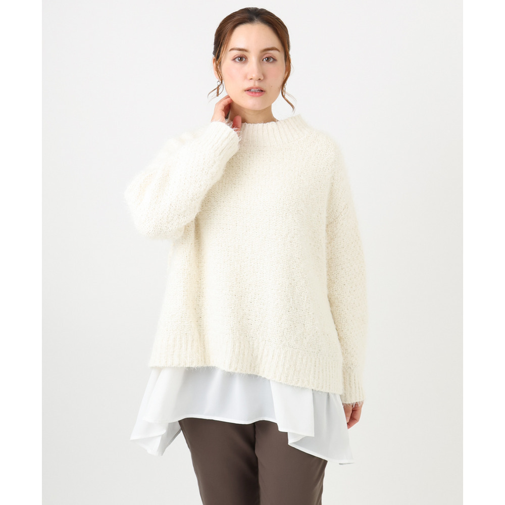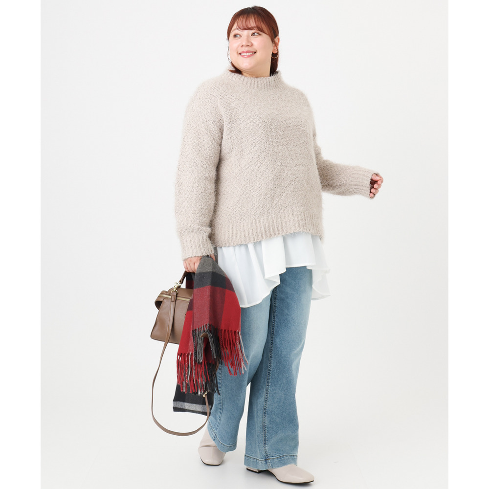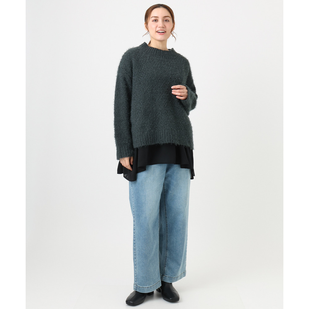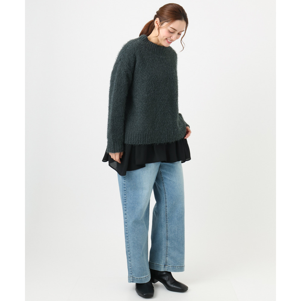 スカートやワイドパンツでもすっきり合わせられる着丈なので細身のパンツを合わせる時は裾見せインナーをレイヤードして着るのもおすすめです。