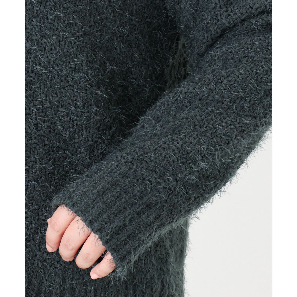 ポリエステルのモールのニット糸をバスケット編みで仕上げたニットです。