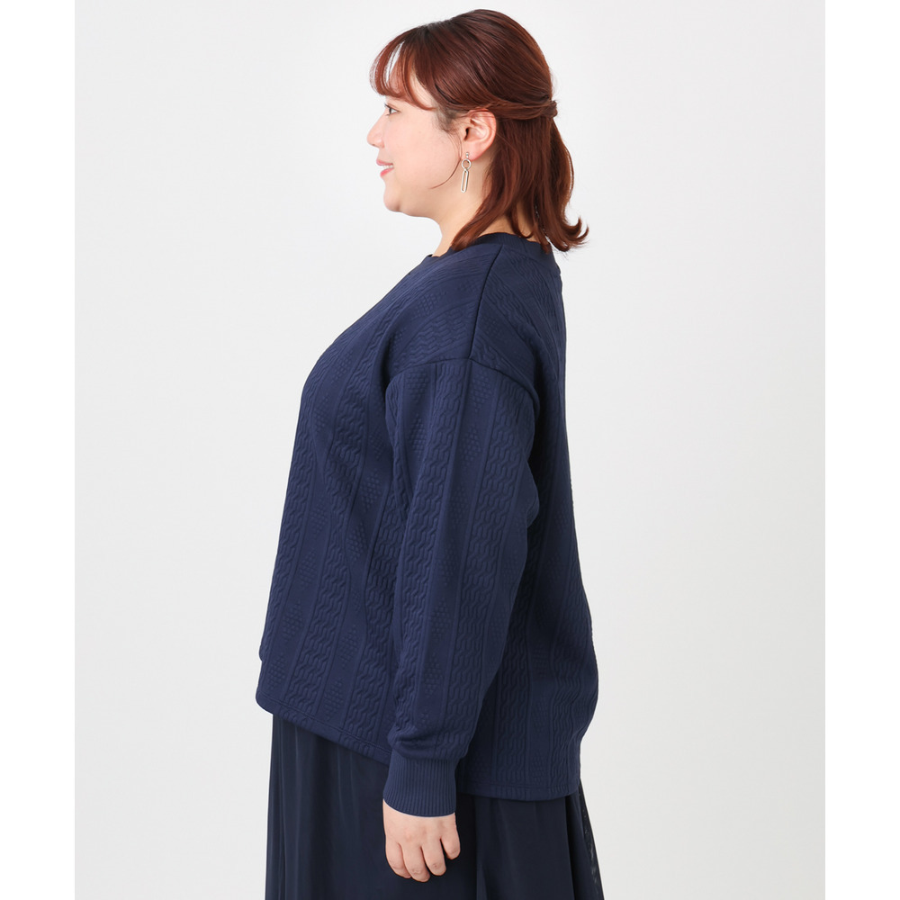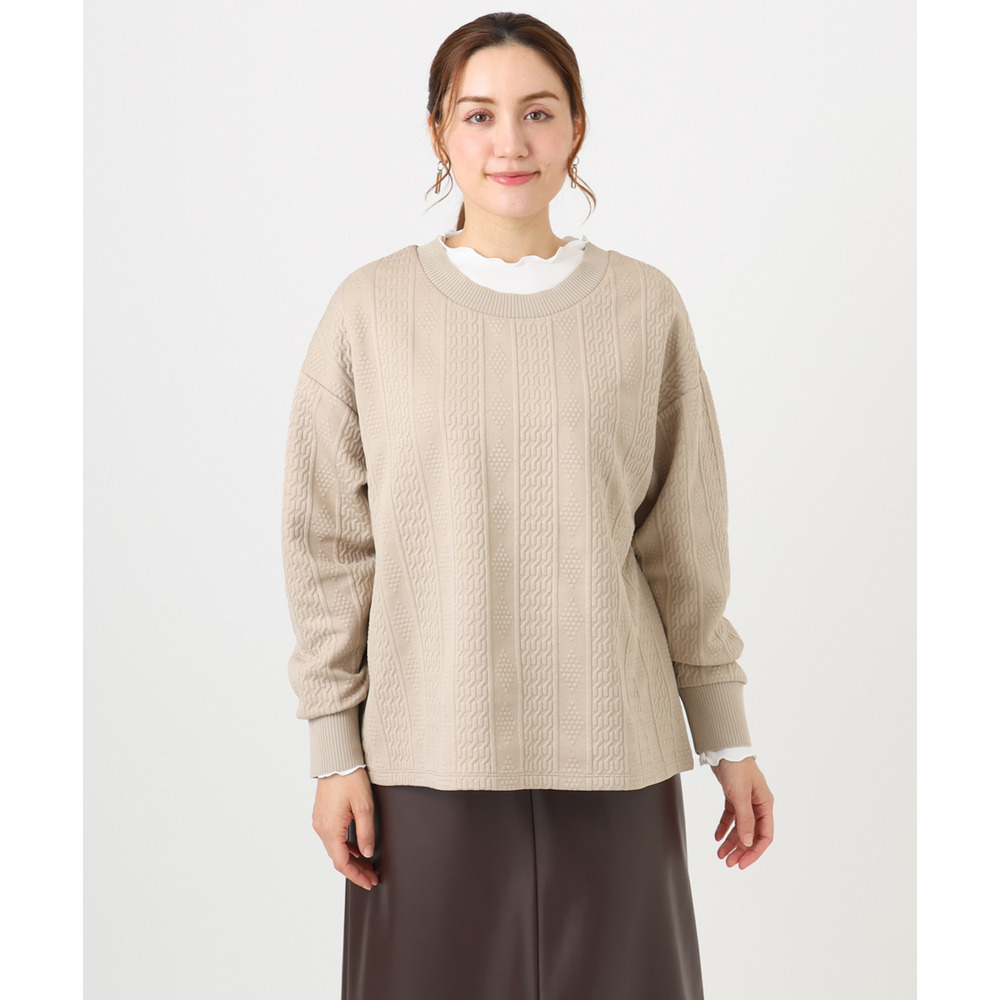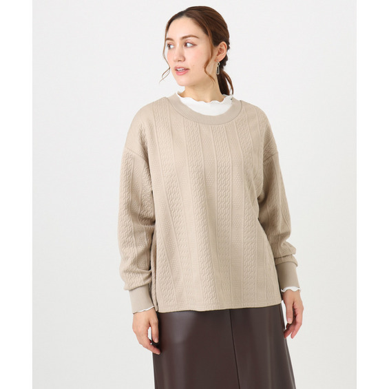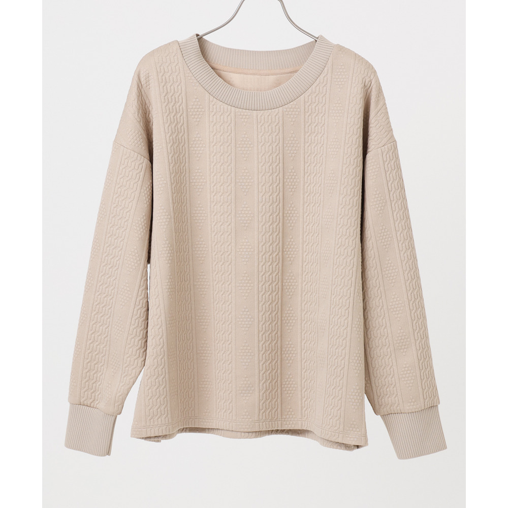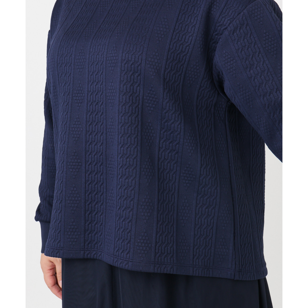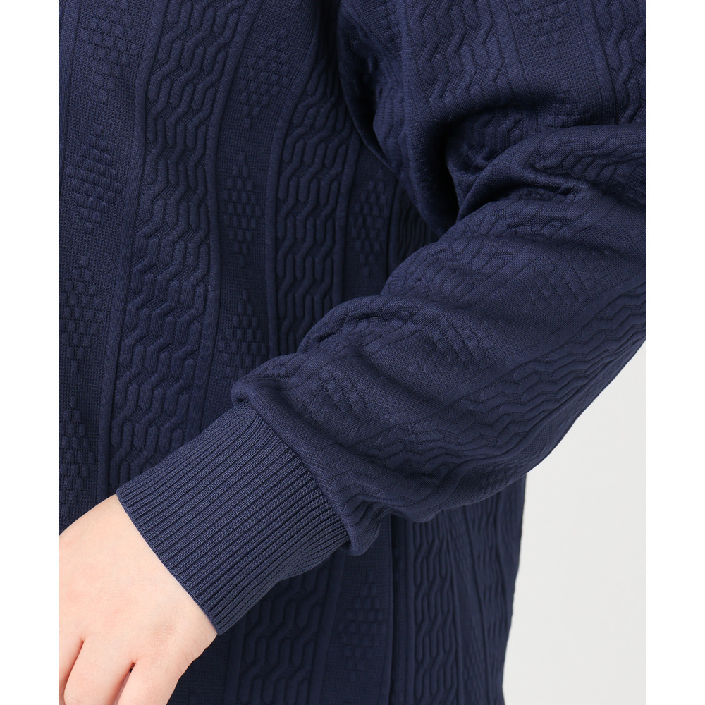 ケーブル風の柄に凹凸をつけた立体ジャカードがポイントのジャージートップス。