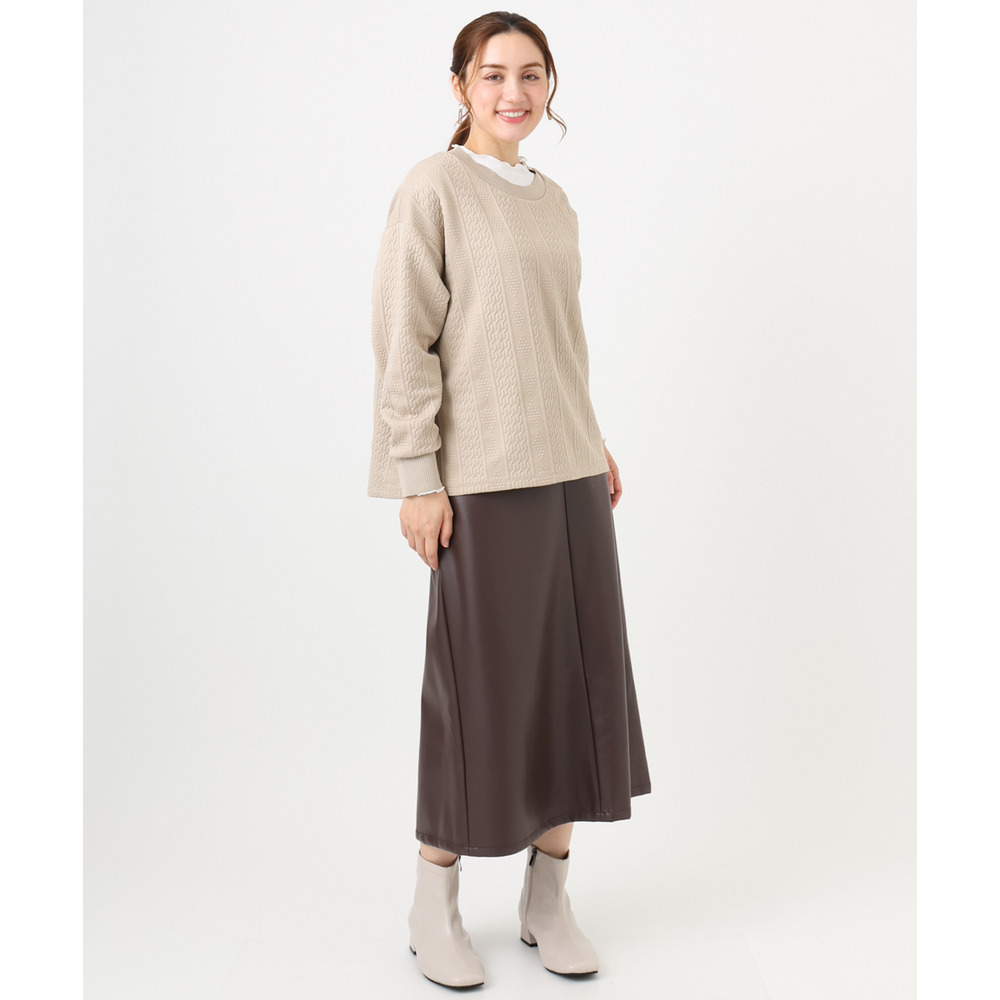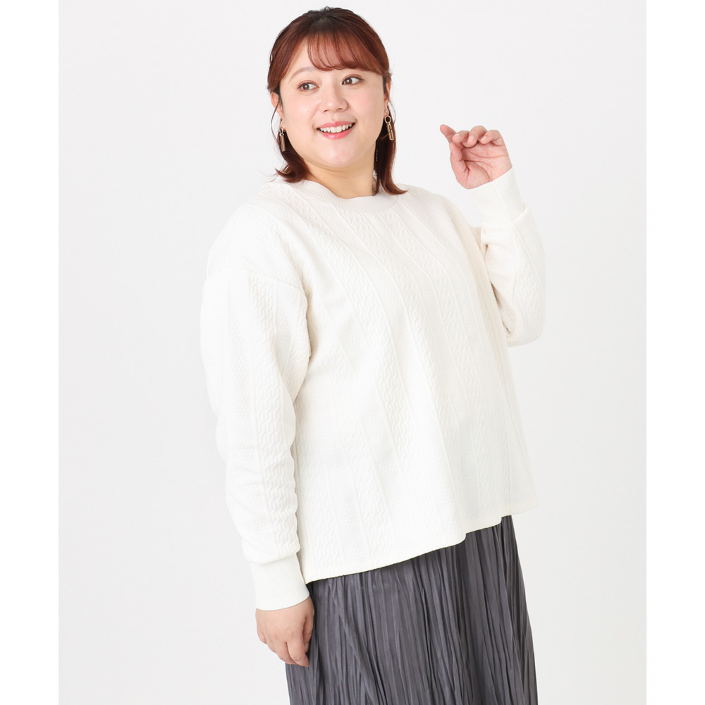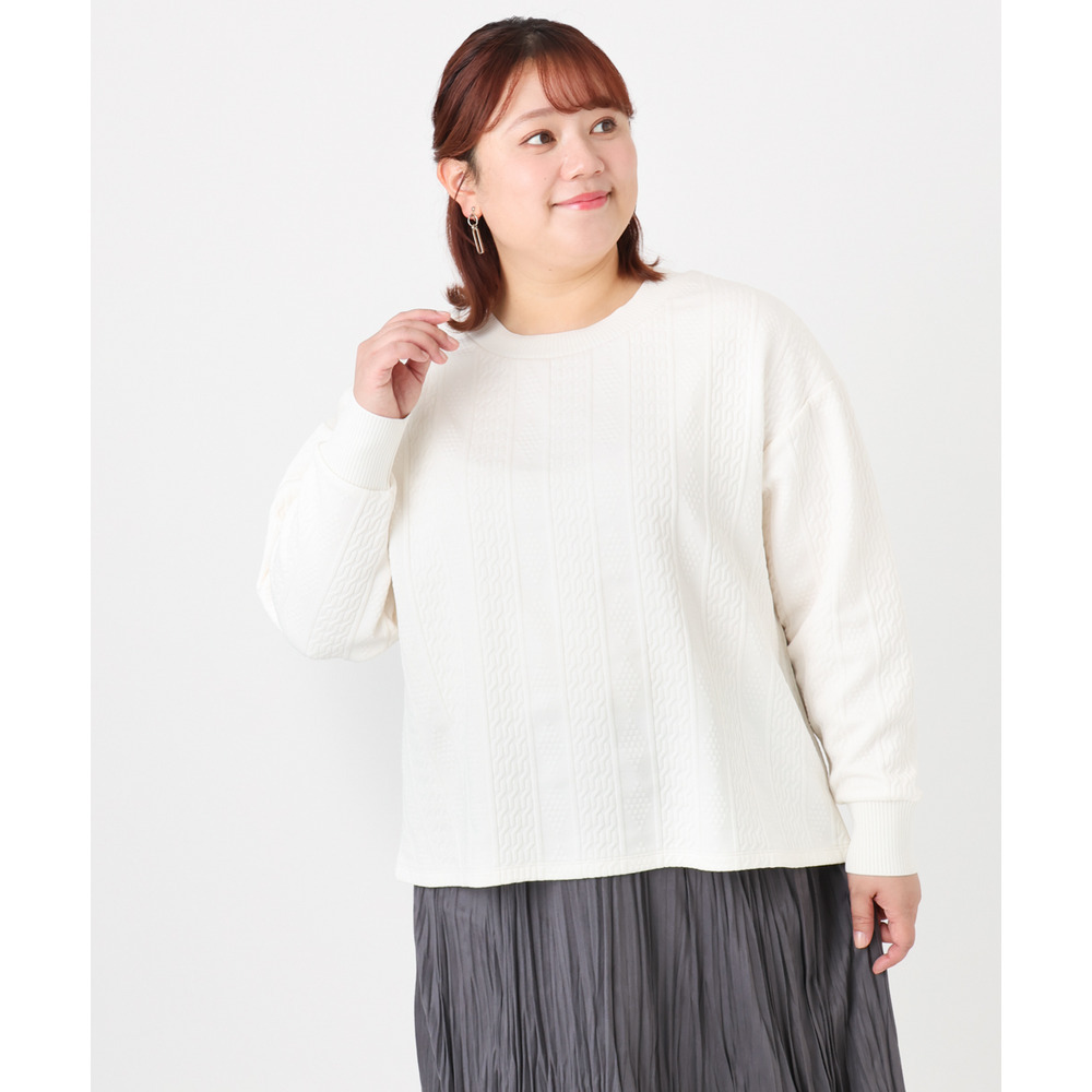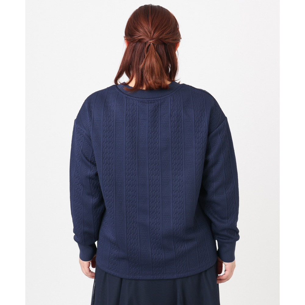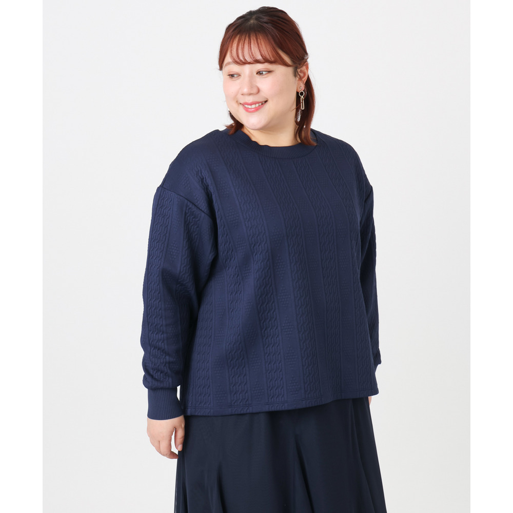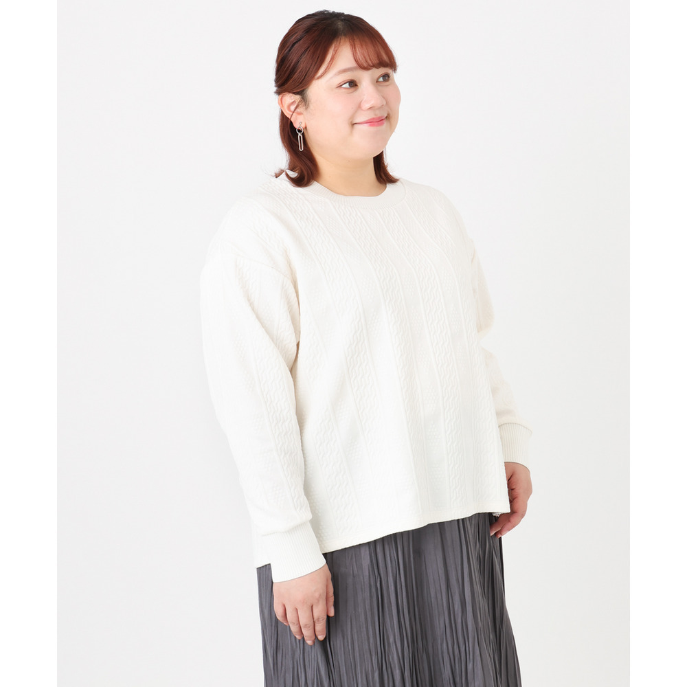 ケーブル風の柄に凹凸をつけた立体ジャカードがポイントのジャージートップス。
