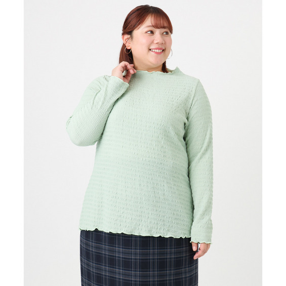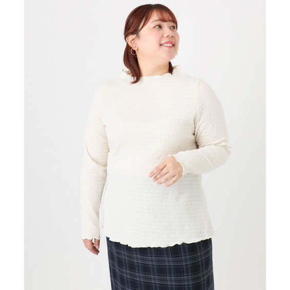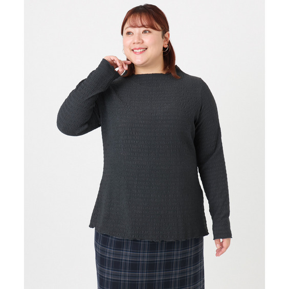 身体のラインを拾いにくい素材を使用し、1枚着としてもレイヤードアイテムとしてもご着用いただける万能トップスです。