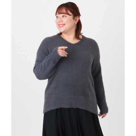すっきり着られるVネックラインに抜け感のあるドロップショルダーデザイン。