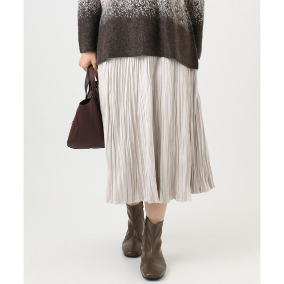 広がりすぎないプリーツなのでボリュームニットを合わせてもすっきり可愛く着られます。