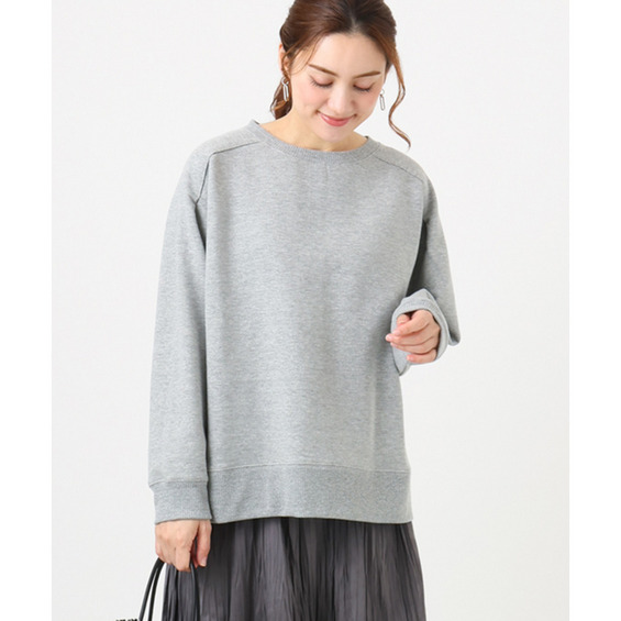 肩回りから袖口まで程よいボリュームの出るショルダータック入りのデザイントップス。