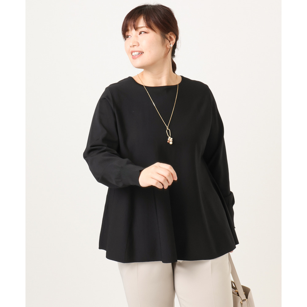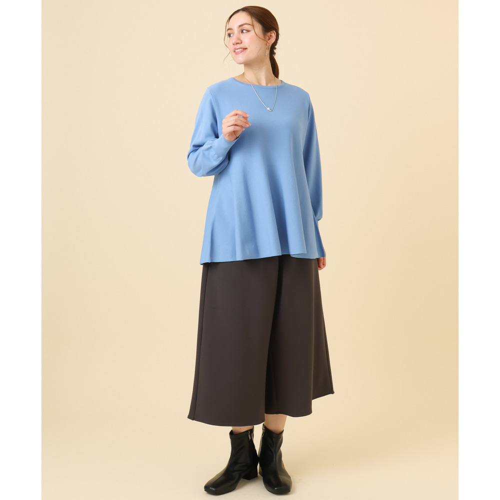 落ち感のある素材なのでワイドパンツやキュロットパンツに合わせてもすっきり着られます。