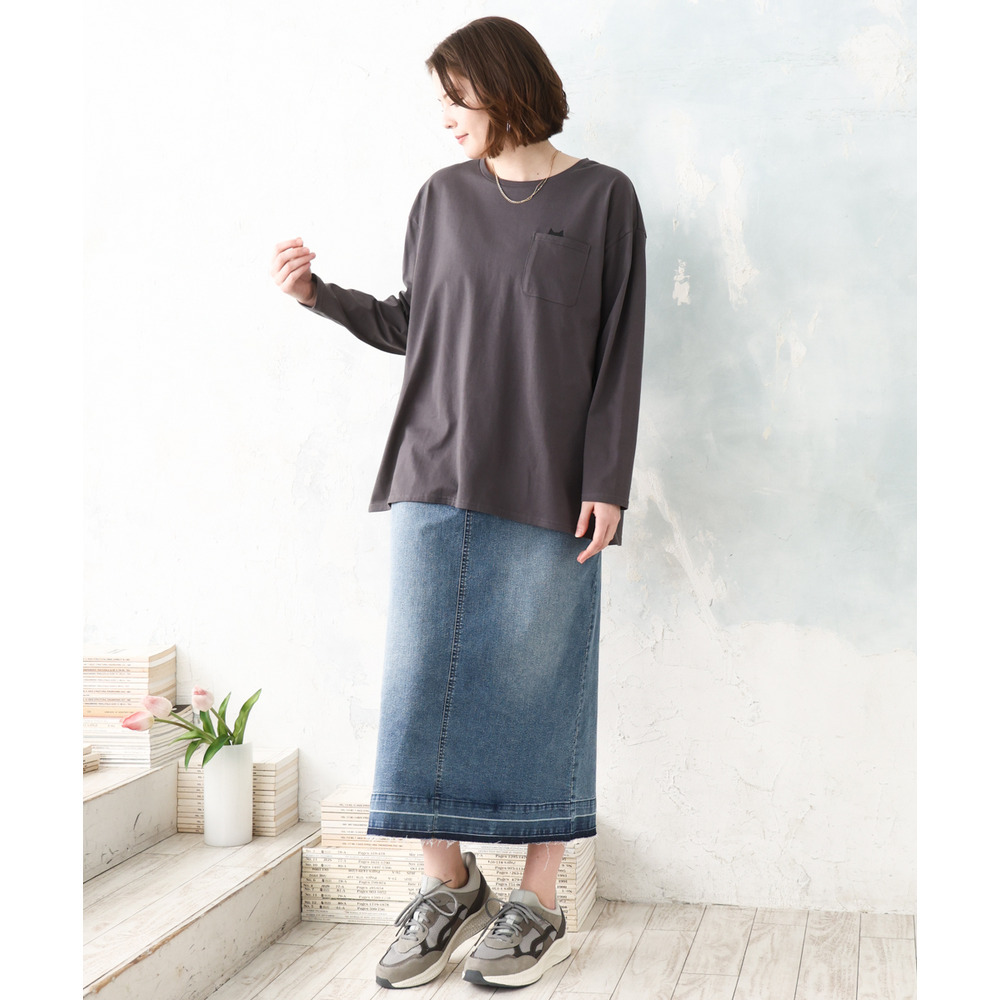 着回し力抜群の、すっきりとしたタイトシルエットのデニムスカートです。
