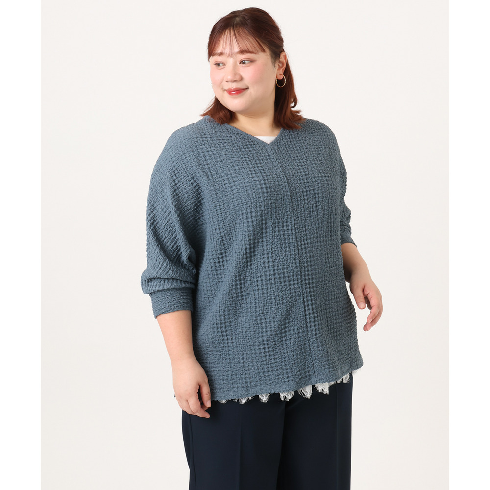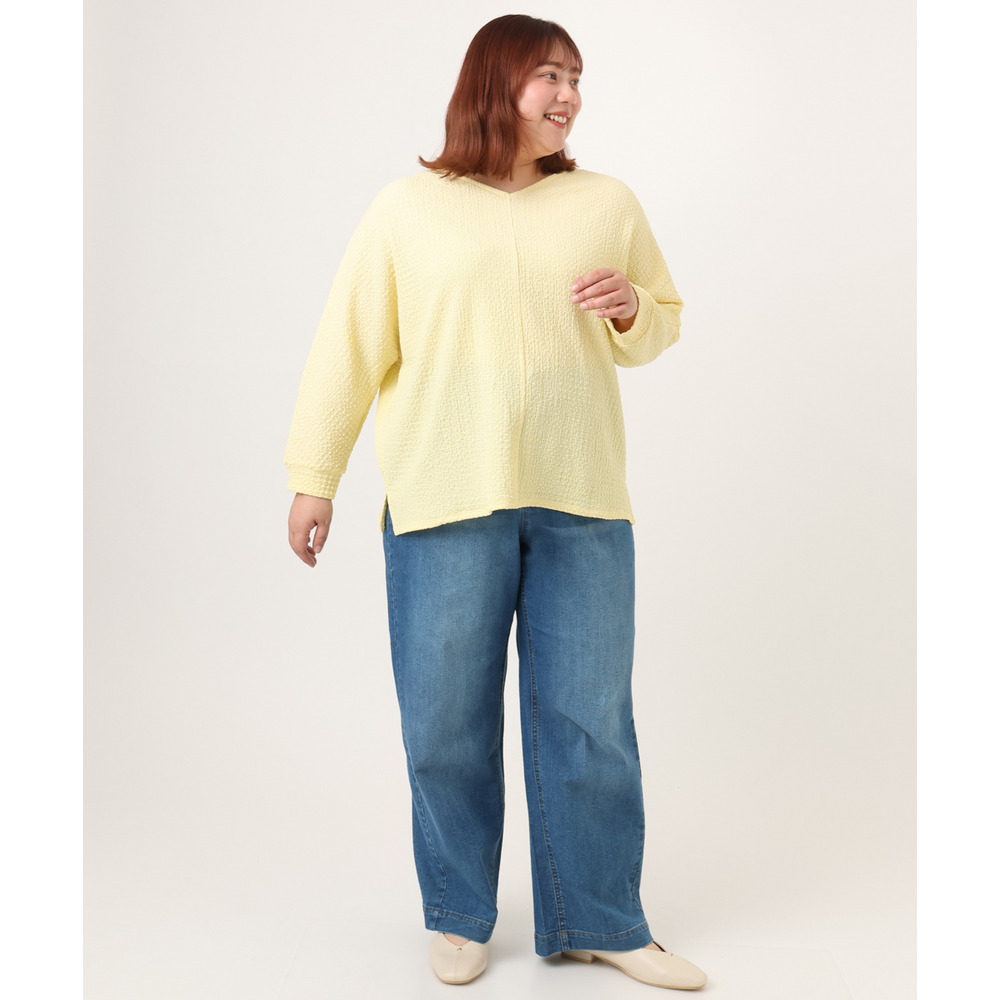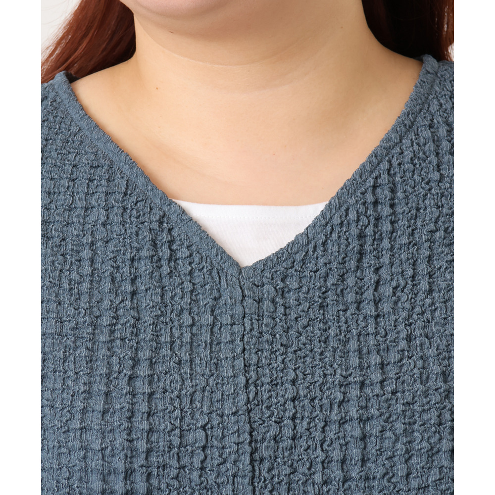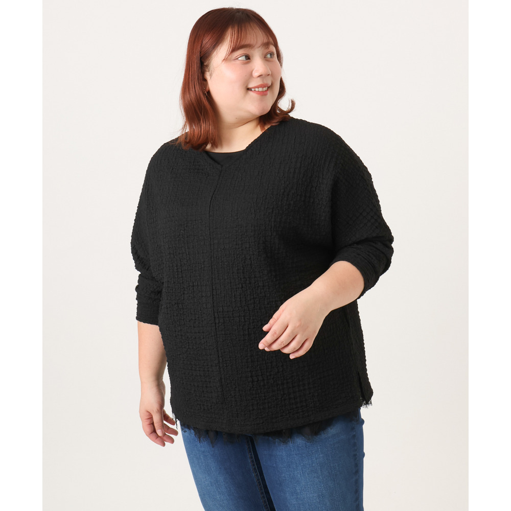 26年春新作【大きいサイズ】リップルジャージー2WAYカットソー