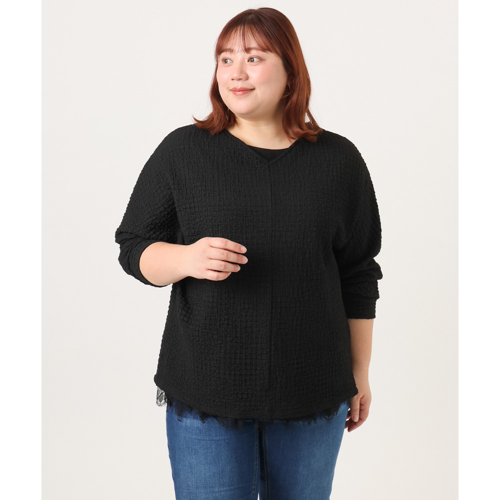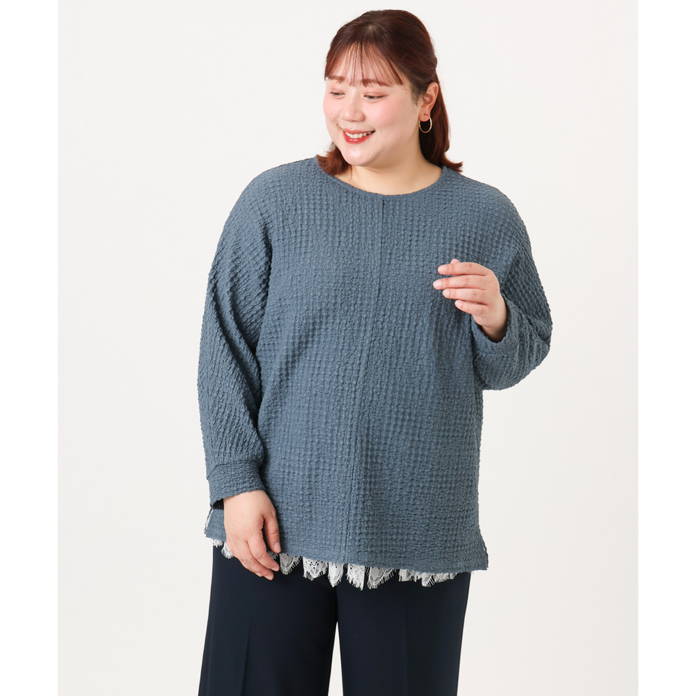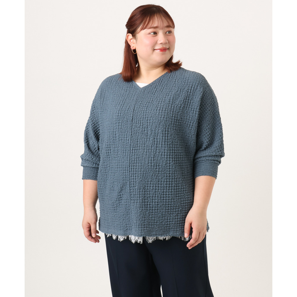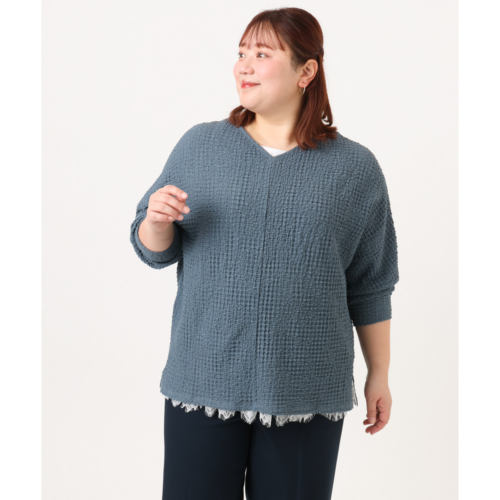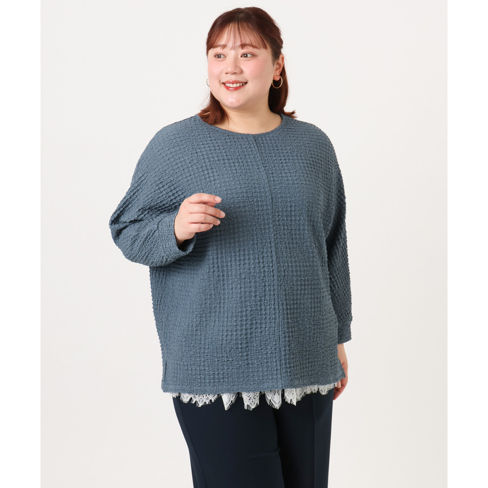 26年春新作【大きいサイズ】リップルジャージー2WAYカットソー