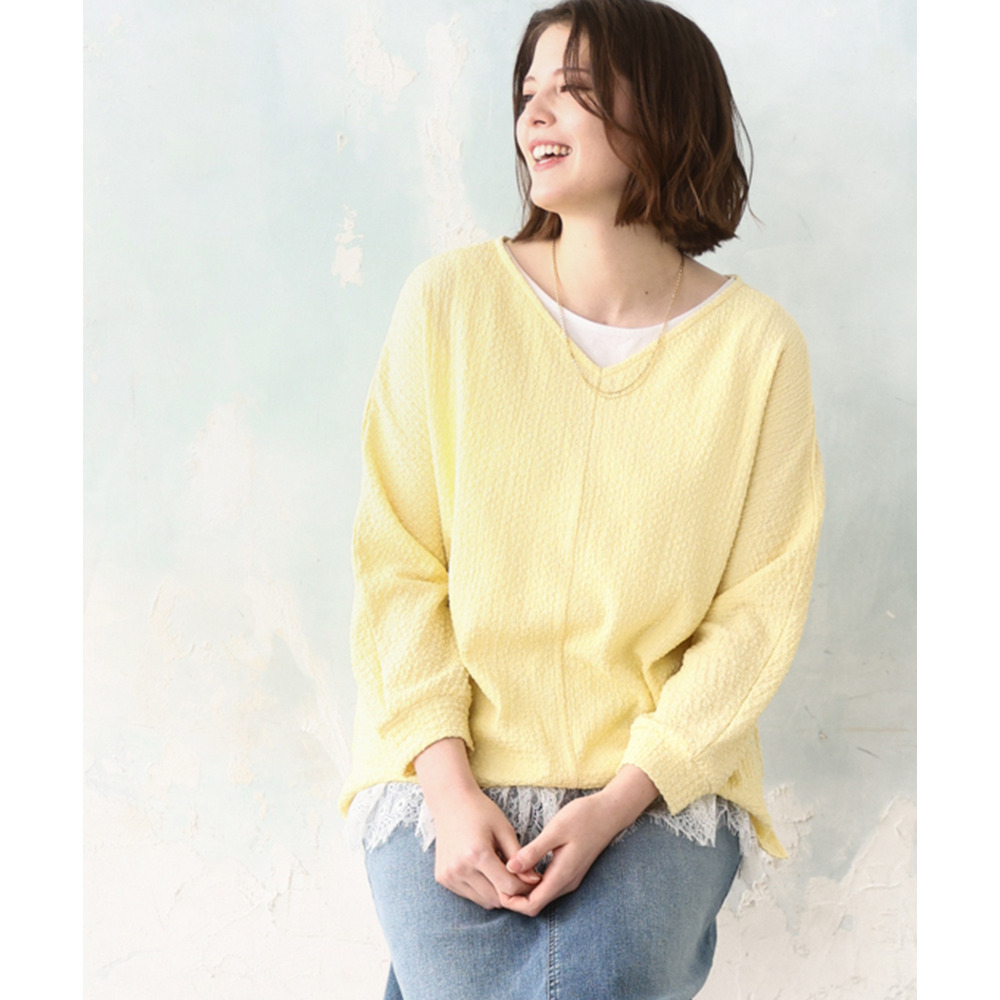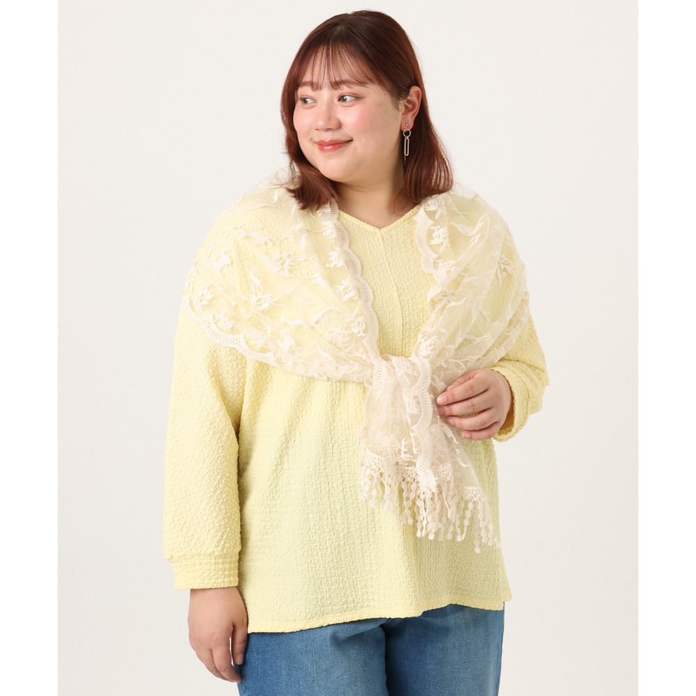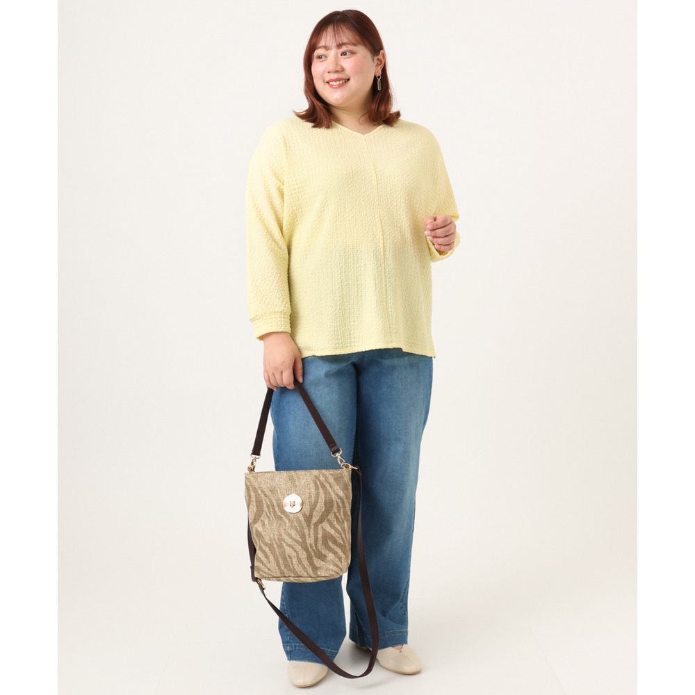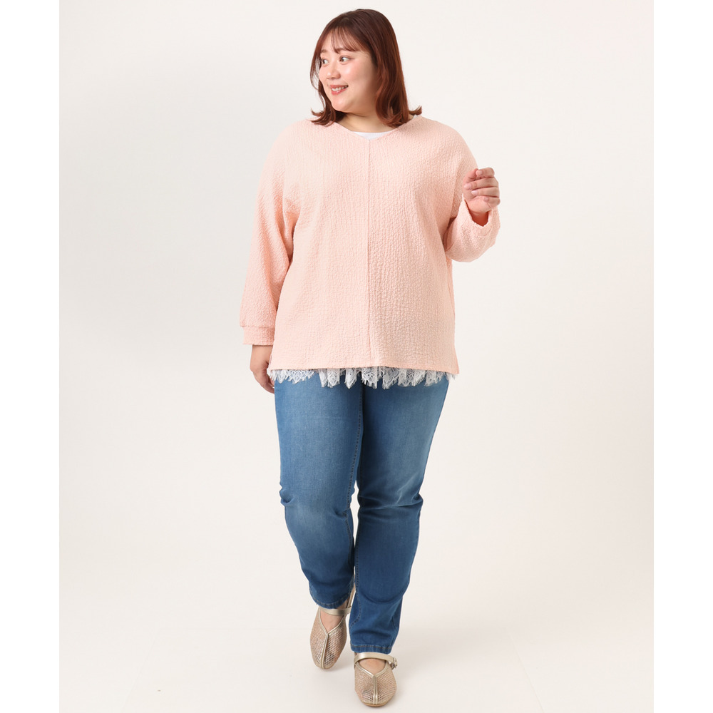 26年春新作【大きいサイズ】リップルジャージー2WAYカットソー