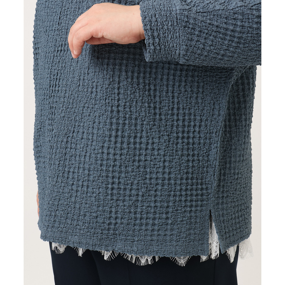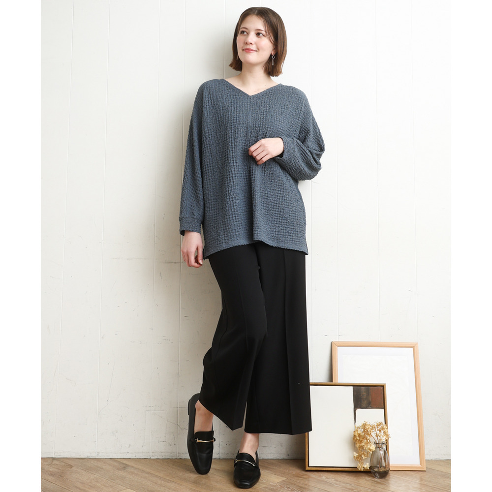 ストレッチ糸を裏側にシャーリングしたリップルジャージー風の生地を使用しています。