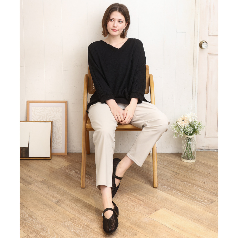 表面に細かなシボ感のある生地を使用し、さらっとした肌触りで快適に着用いただけます。