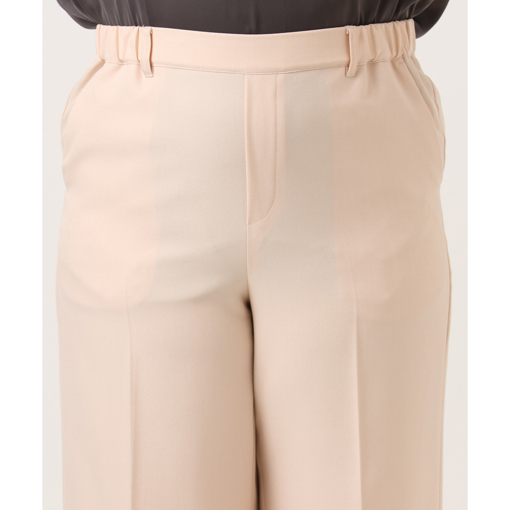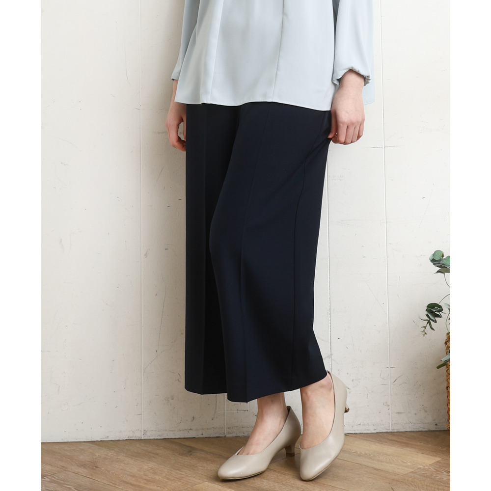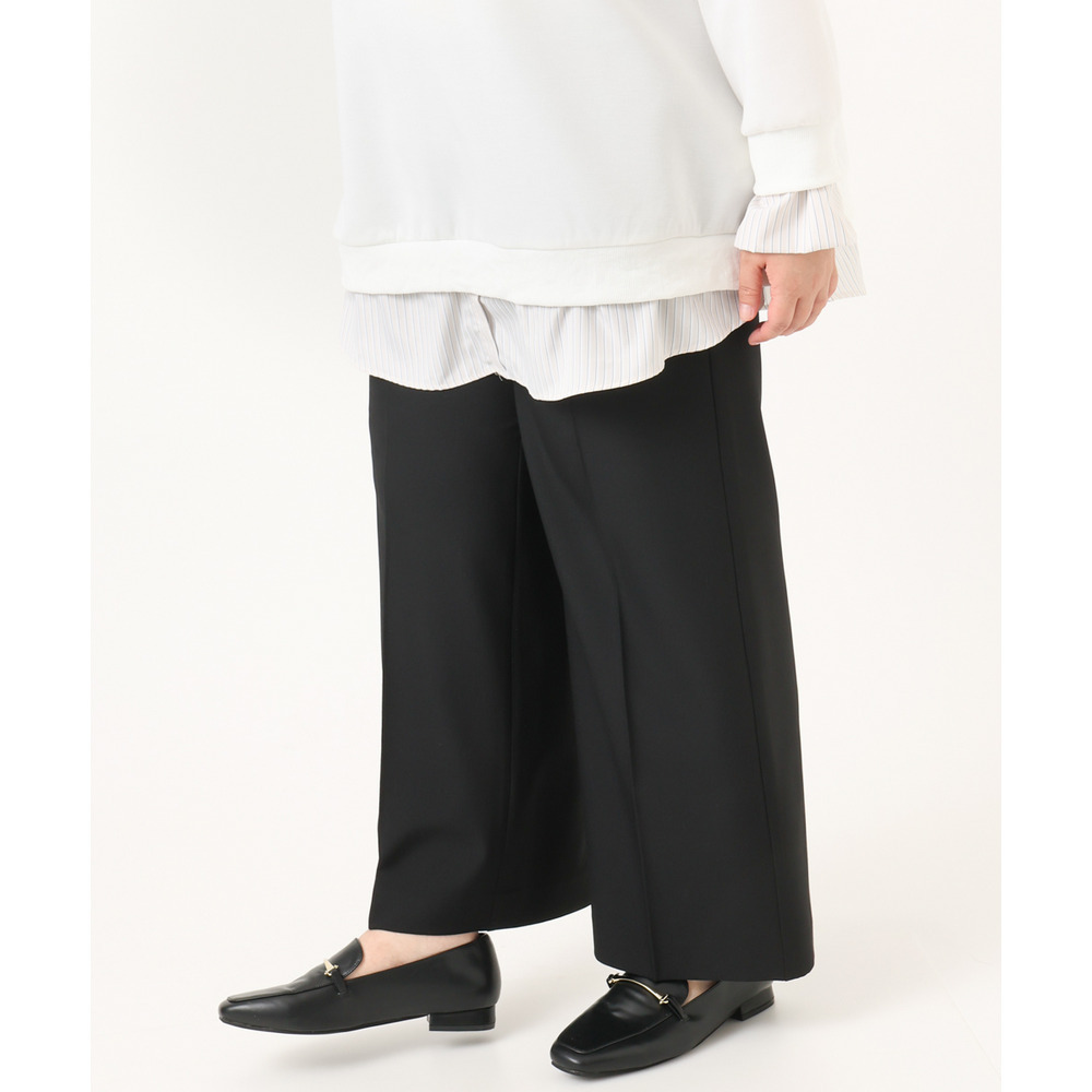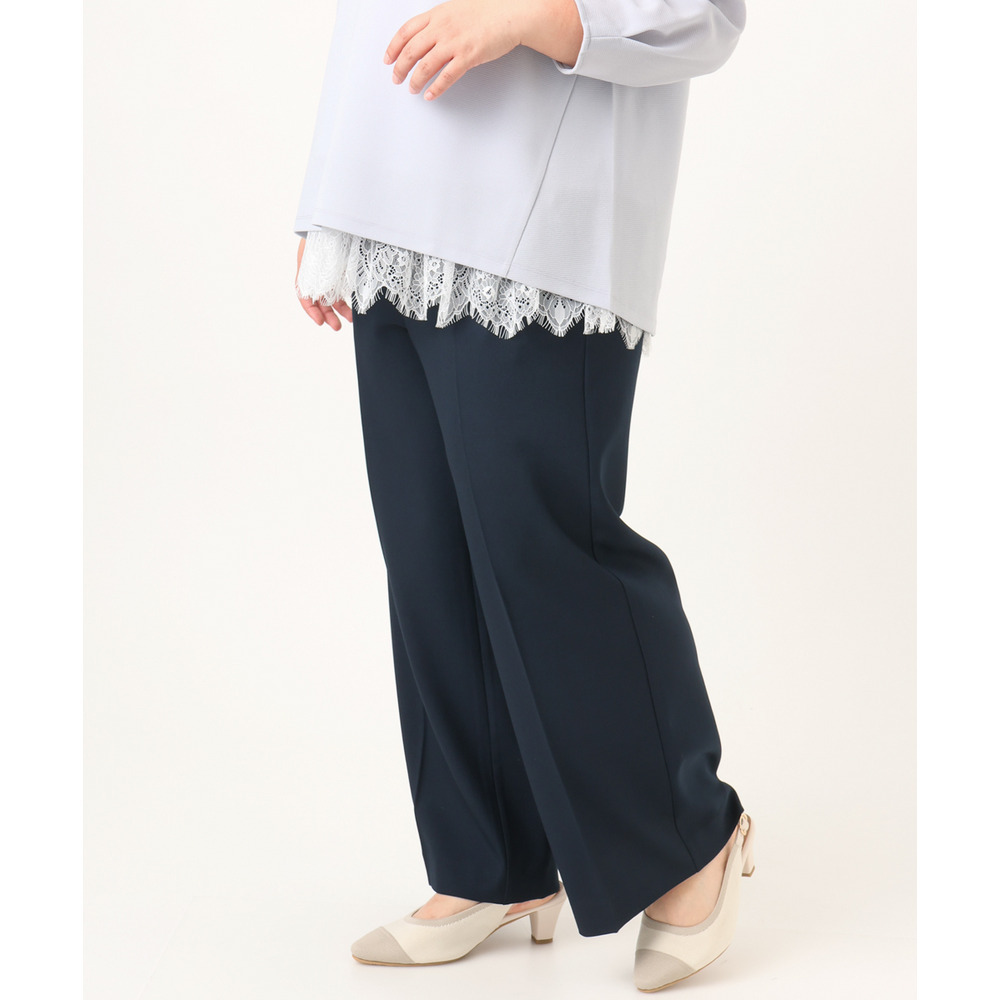 透けにくく、着心地の良いストレッチ入りのきれいめツイル生地を使用した、すっきり見えワイドパンツ。