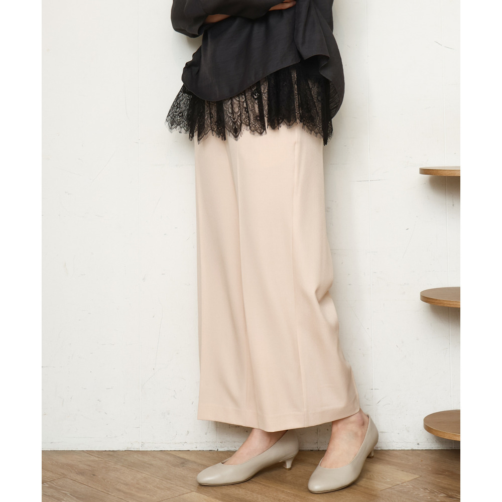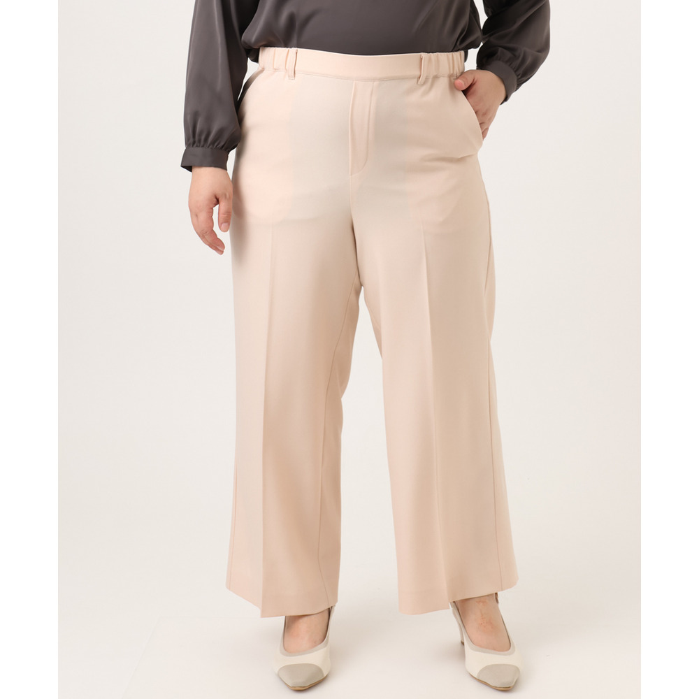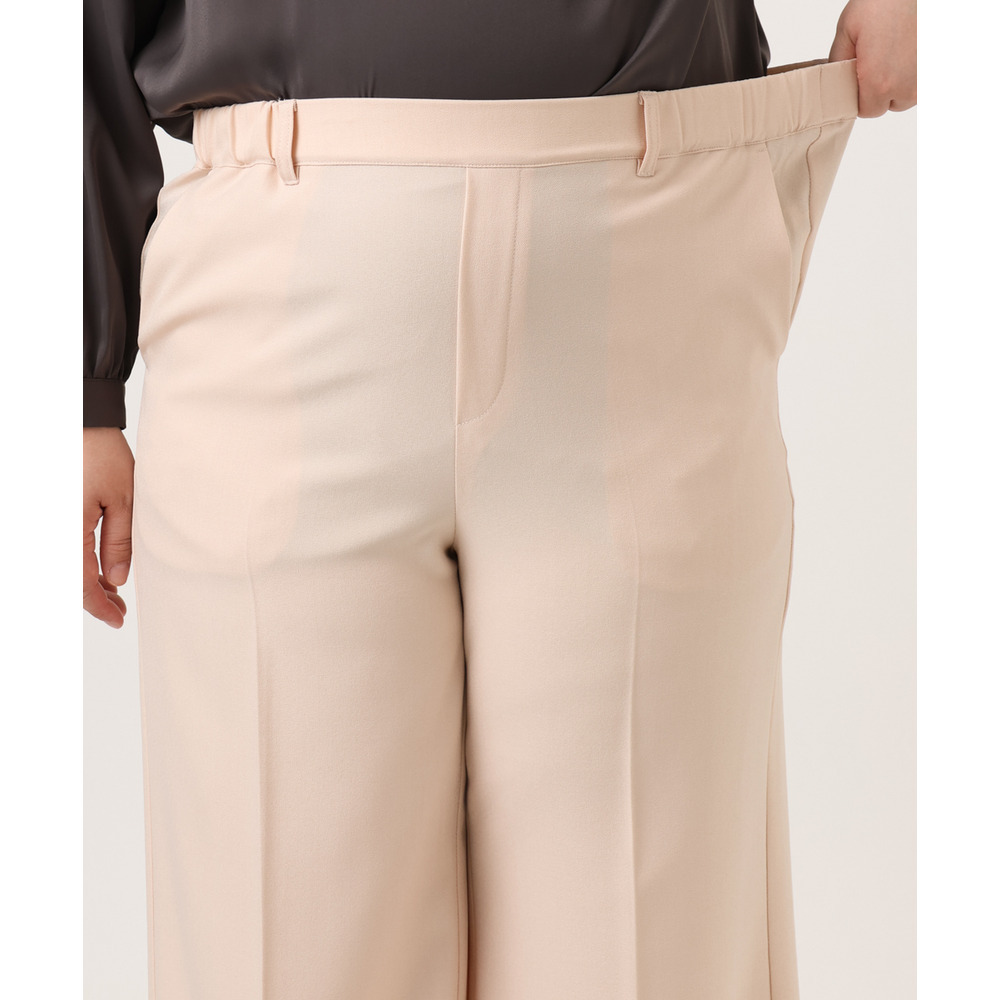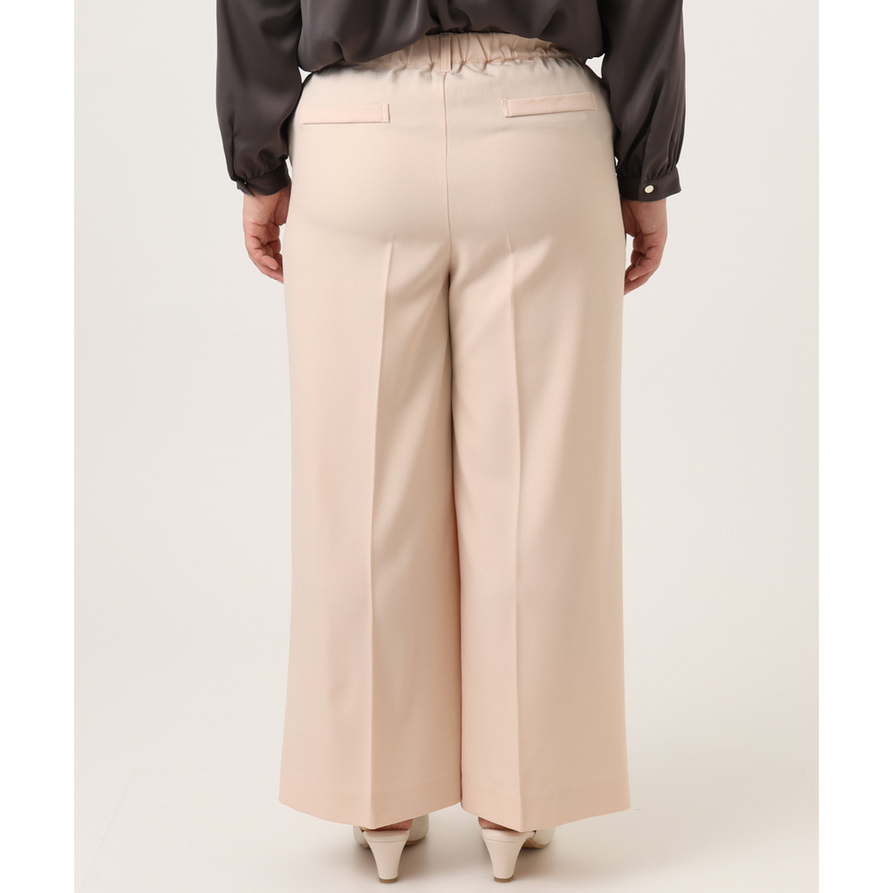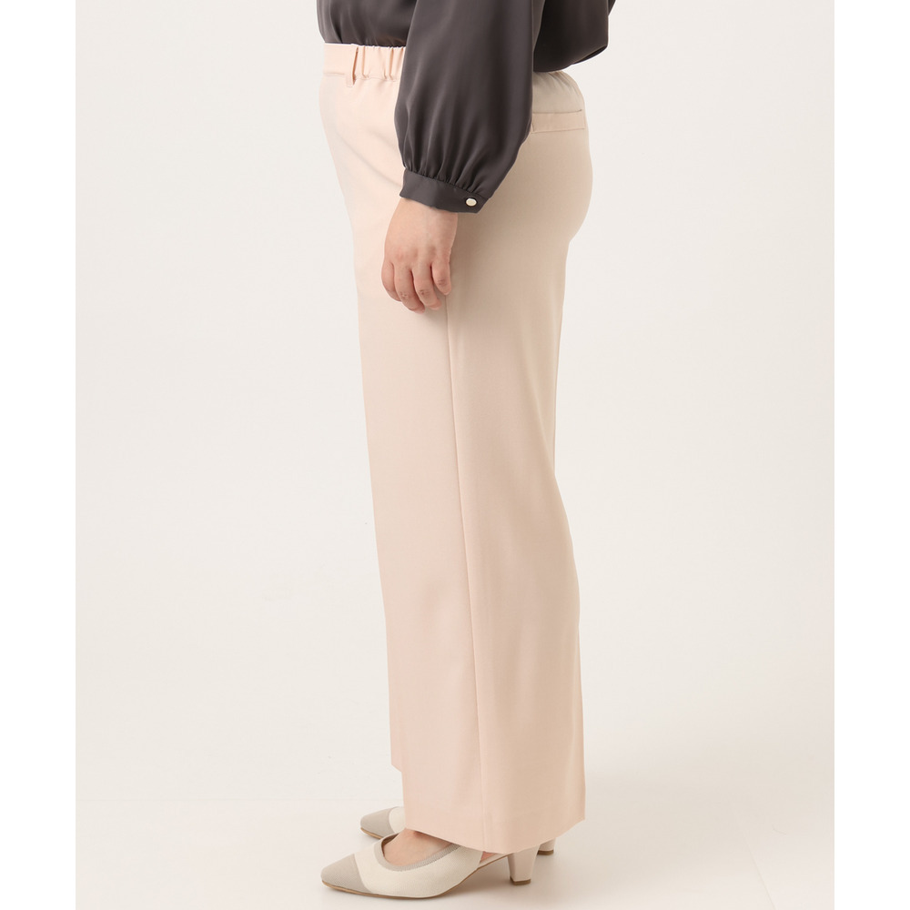 透けにくく、着心地の良いストレッチ入りのきれいめツイル生地を使用した、すっきり見えワイドパンツ。