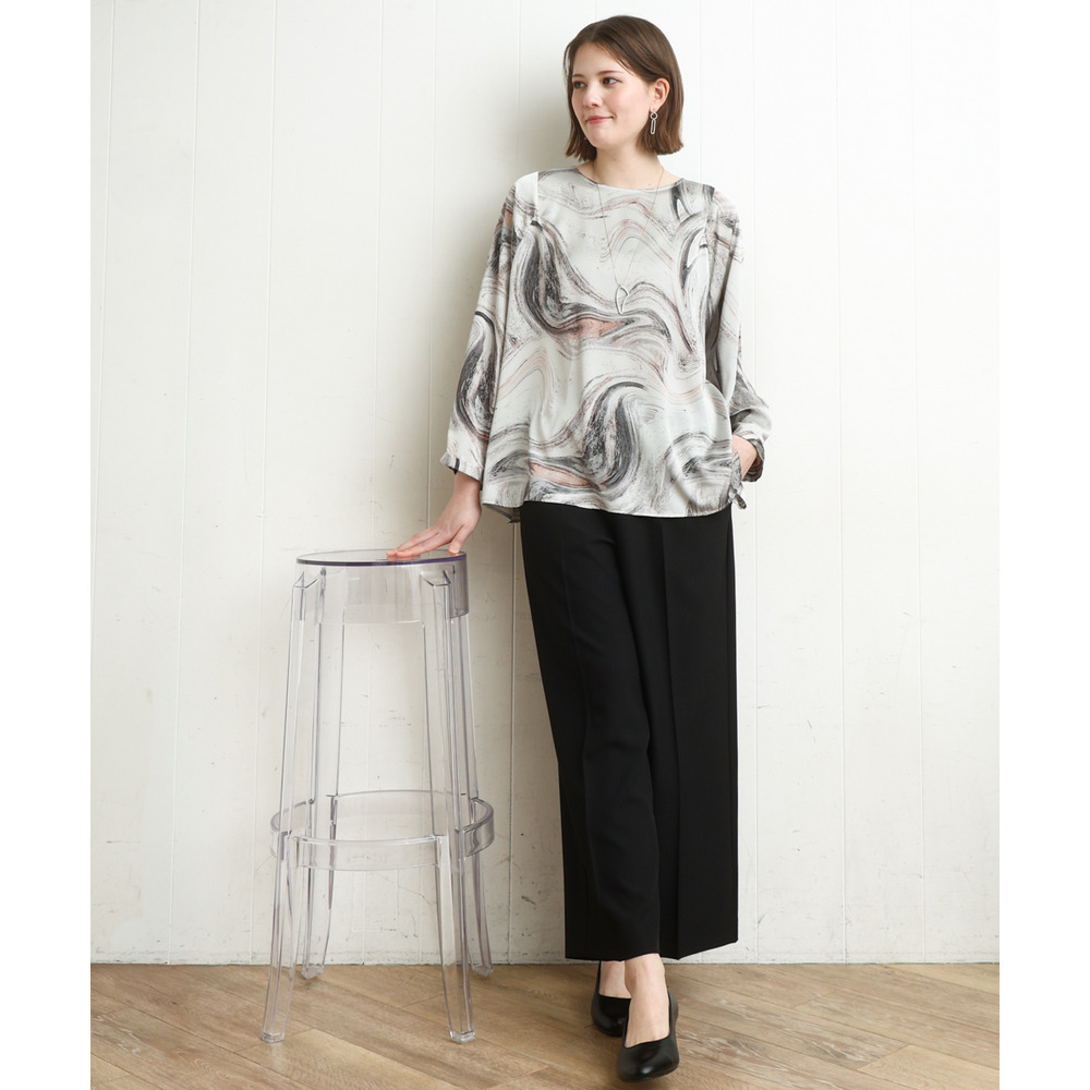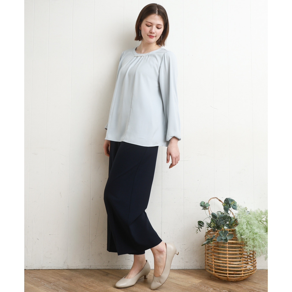 きれいめブラウスを合わせたお仕事スタイルがおすすめ。