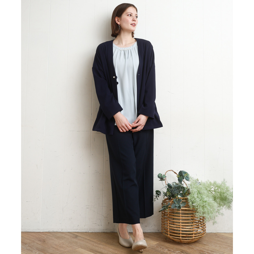 センタープレス入りで、ワイドシルエットでも縦ラインを強調し、すっきりとした印象に仕上げました。