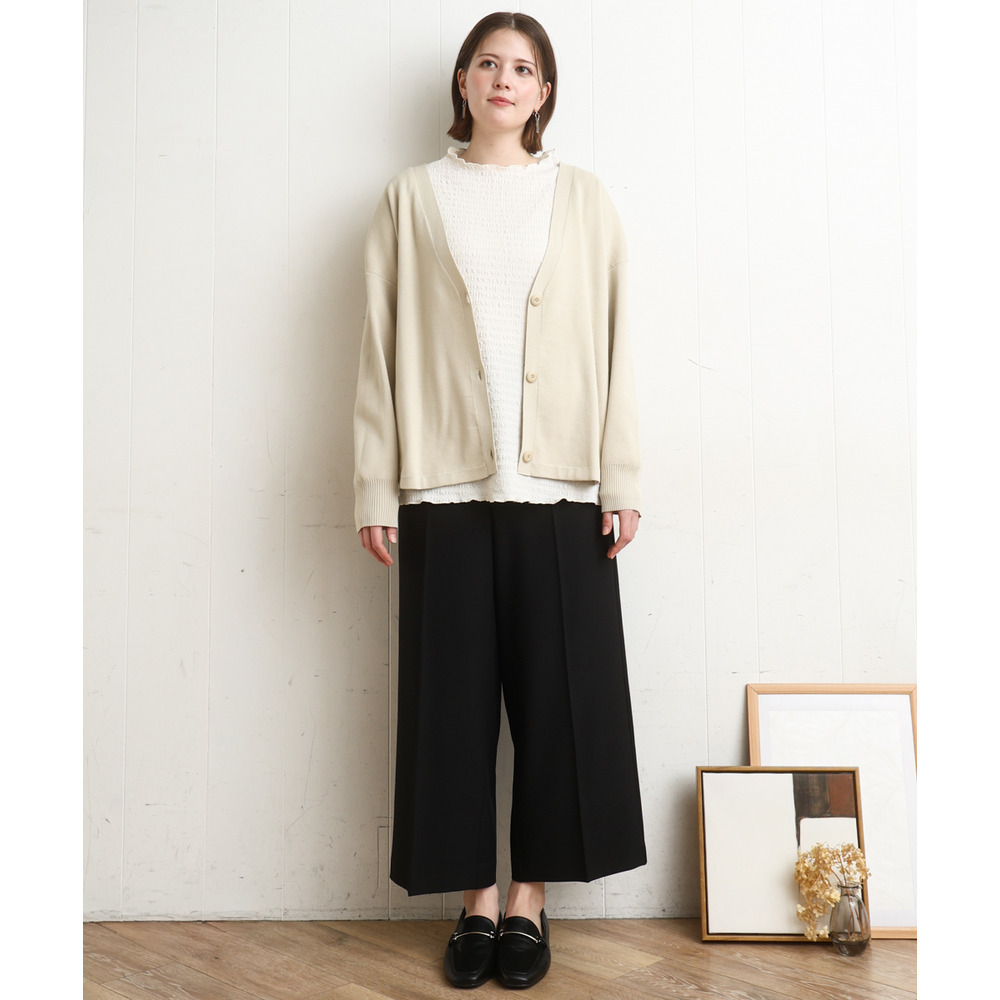 程よいワイドシルエットなので少し着丈長めのトップスを合わせてもすっきり着られます。