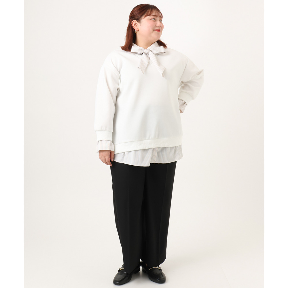 前ウエストはフラットデザインのため、トップスをタックインしてもきれいに着こなせます。