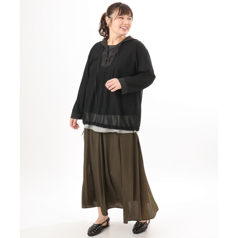 腰回りはスッキリしたシルエットで控えめな広がりが大人上品。