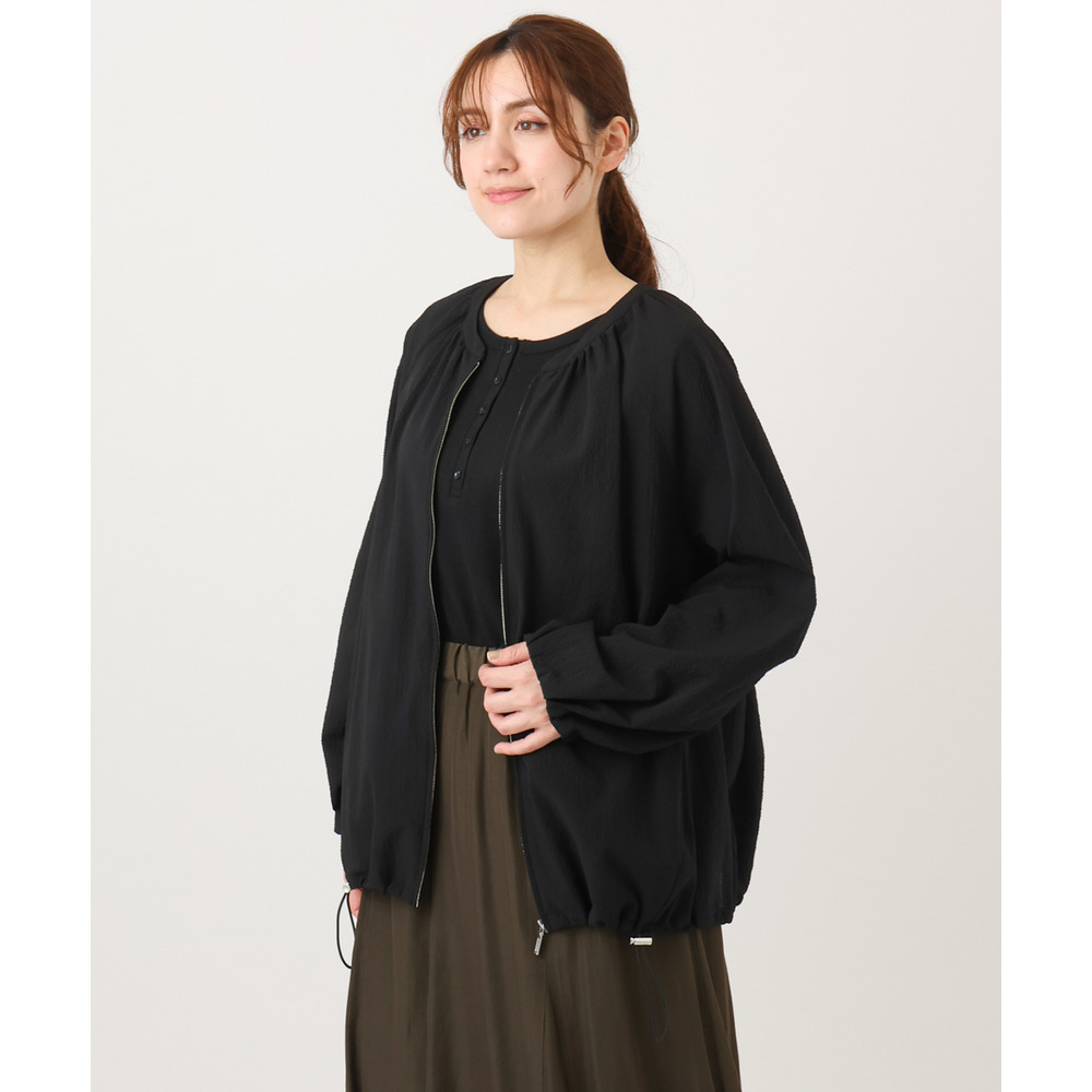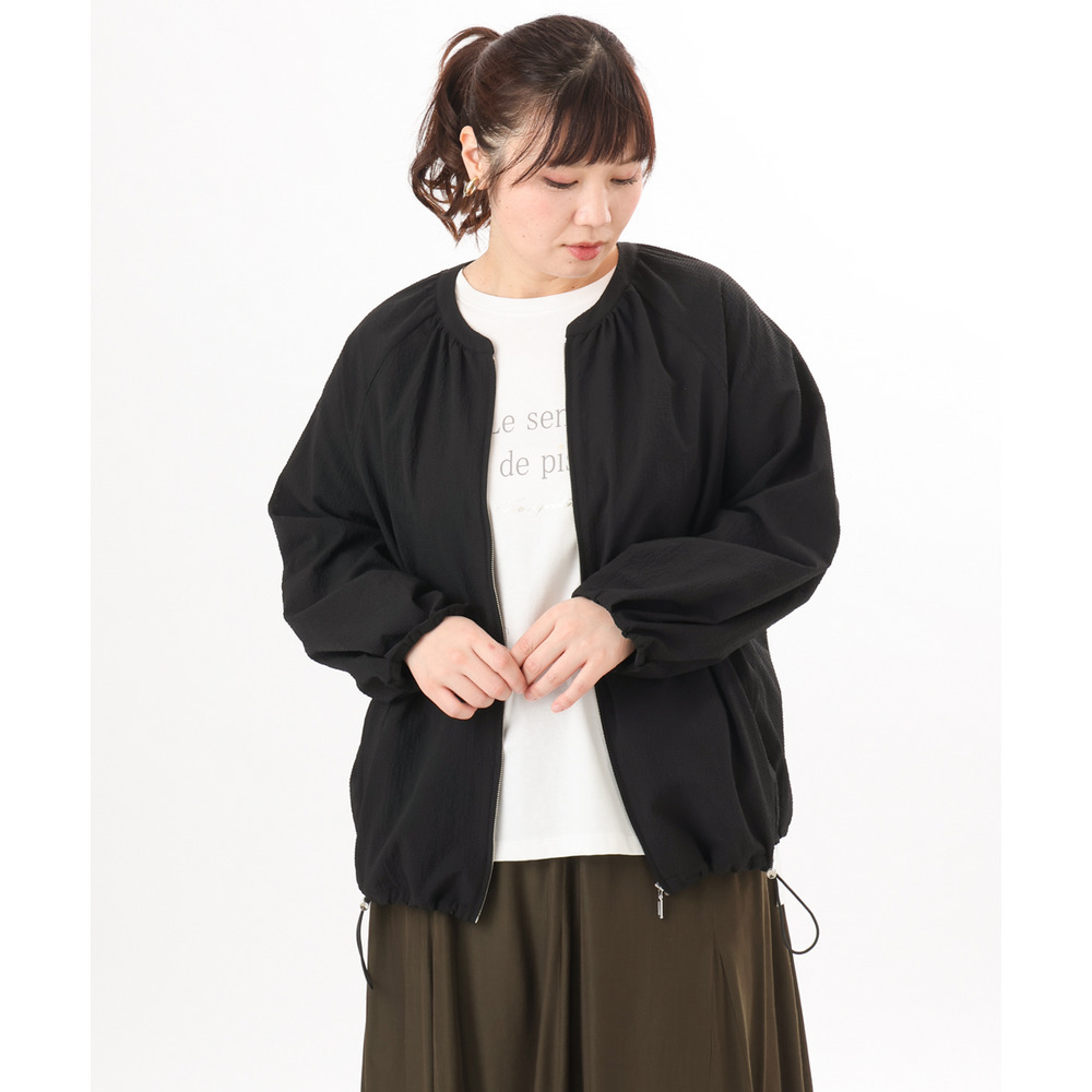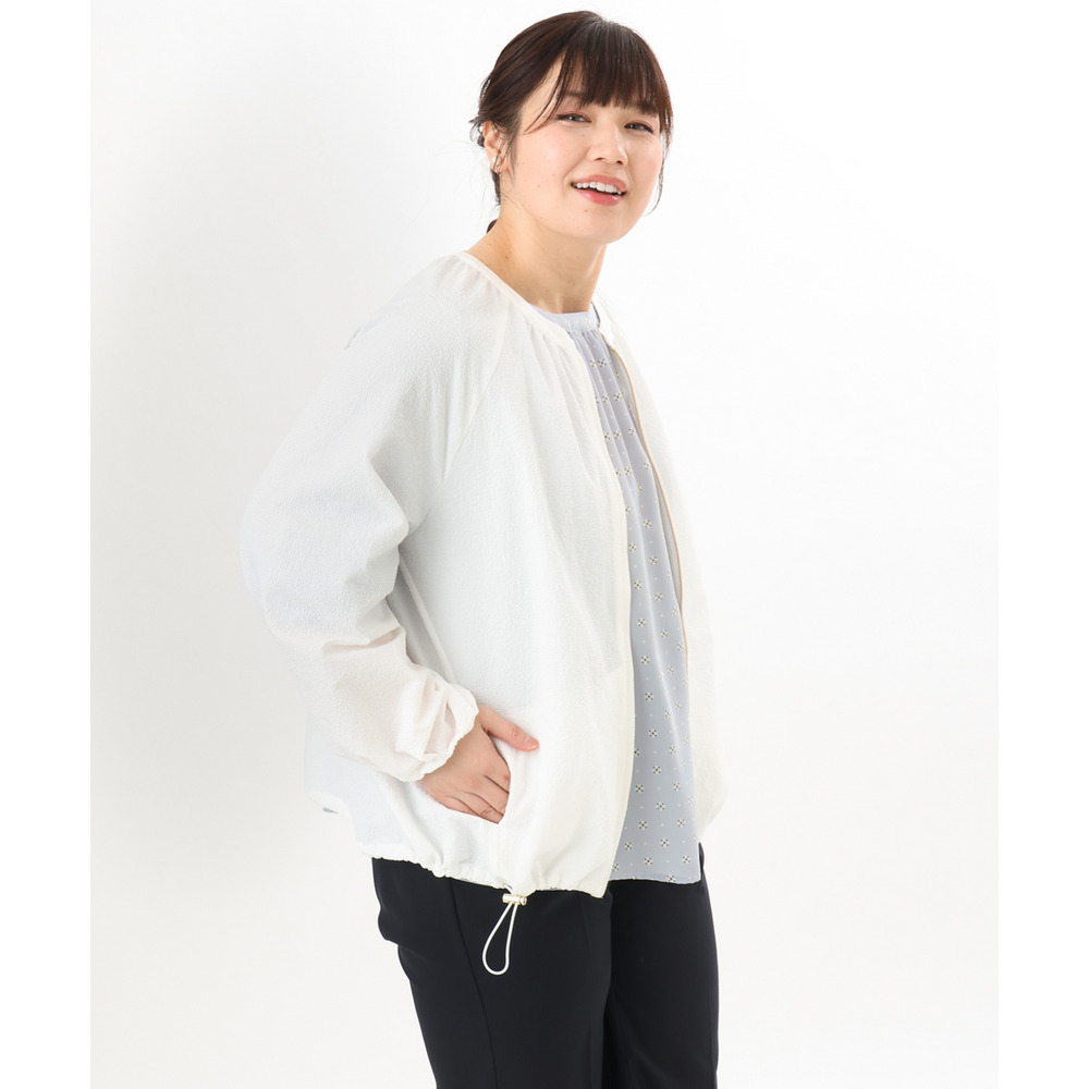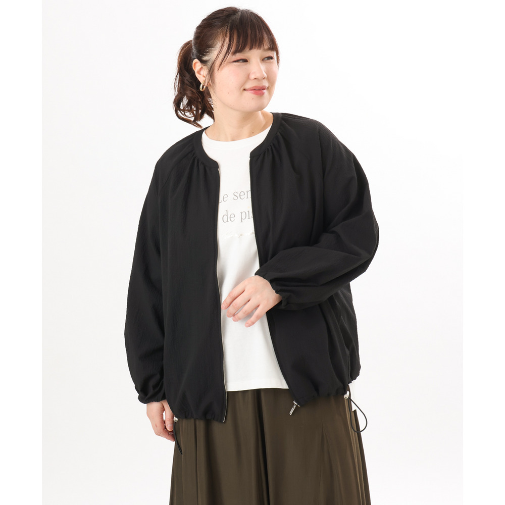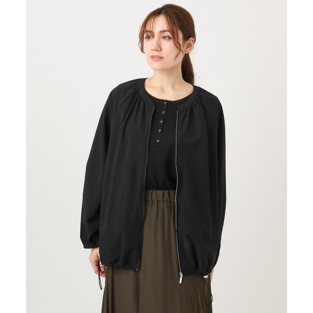さらっとしたタッチが心地よいノーカラーブルゾン。