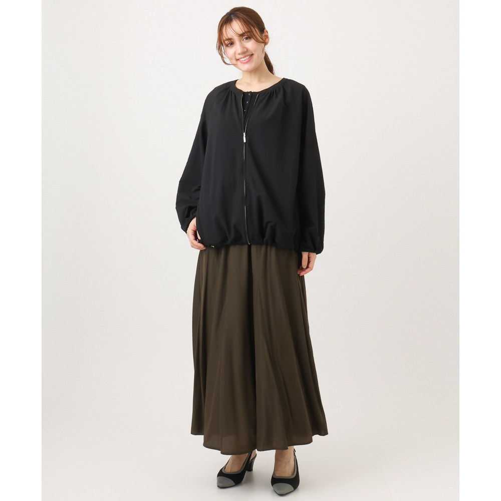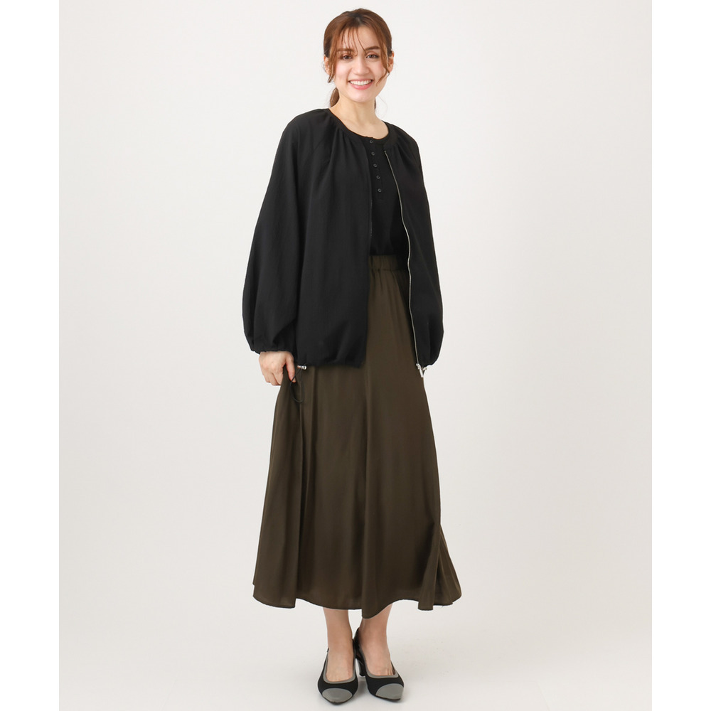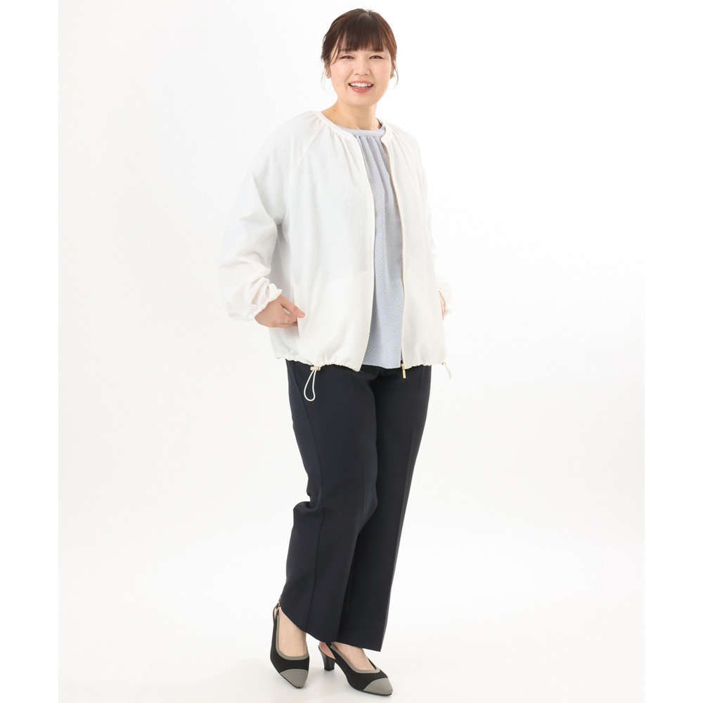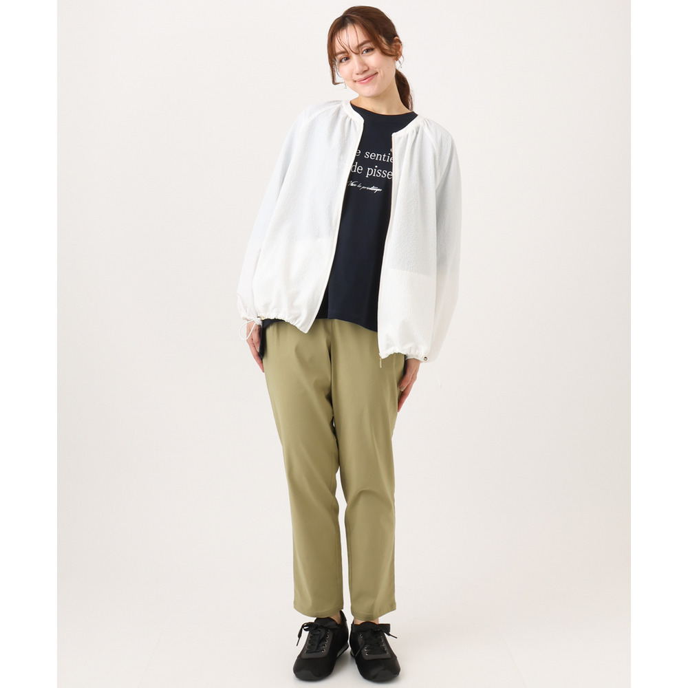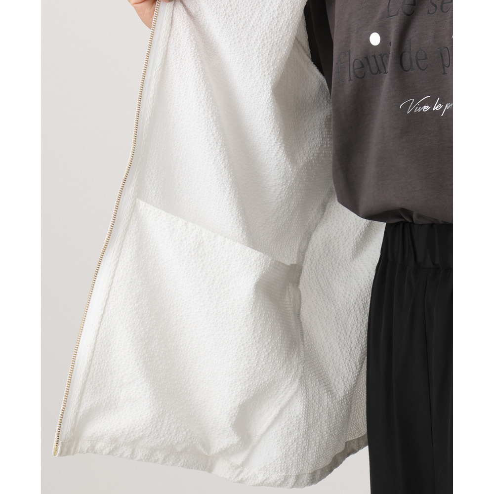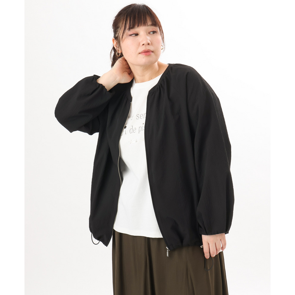 さらっとしたタッチが心地よいノーカラーブルゾン。