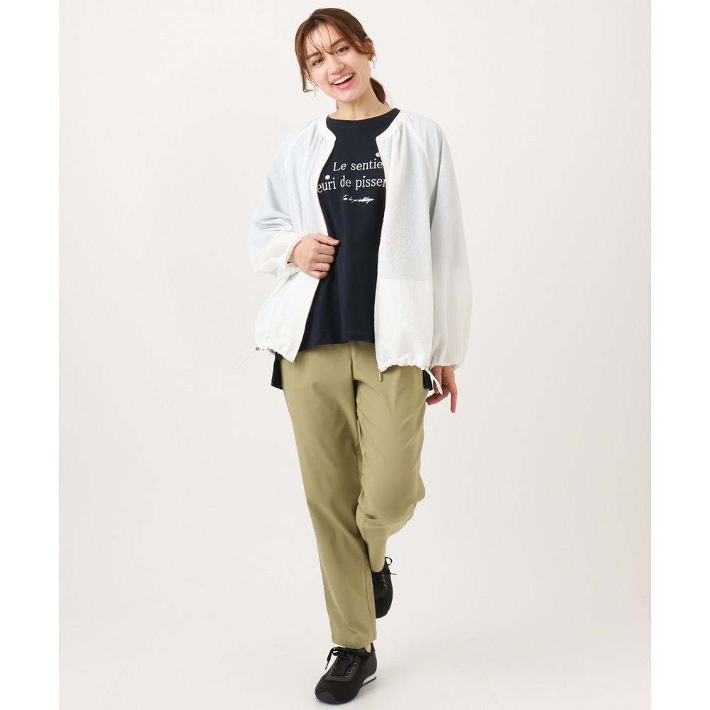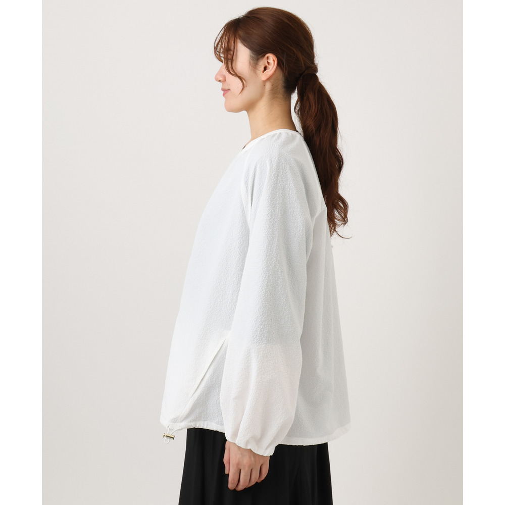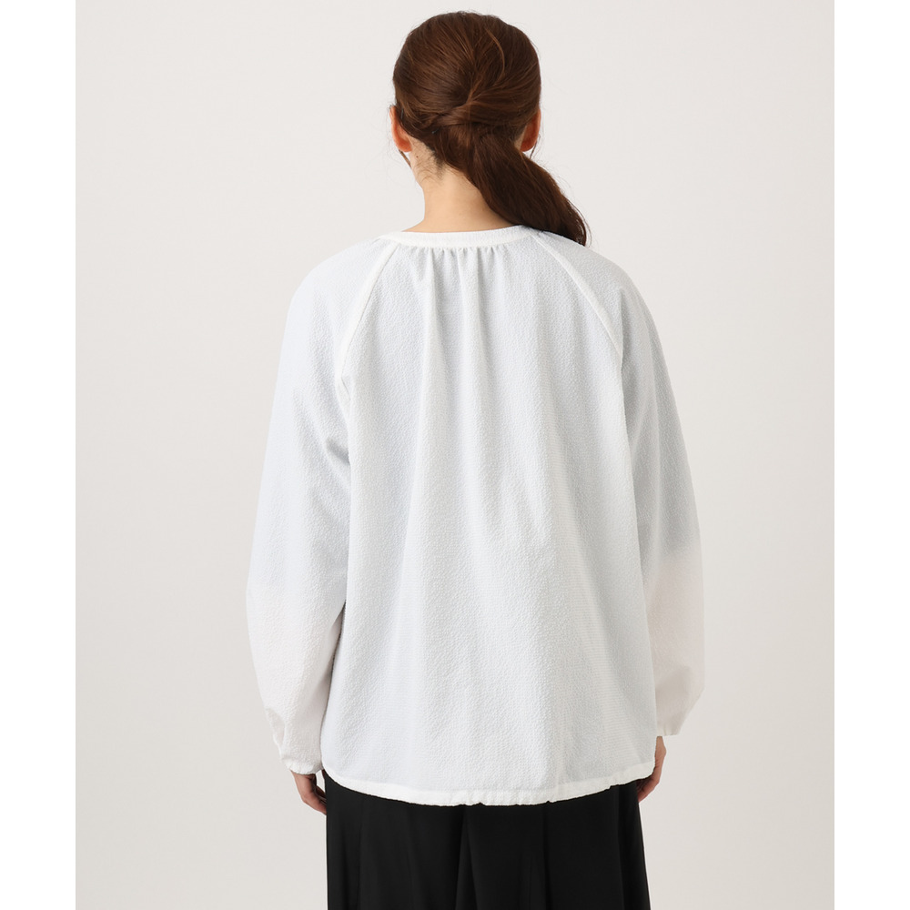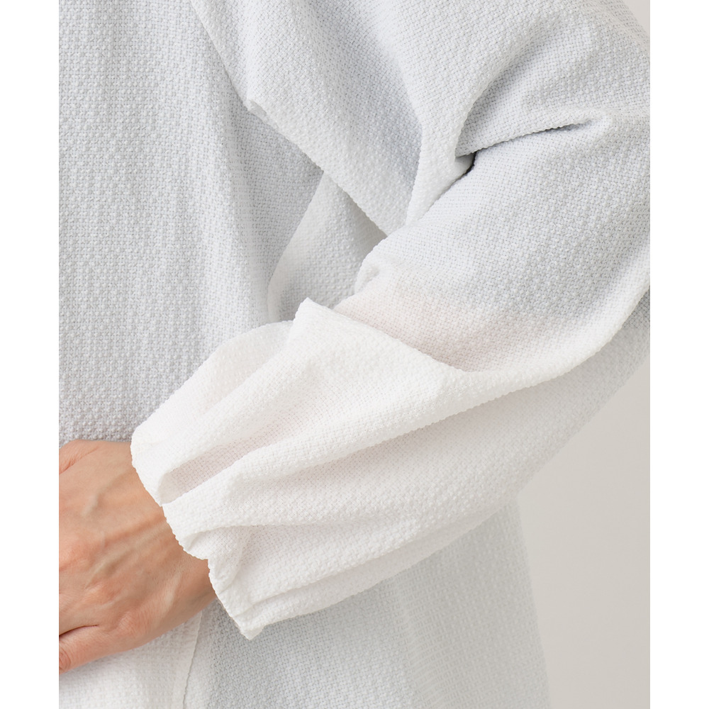 柔らかくドライタッチなサッカー調のシボ感のある布帛素材を使用しています。