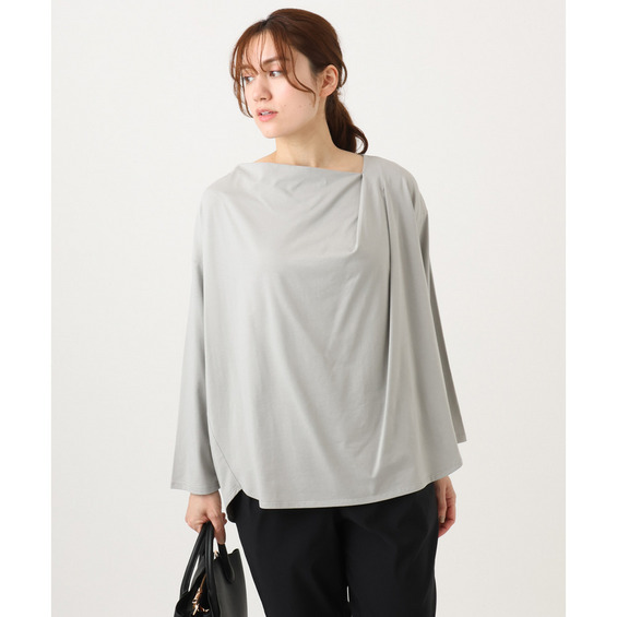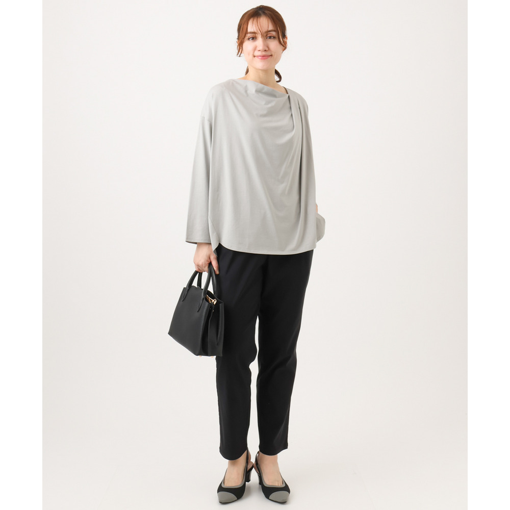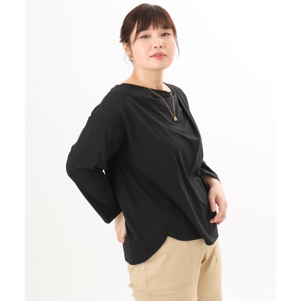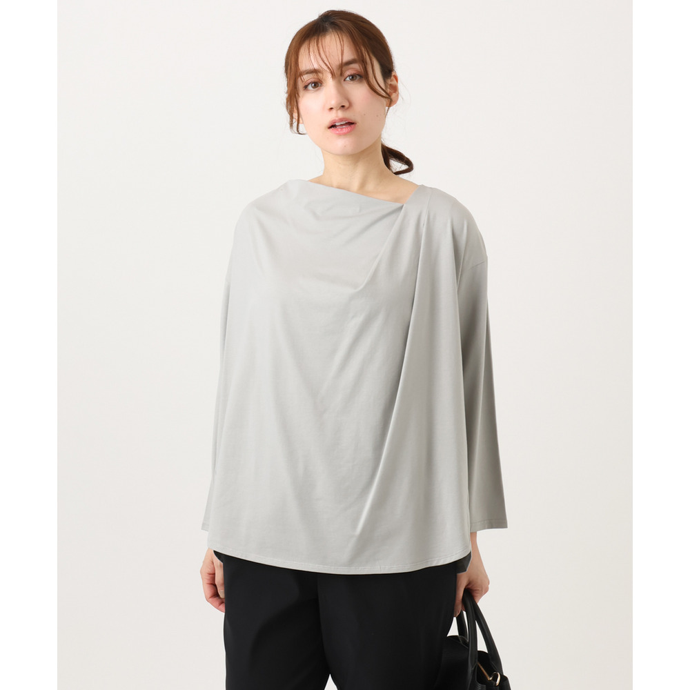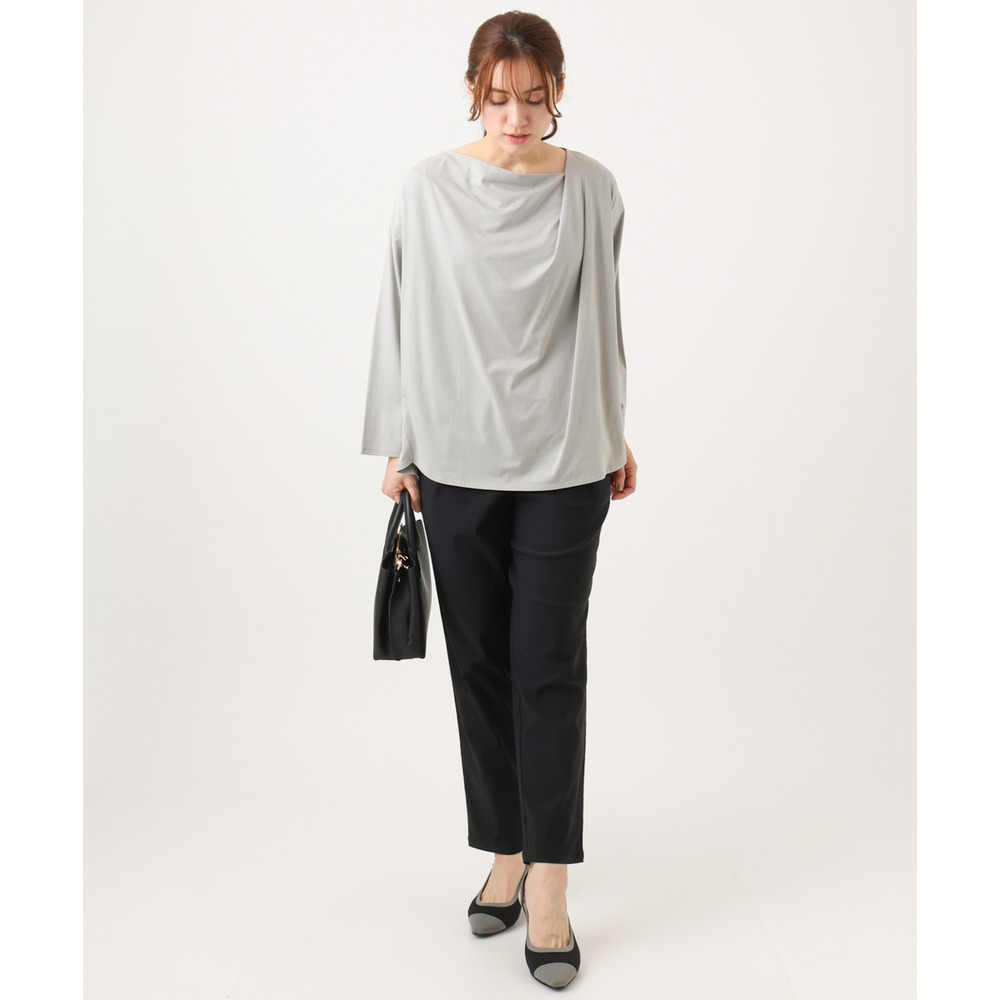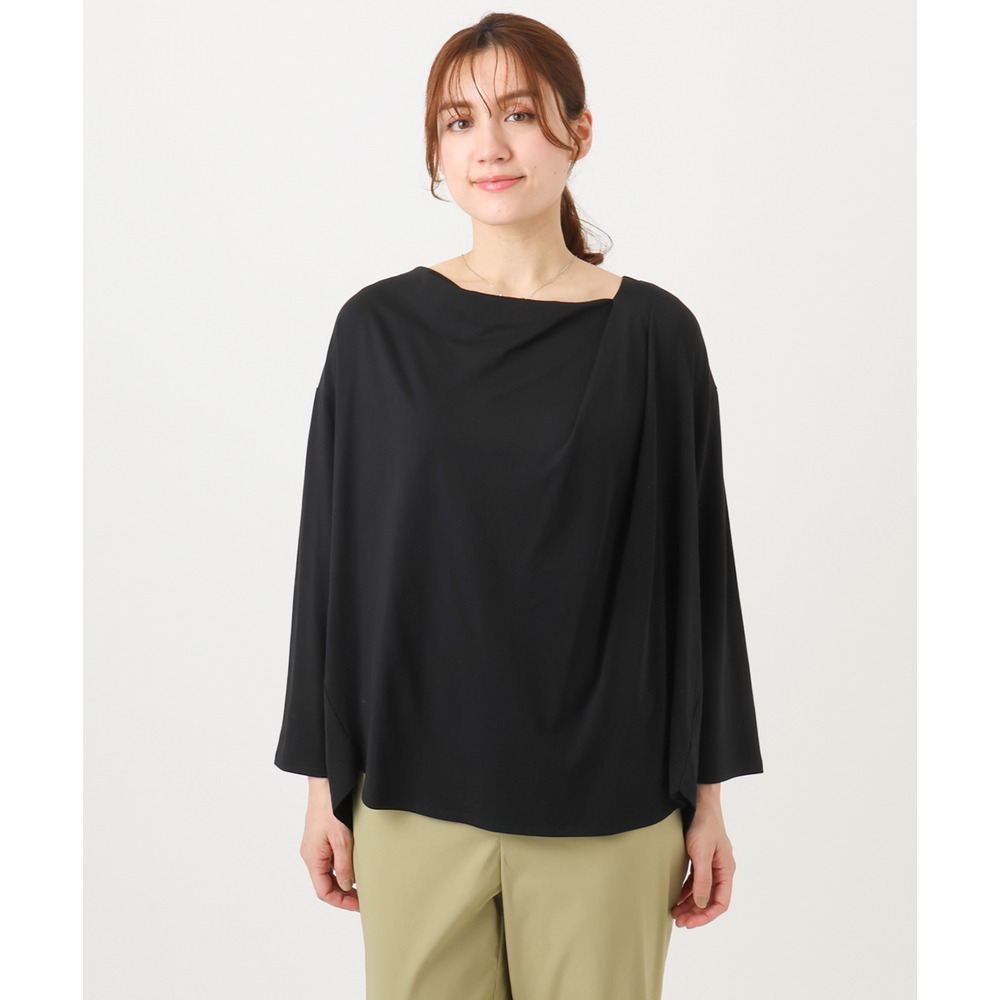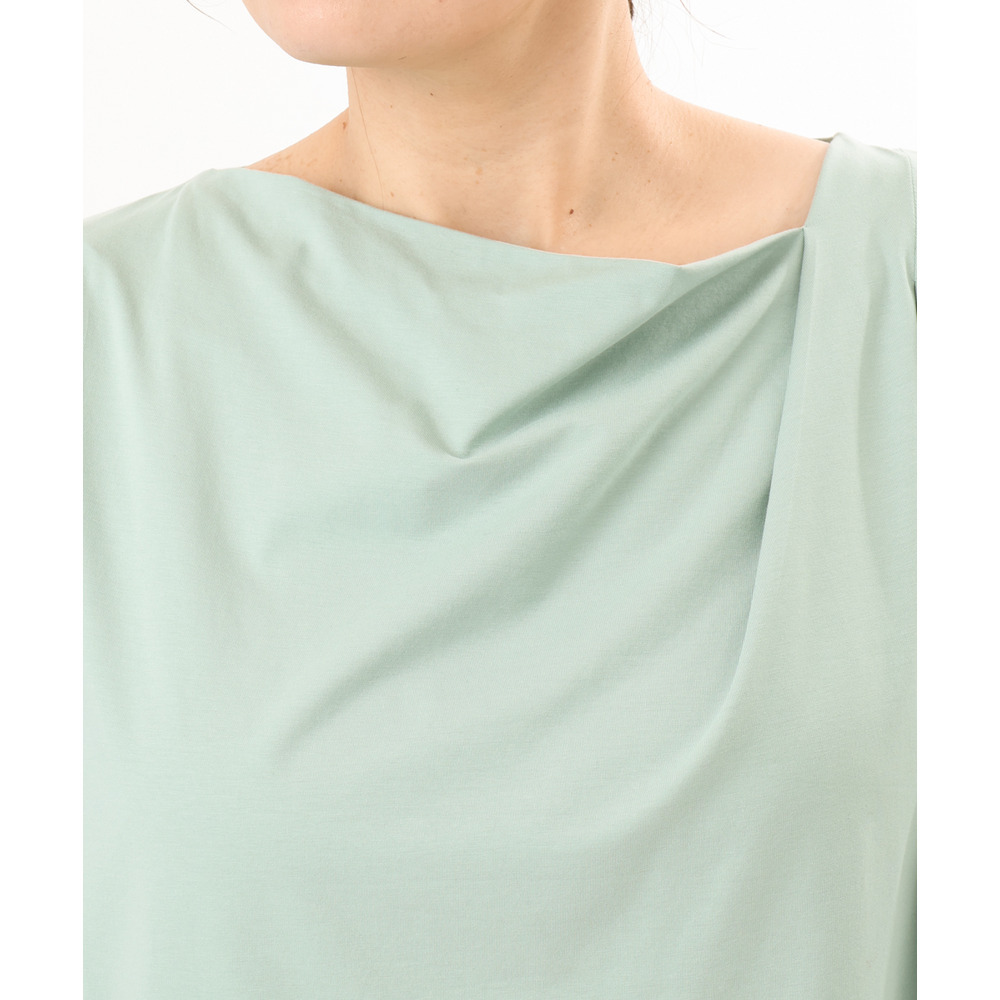 首元に自然な落ち感を生むドレープデザインで、顔周りを華やかに見せつつ上品で女性らしい印象に。