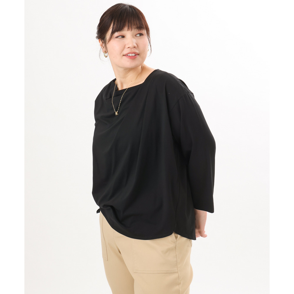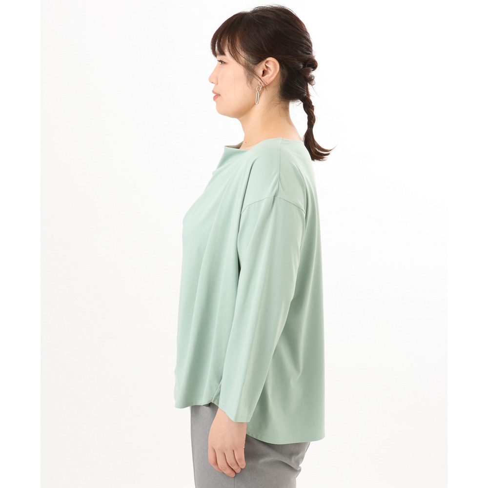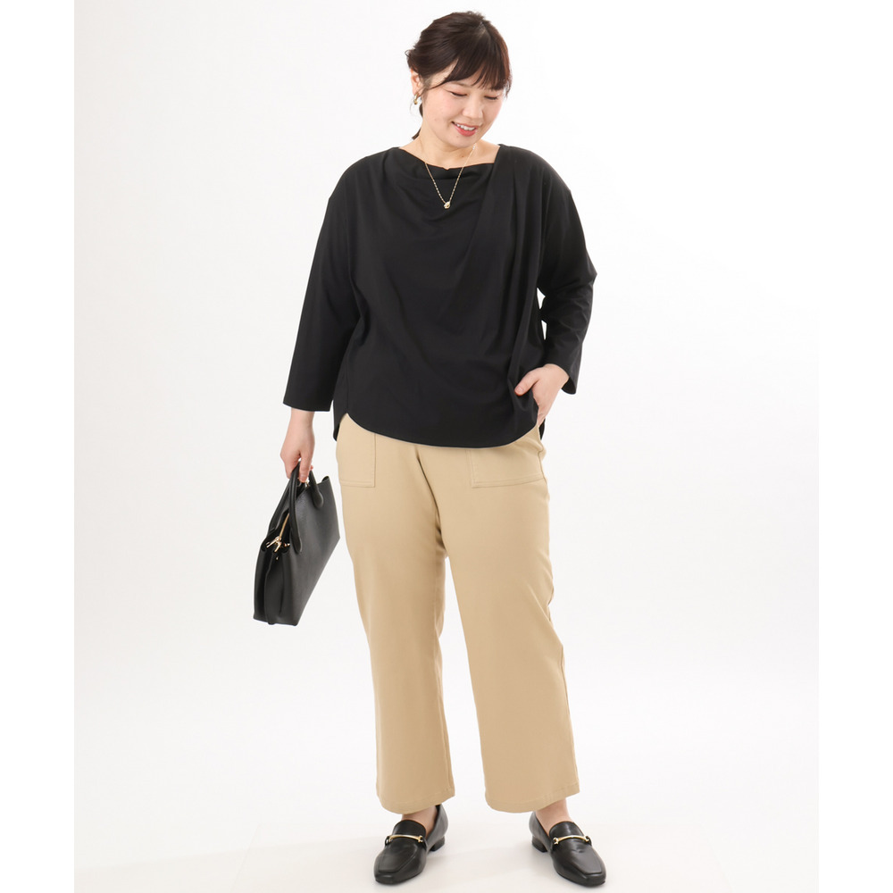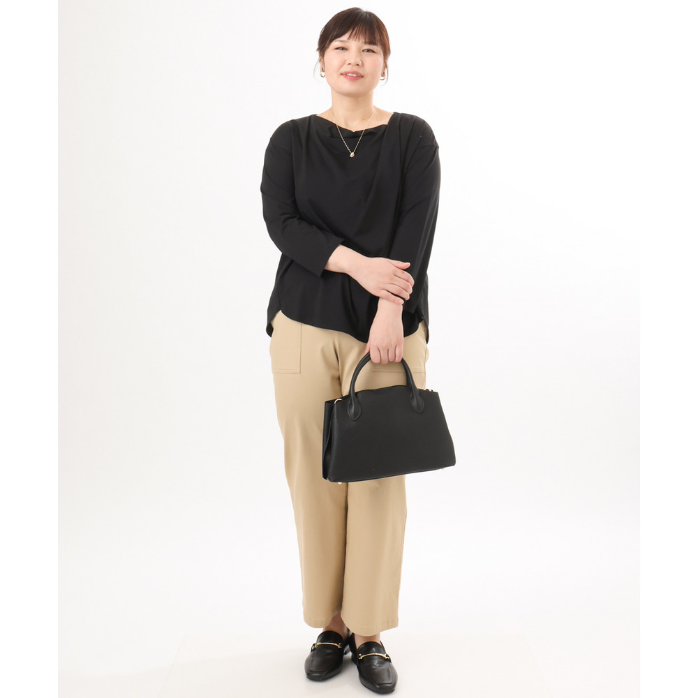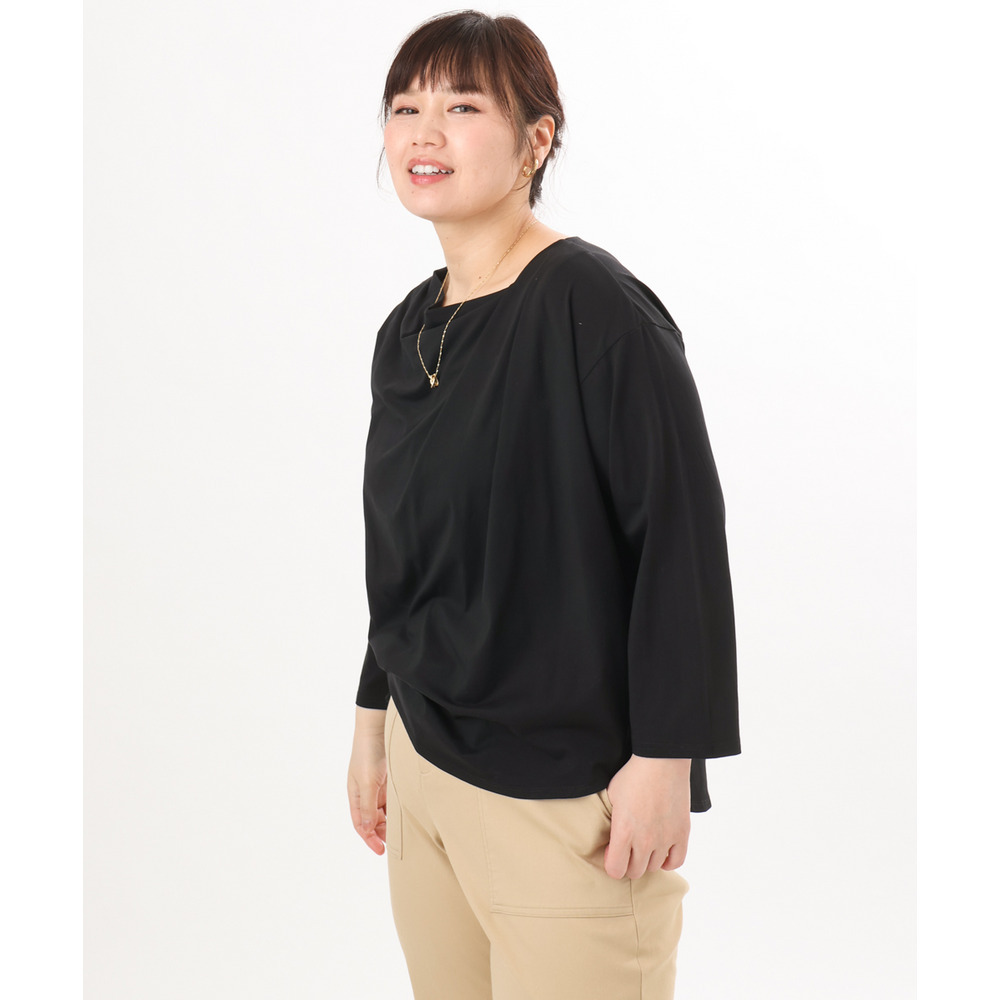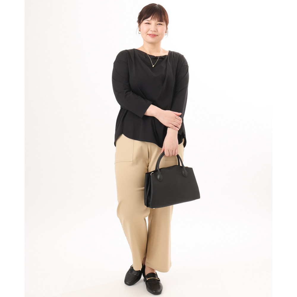首元に自然な落ち感を生むドレープデザインで、顔周りを華やかに見せつつ上品で女性らしい印象に。