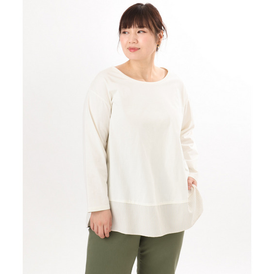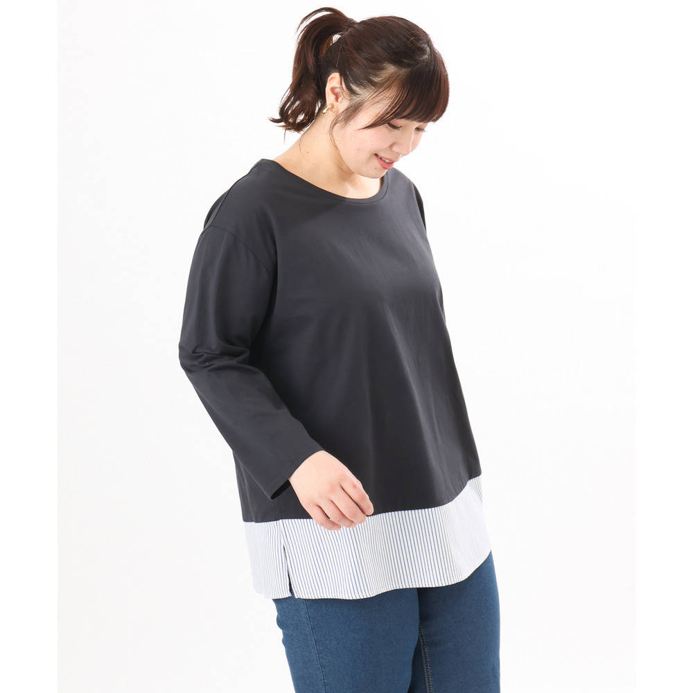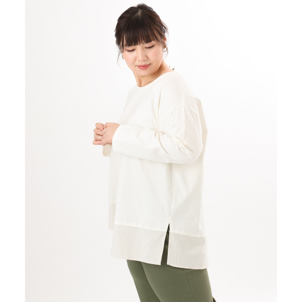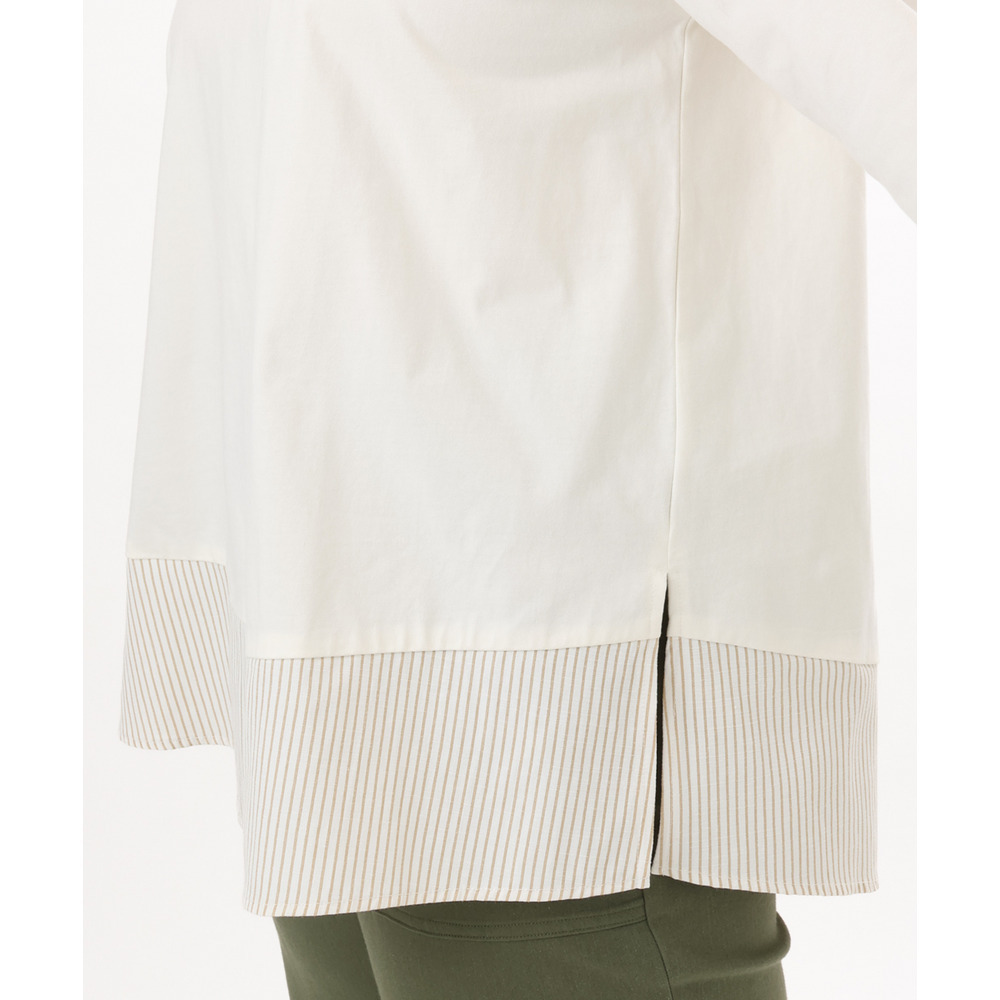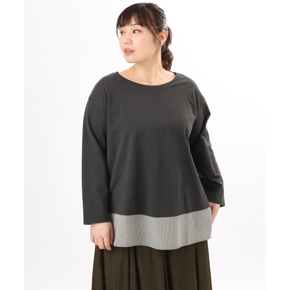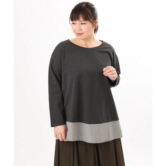 裾にストライプ生地を切り替えたデザインカットソー。