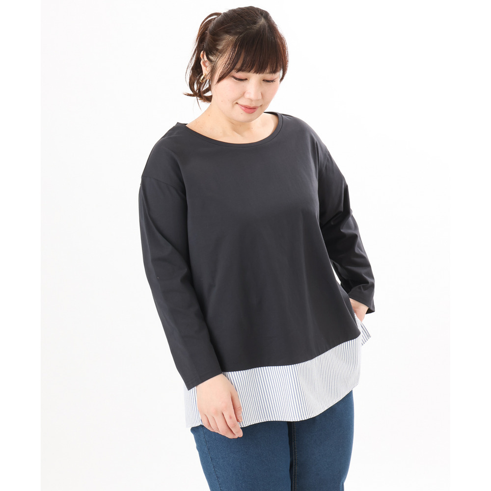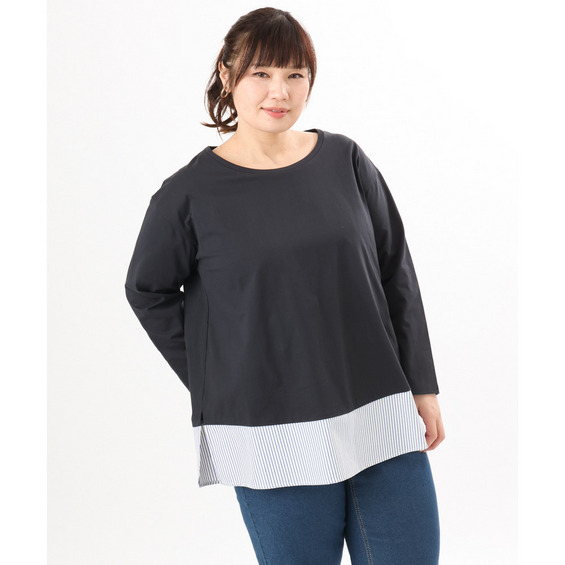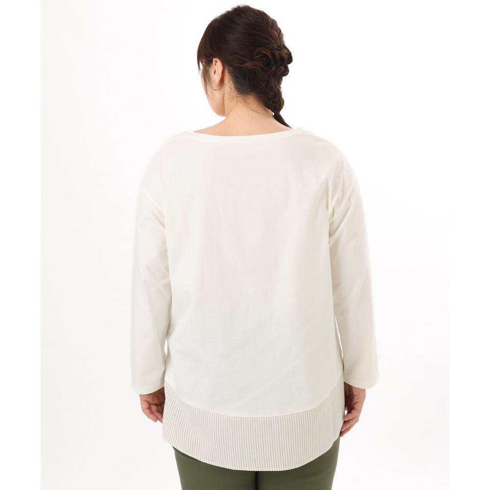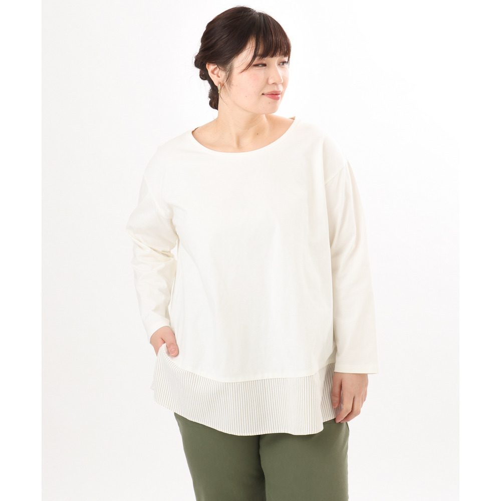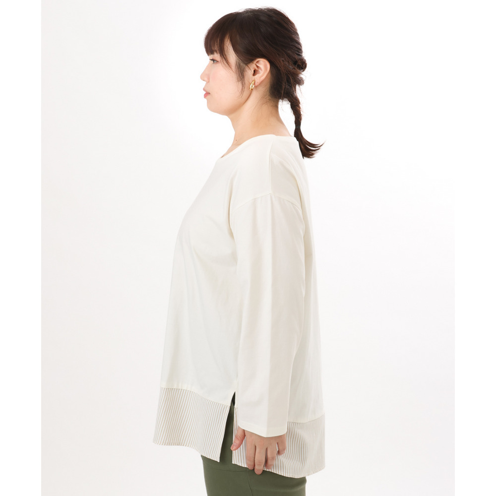 裾にストライプ生地を切り替えたデザインカットソー。