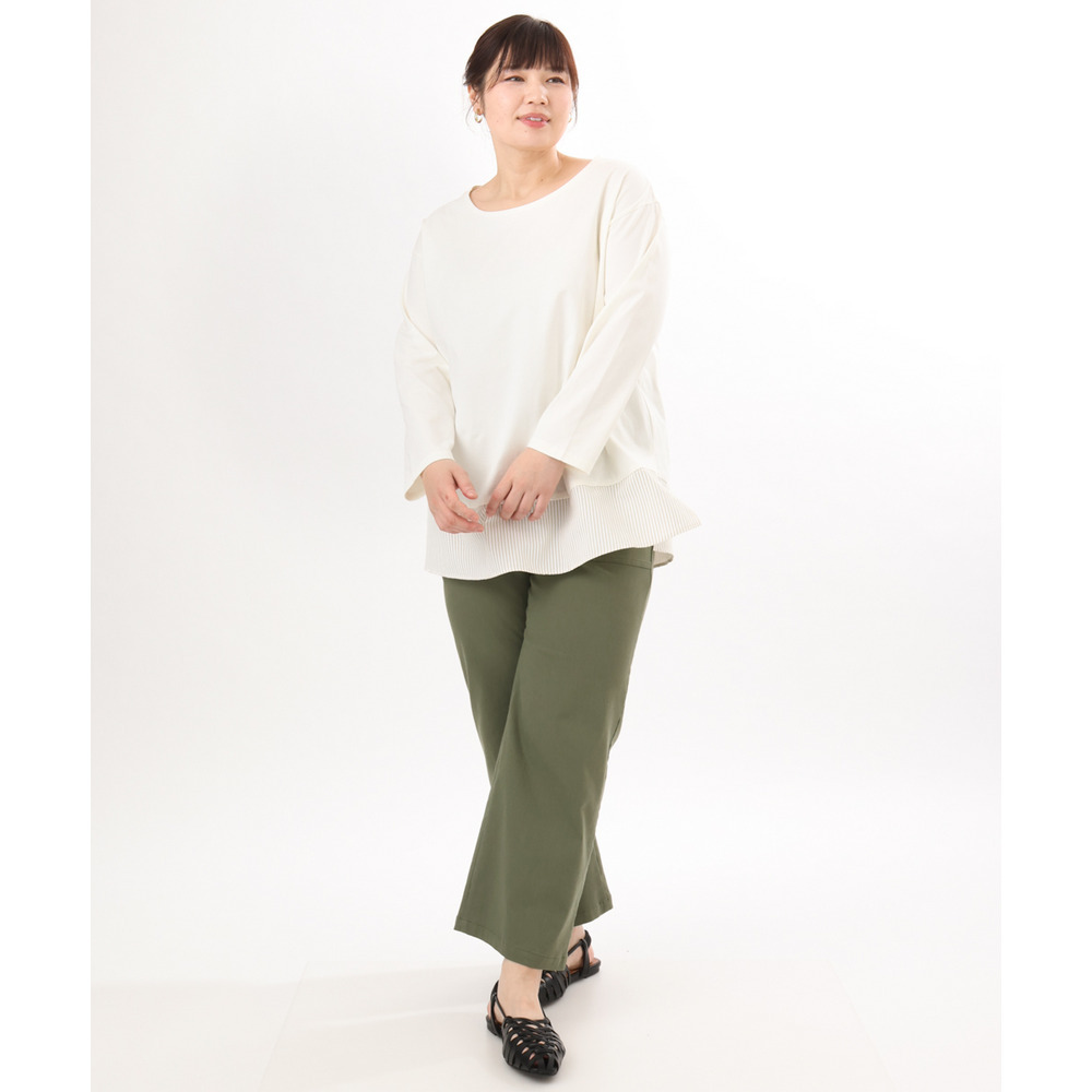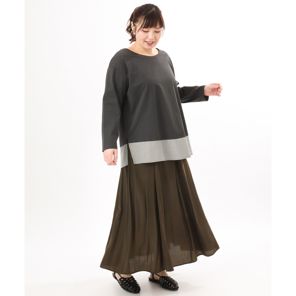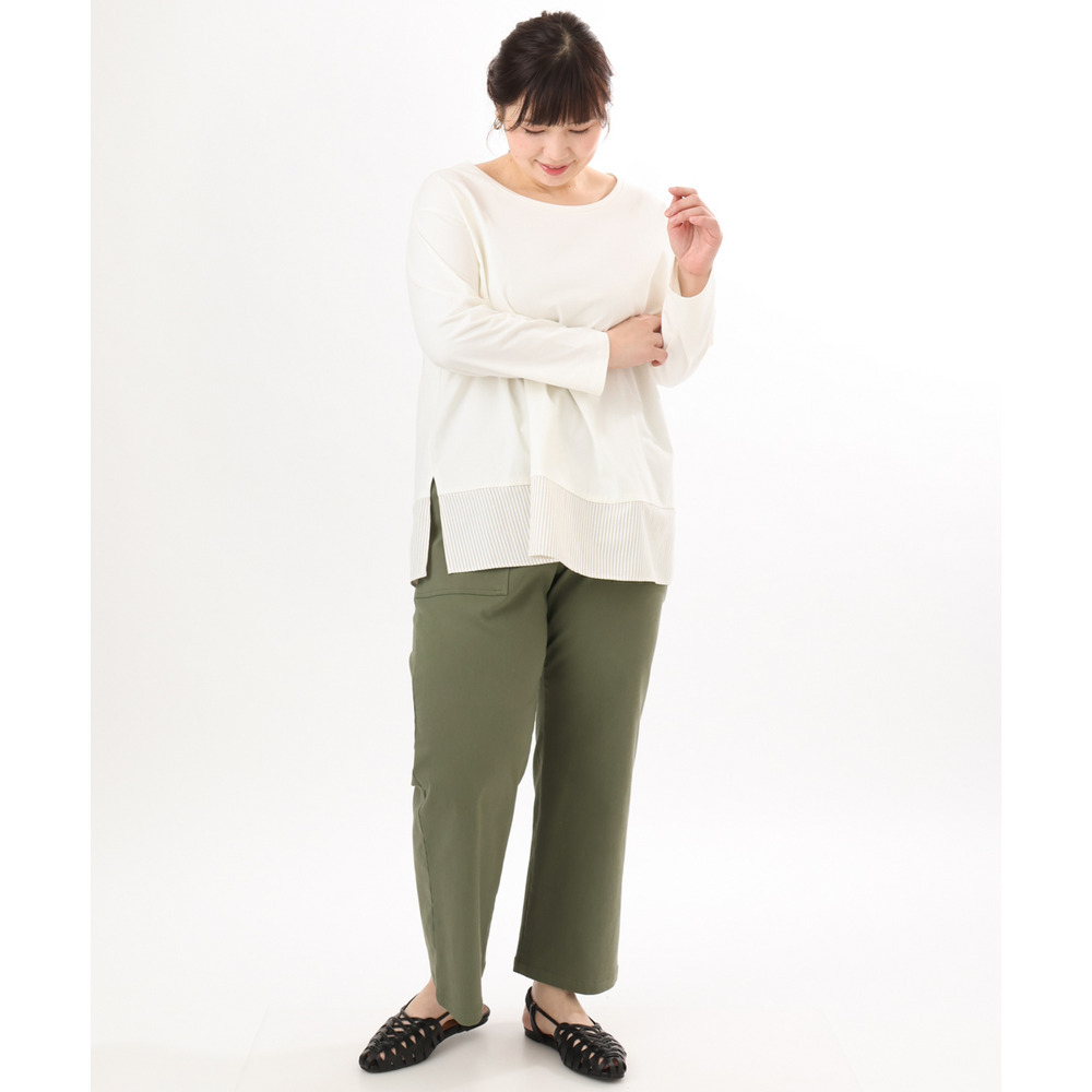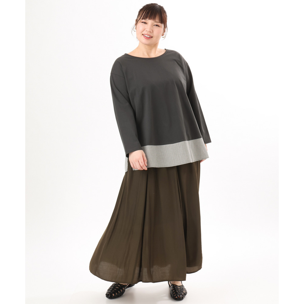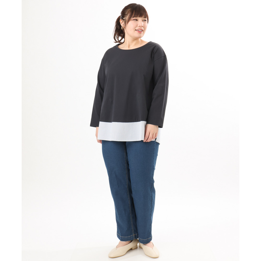 裾にストライプ生地を切り替えたデザインカットソー。