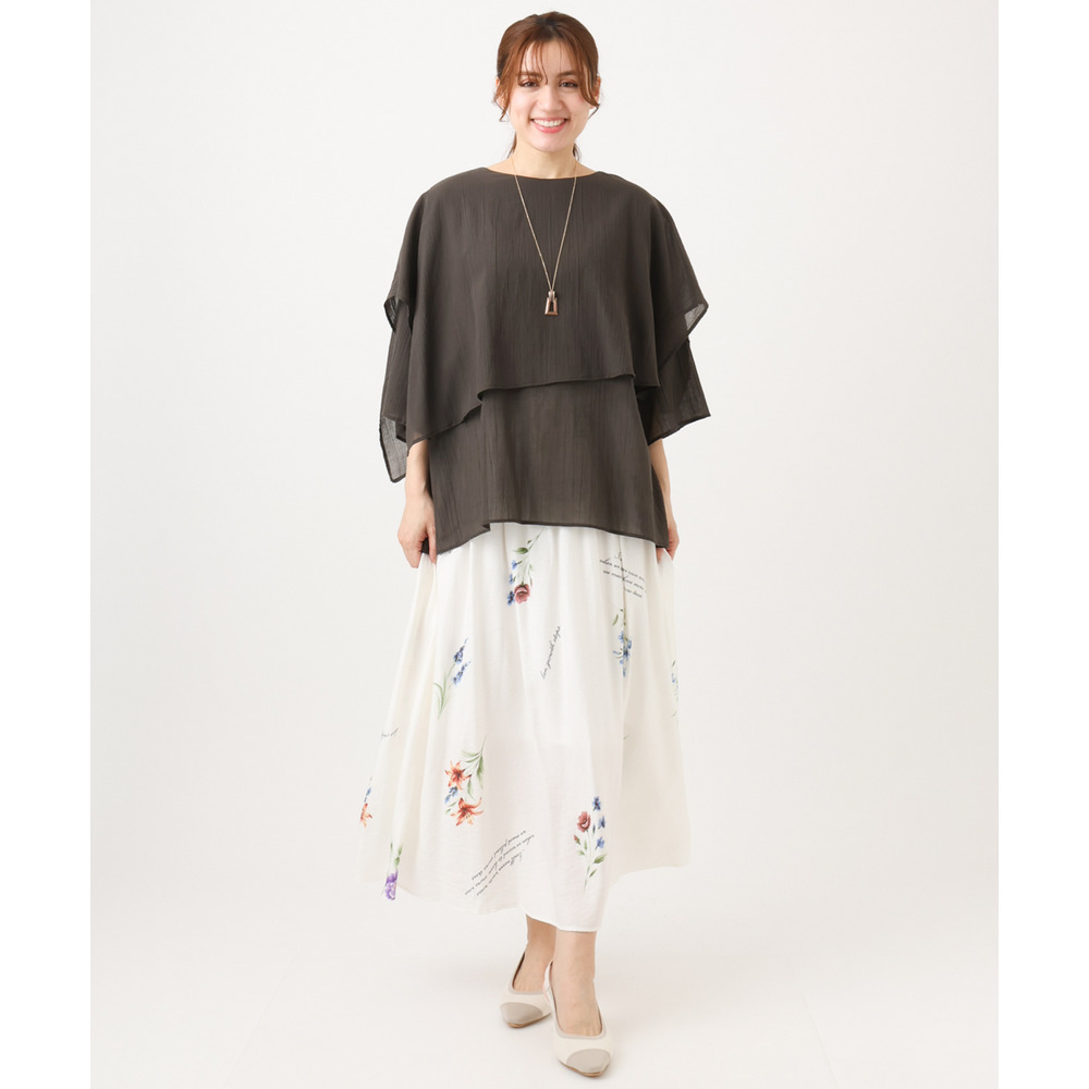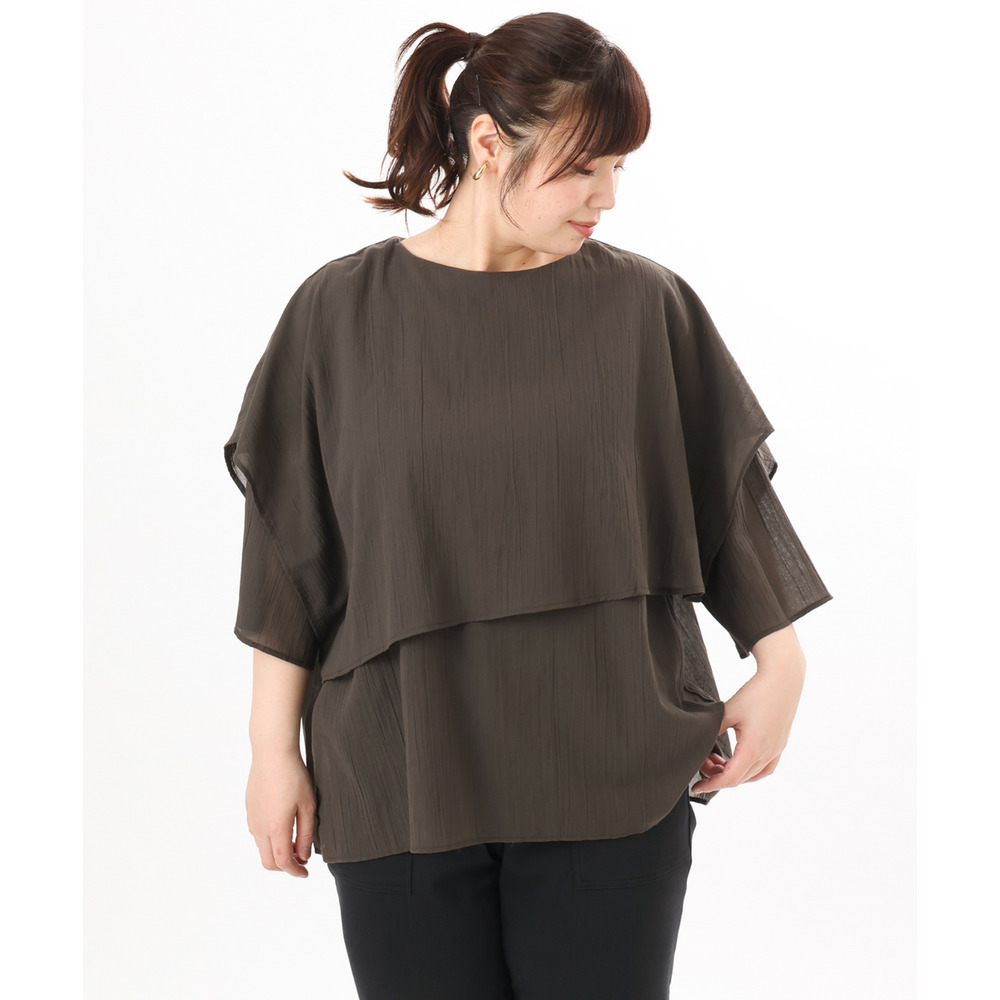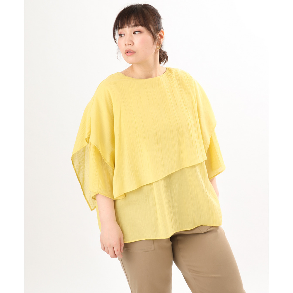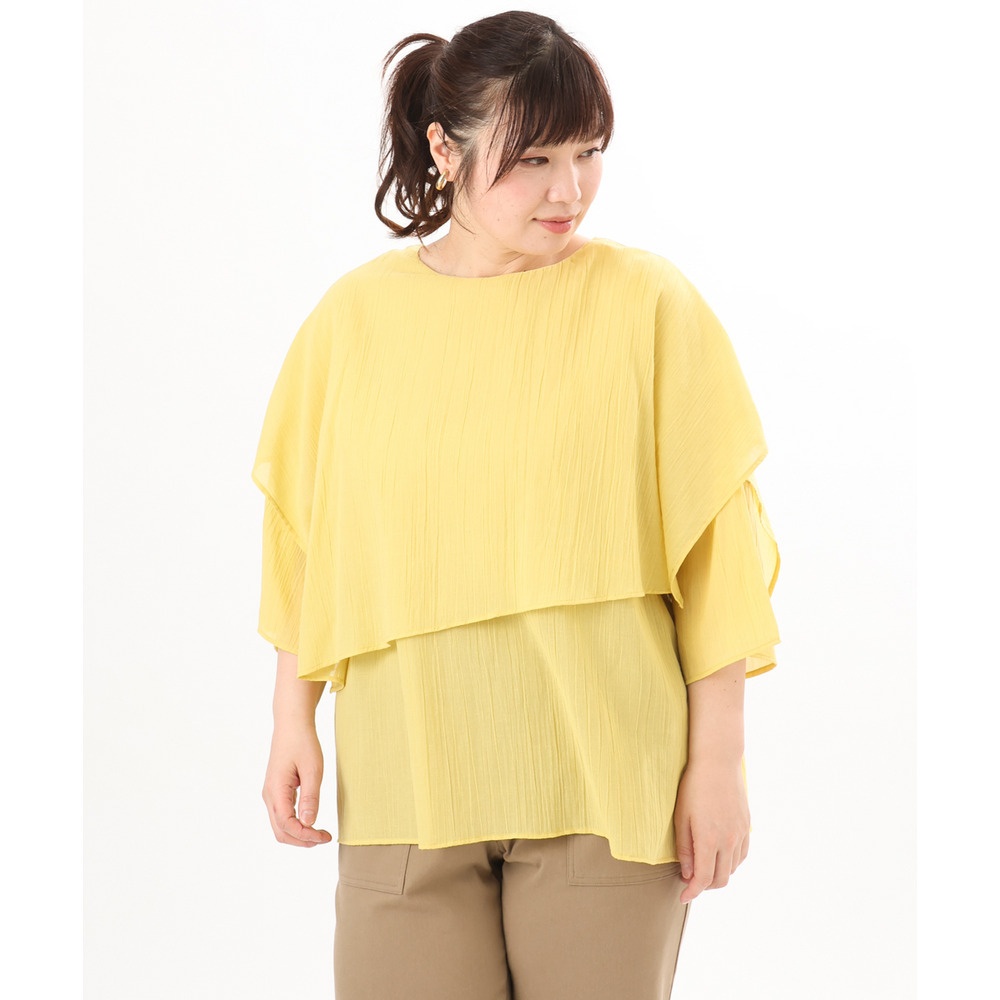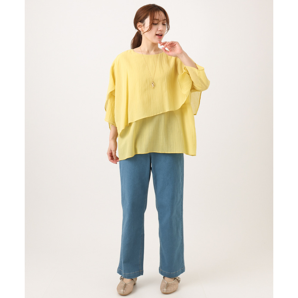 さらっとした肌触りが心地よい、ライトな綿混素材を使用したレイヤード風ブラウス。