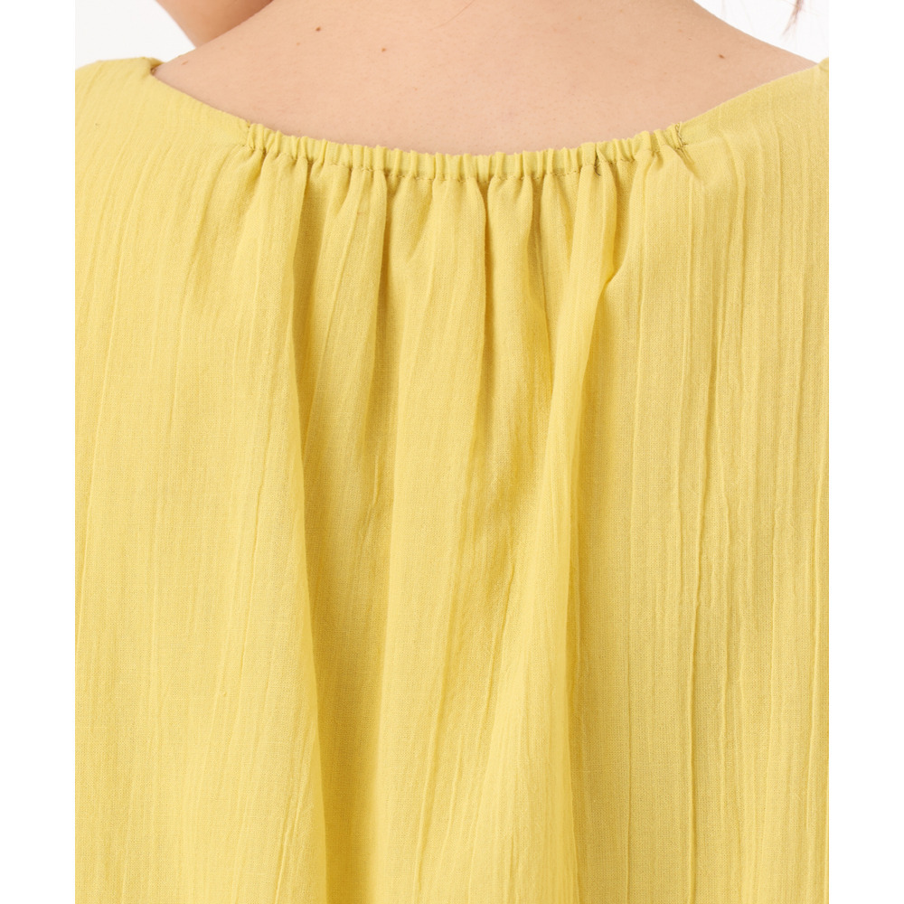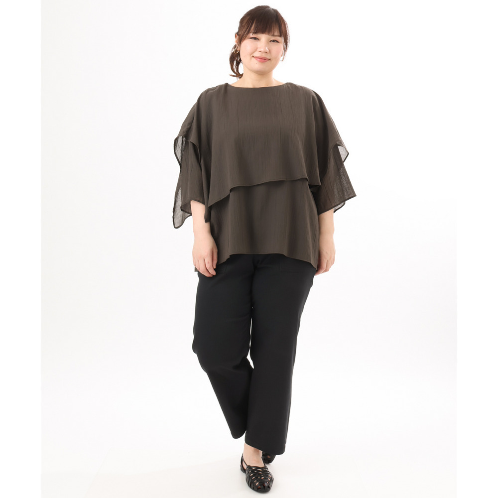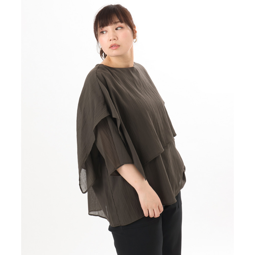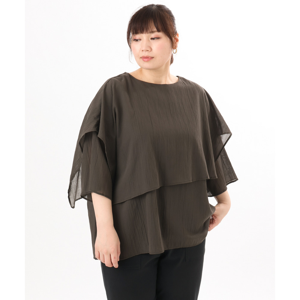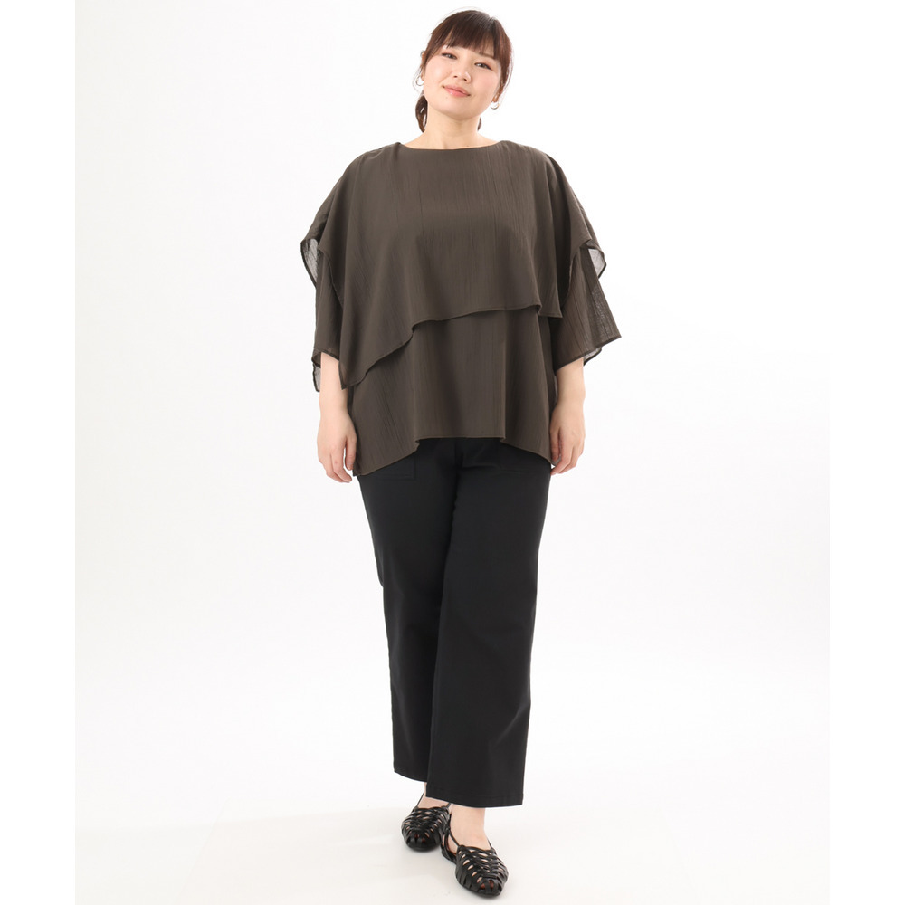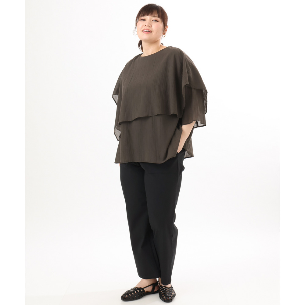 さらっとした肌触りが心地よい、ライトな綿混素材を使用したレイヤード風ブラウス。
